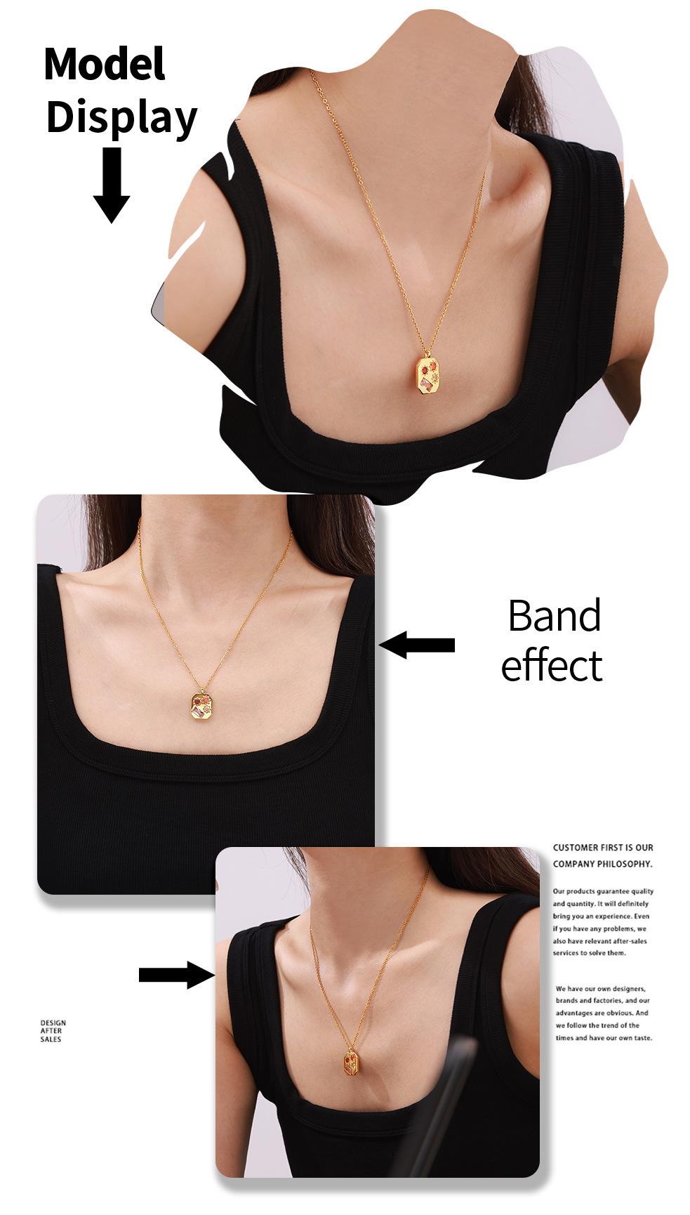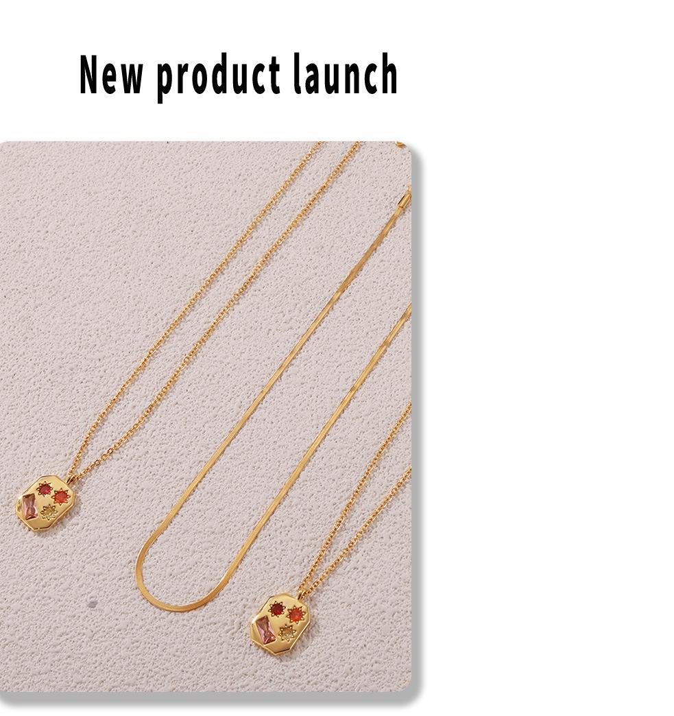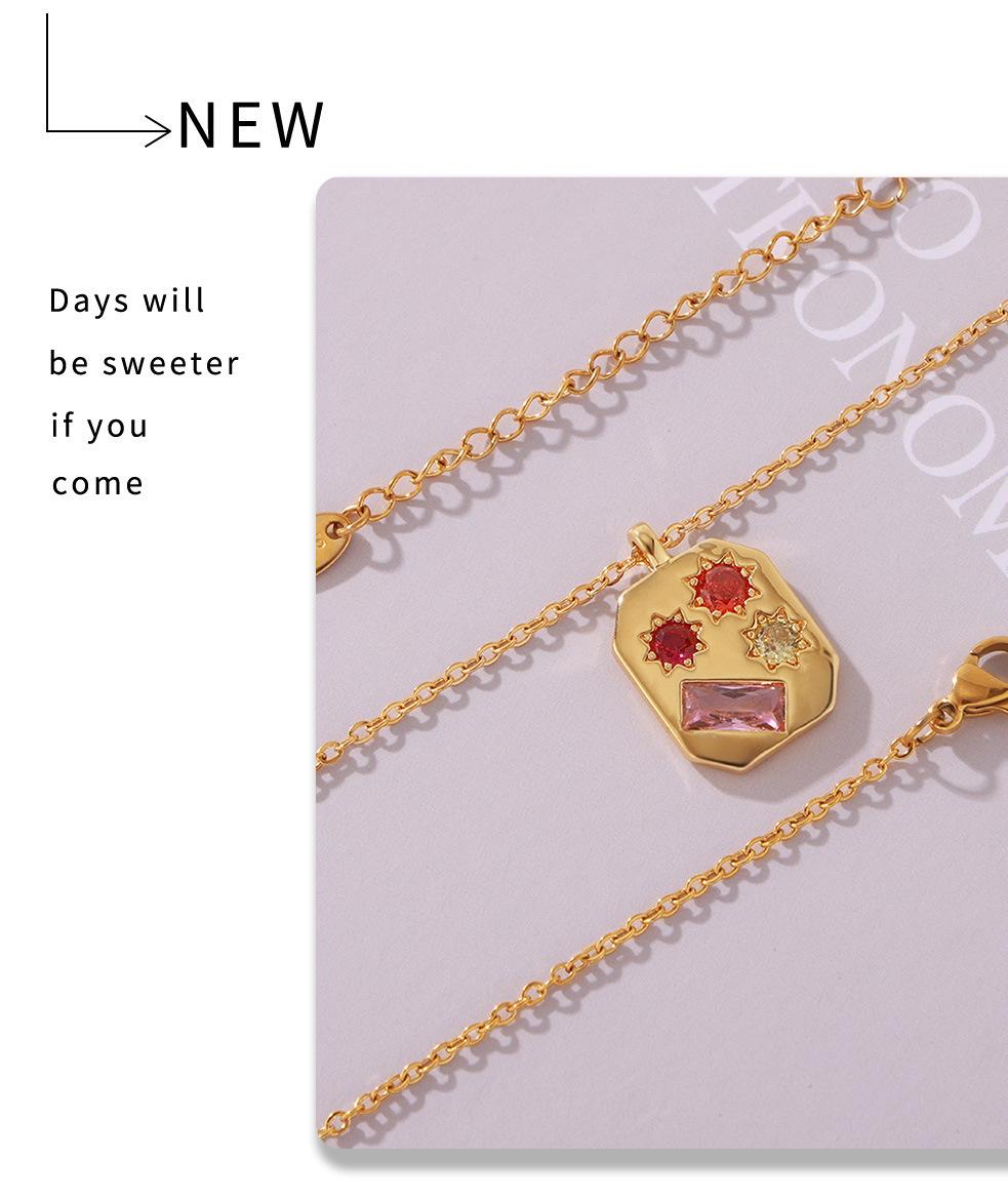 Colgante de circonita de color elegante, estilo retro francés, estilo artístico, octogonal, para mujer, de acero de titanio chapado en oro de 18 quilates.
