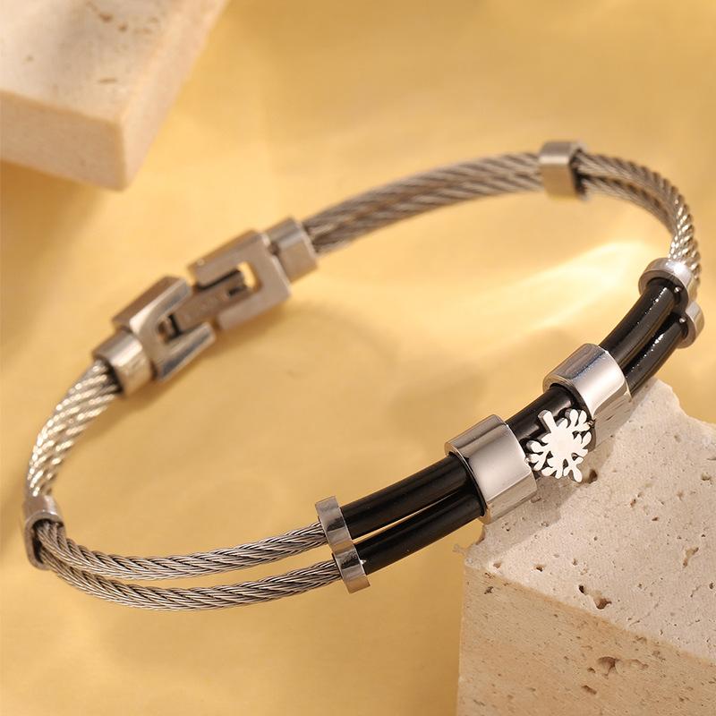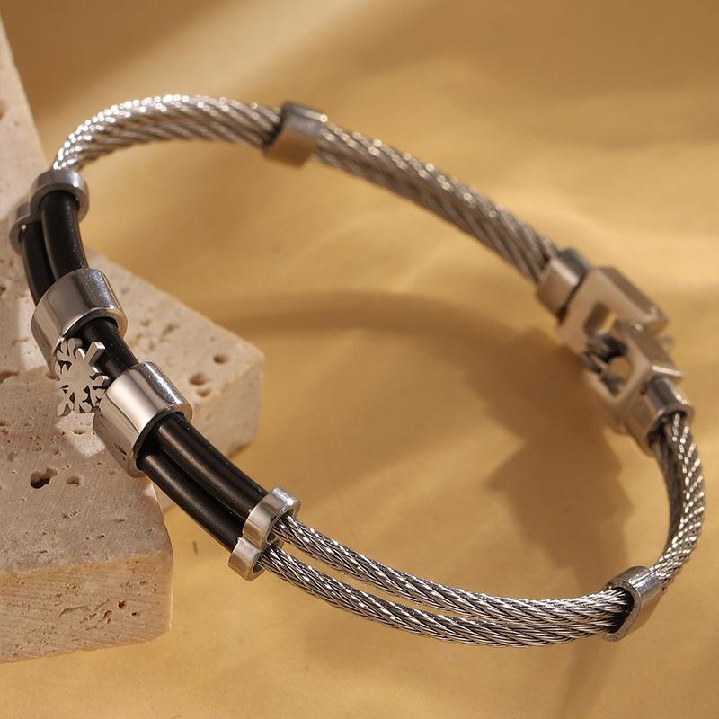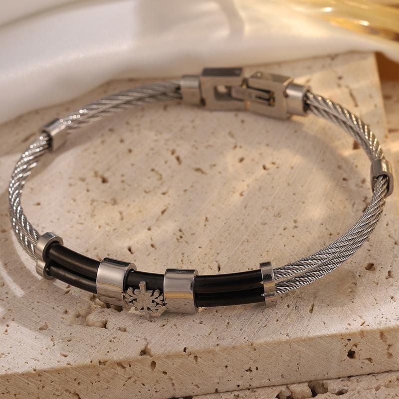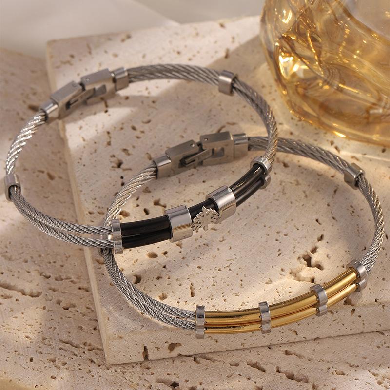 Pulsera de Acero Inoxidable Diseño Personalizado para Pareja Estilo Coreano Presión para Abrir Giro Pulsera Estilo Urbano Pulsera Ajustable