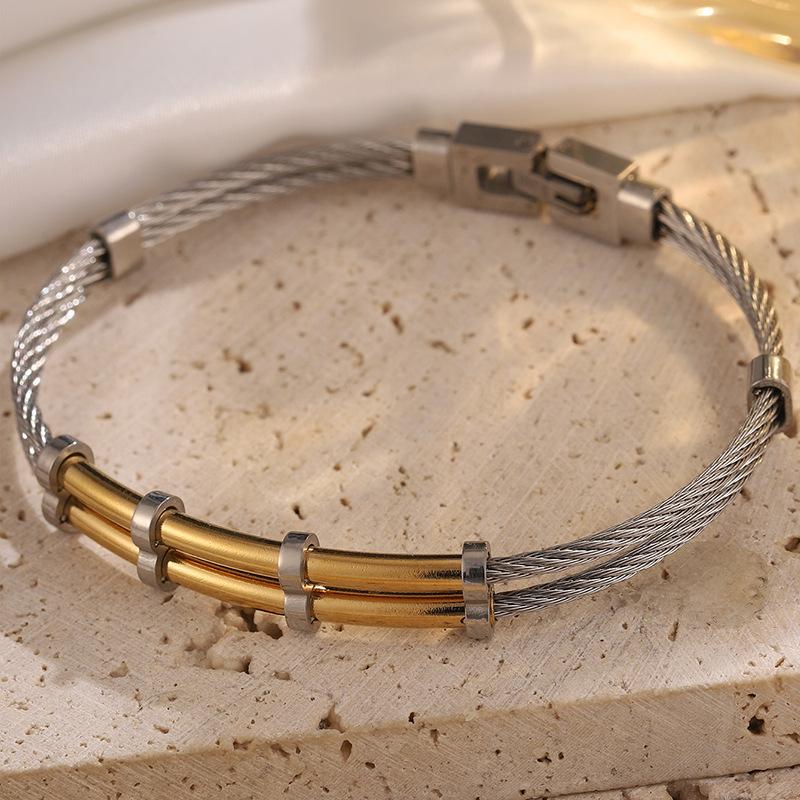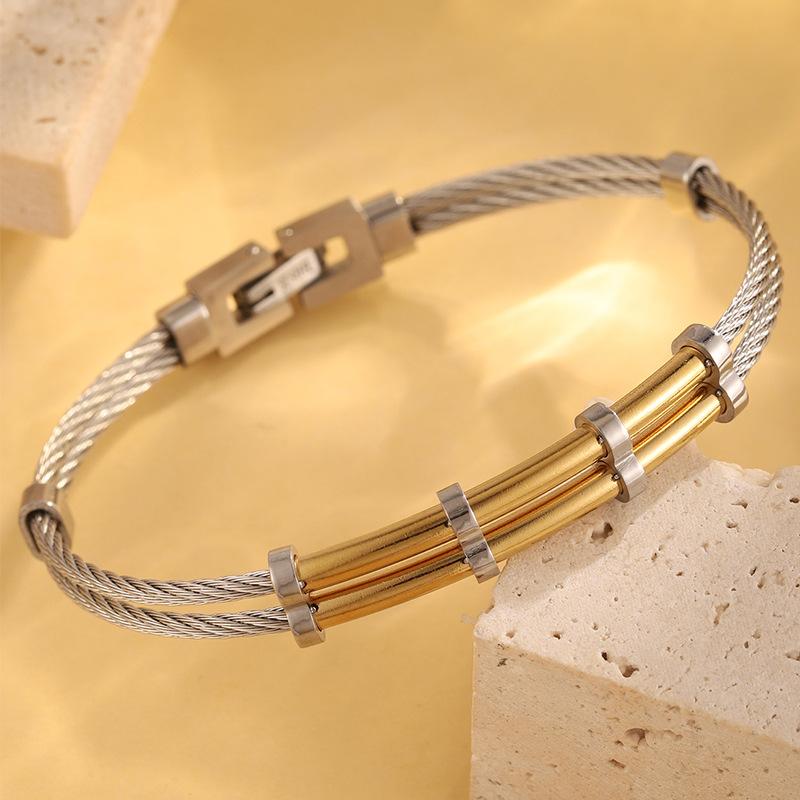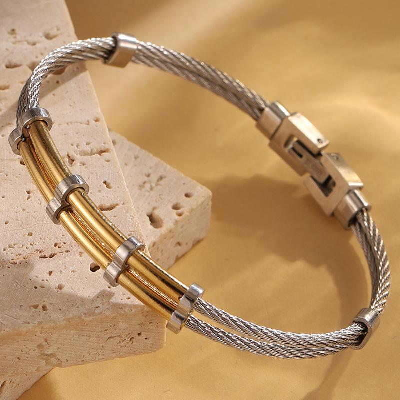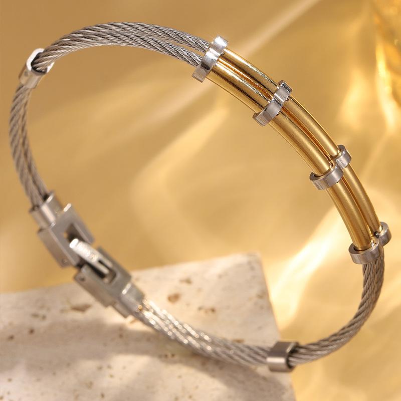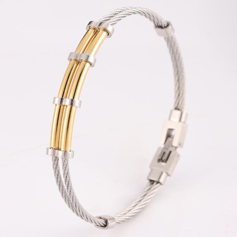 Gold steel double layer steel wire push opening bracelet 1