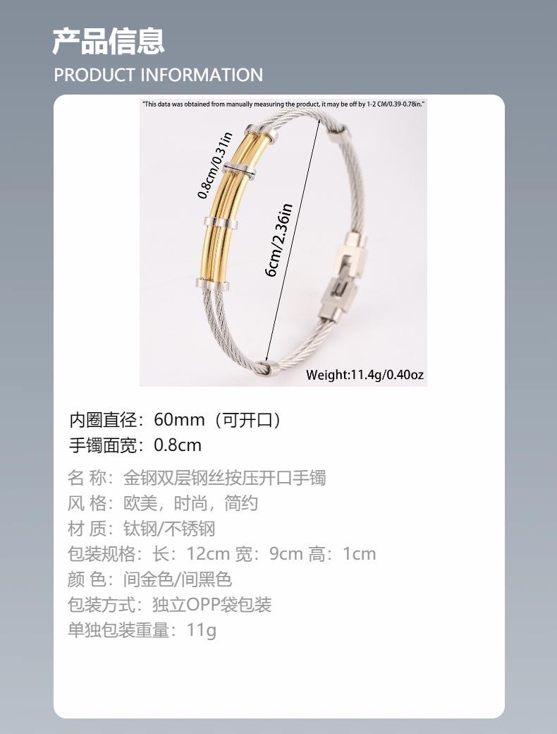 Gold steel double layer steel wire push opening bracelet 1, Gold and black double layer steel wire push opening bracelet 2