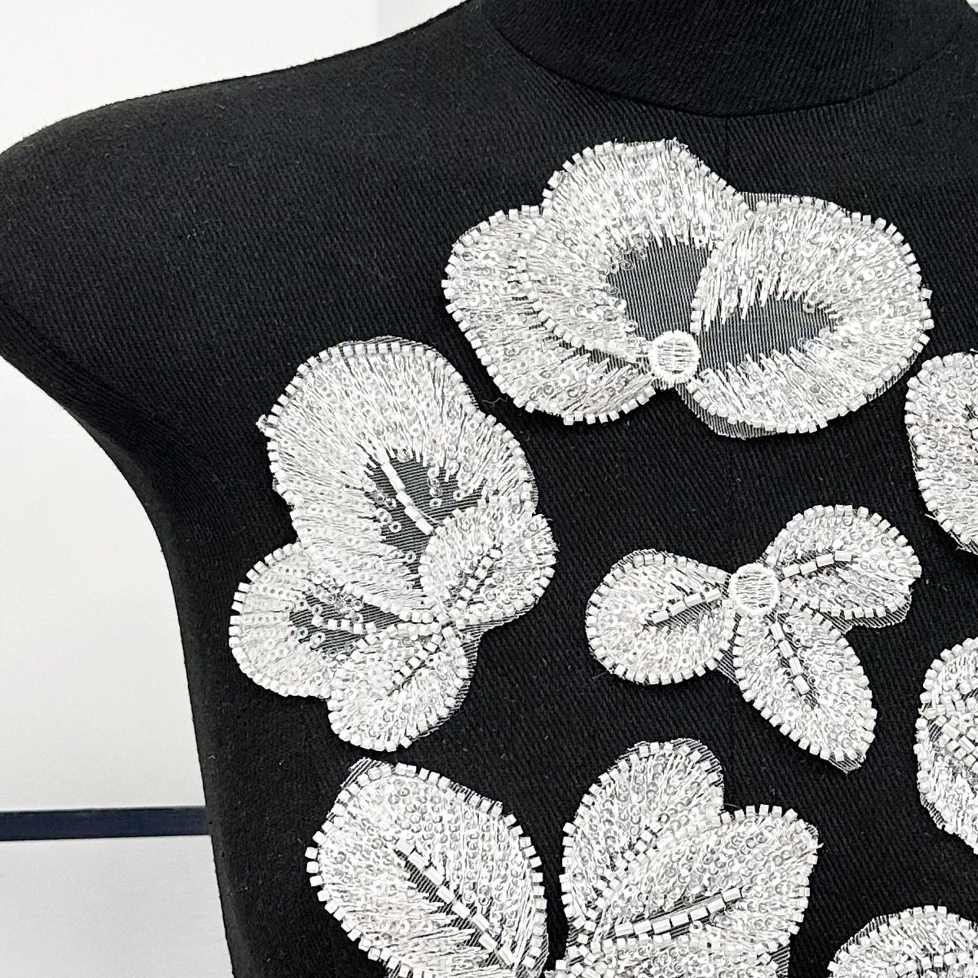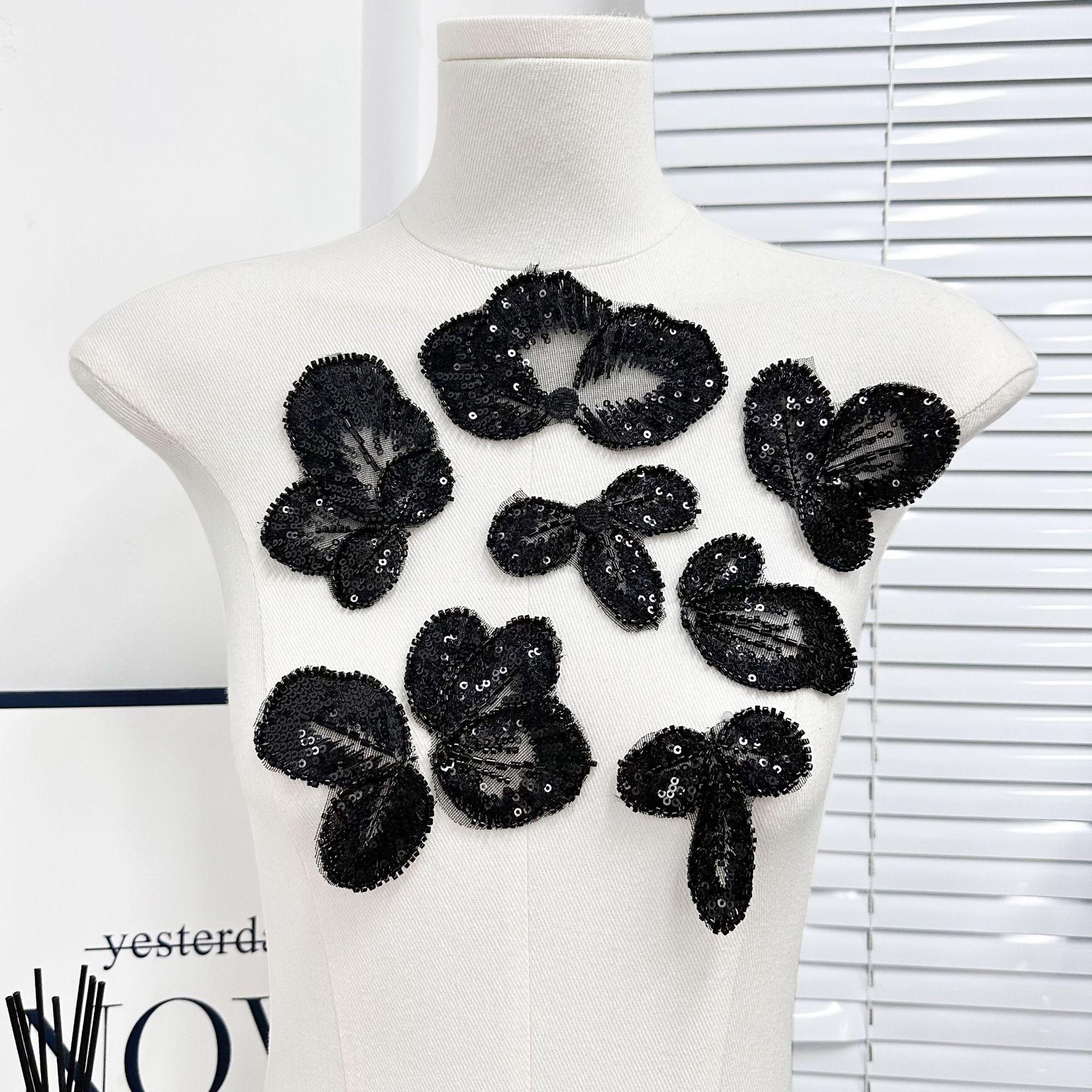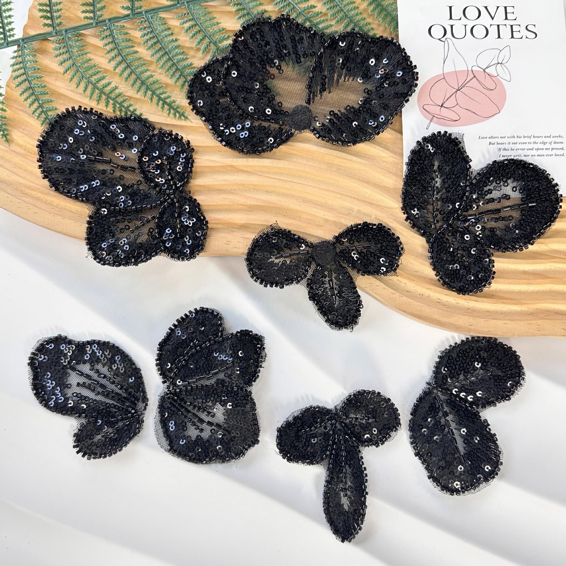 Pegatinas de tela con flores para rellenar agujeros de zapatos y sombreros, cuentas tridimensionales negras, accesorios de ropa hechos a mano, joyería que combina con todo.