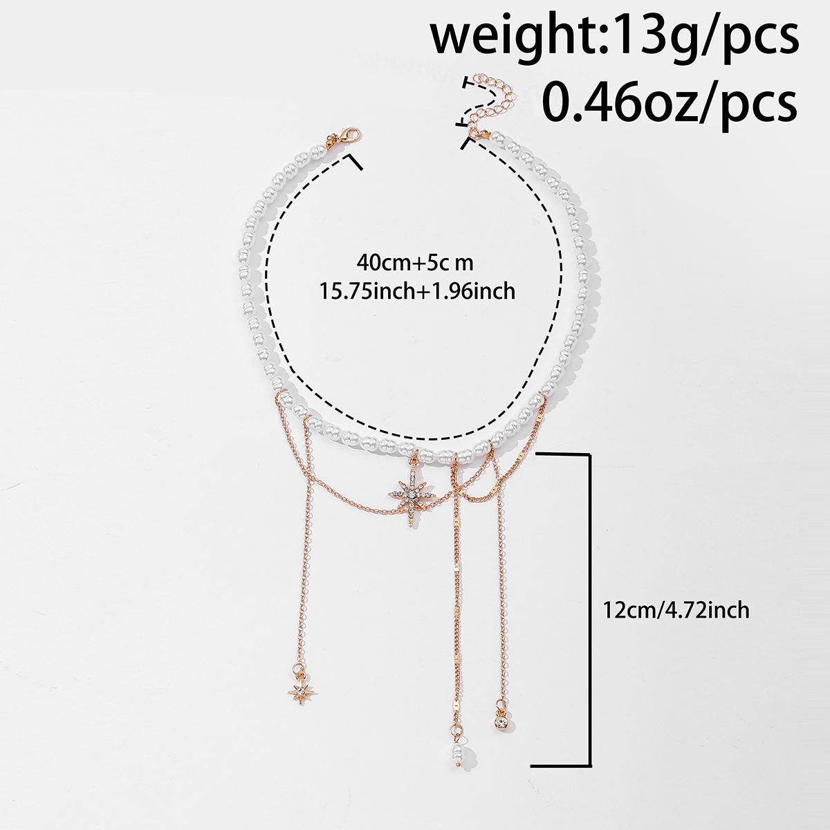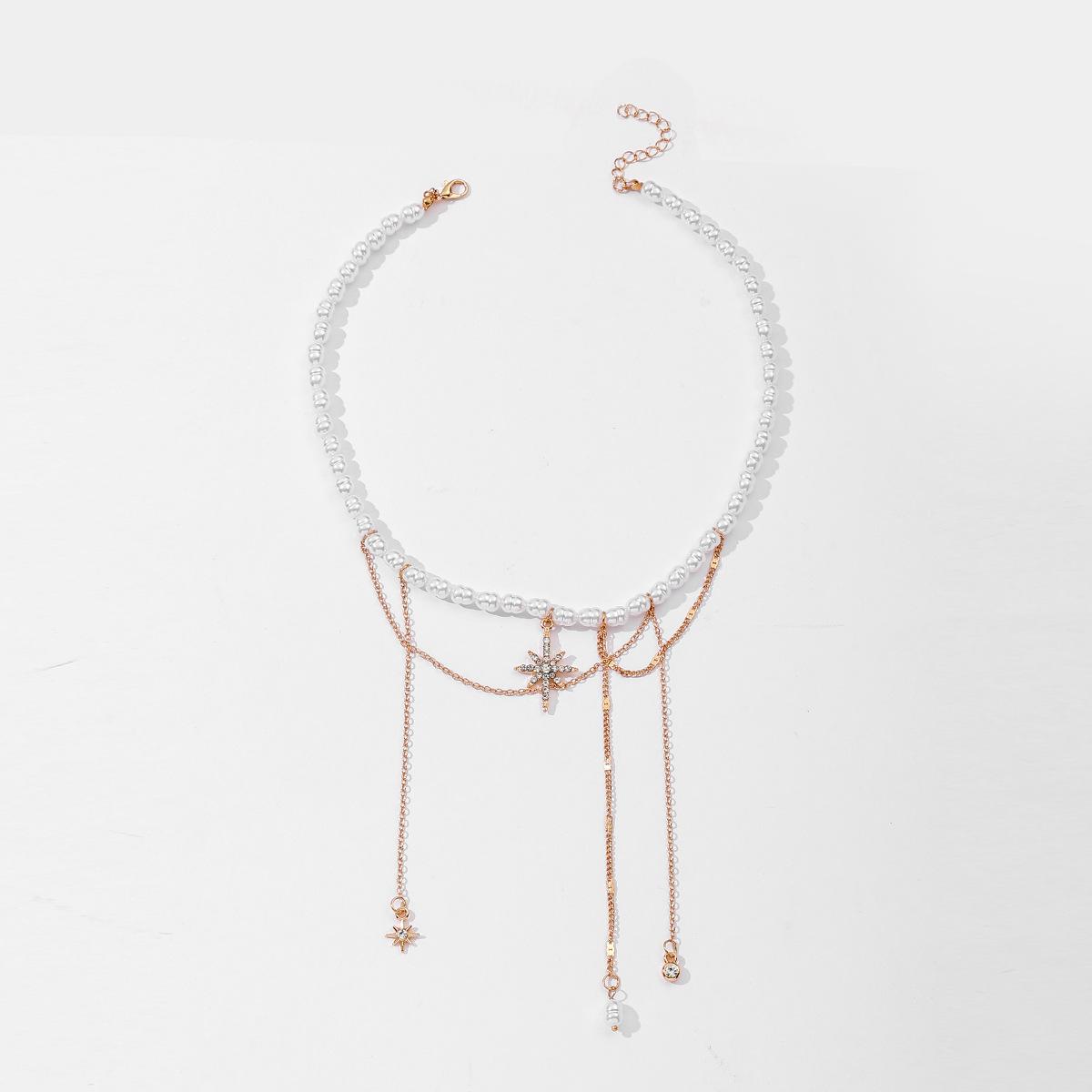 Collar de Perlas Bohemio al por Mayor Joyería Popular Transfronteriza Europea y Americana Aleación de Borla Personalizada Cadena de Clavícula de Seis Puntas para Mujer