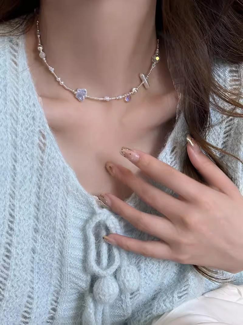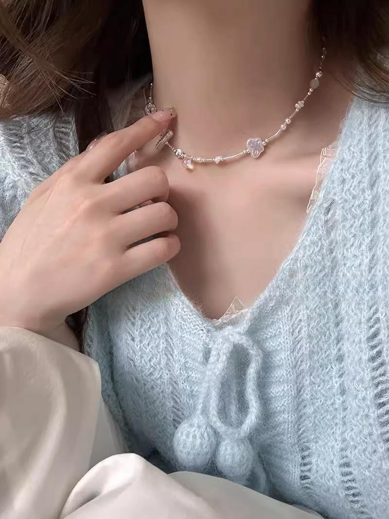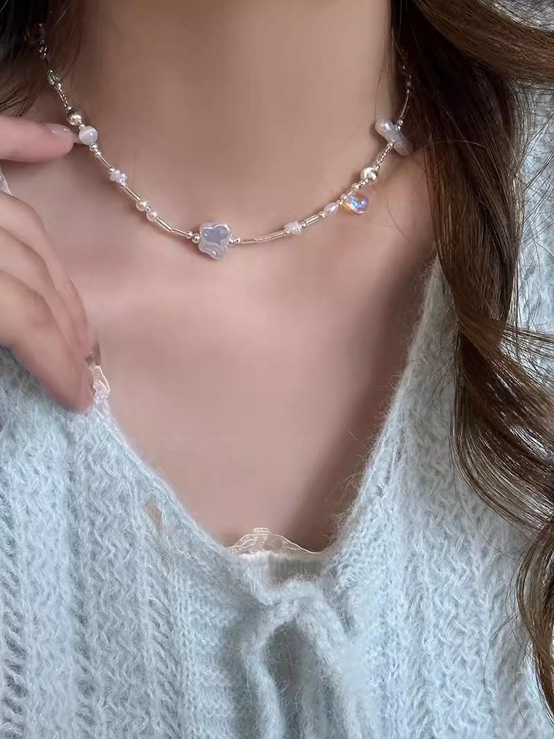 Collar de perlas con forma de mariposa 2024, nuevo, de alta gama, con forma de gargantilla, cadena para el cuello, cadena de clavícula de nicho, accesorios para mujer