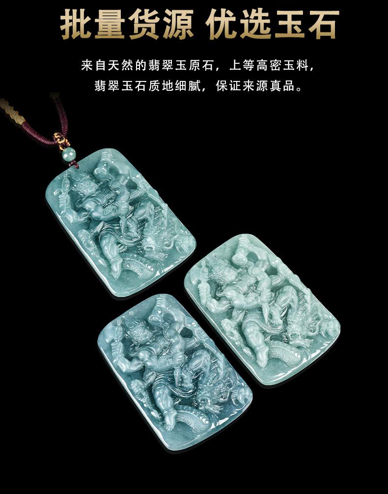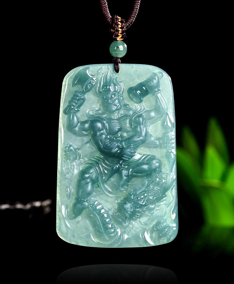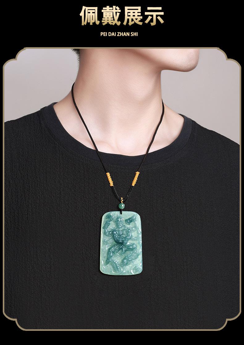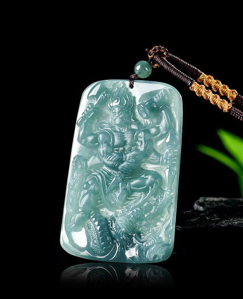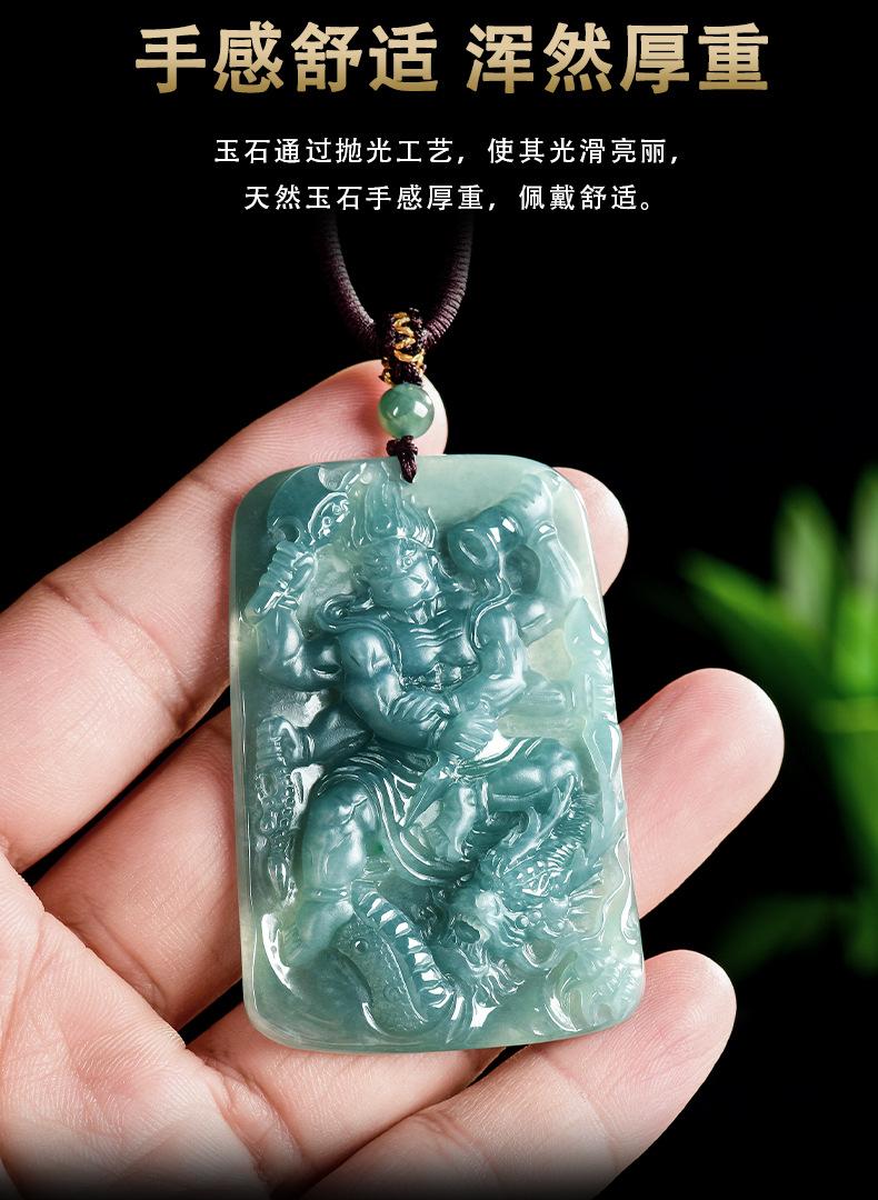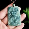 Grado A Natural Jade Tipo Hielo Dragón de Agua Azul Colgante Vajra Deidad Guardiana Gallo del Zodíaco Buda del Nacimiento