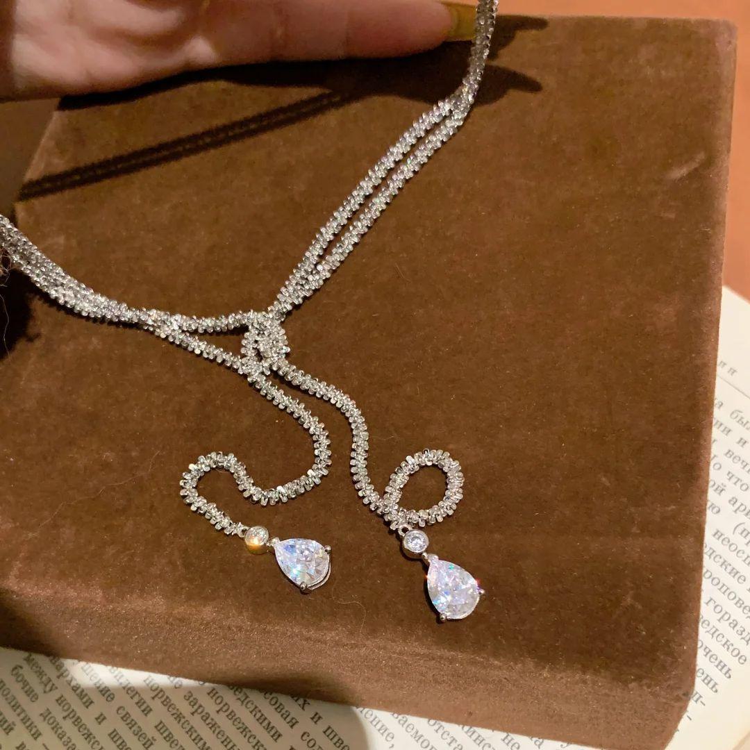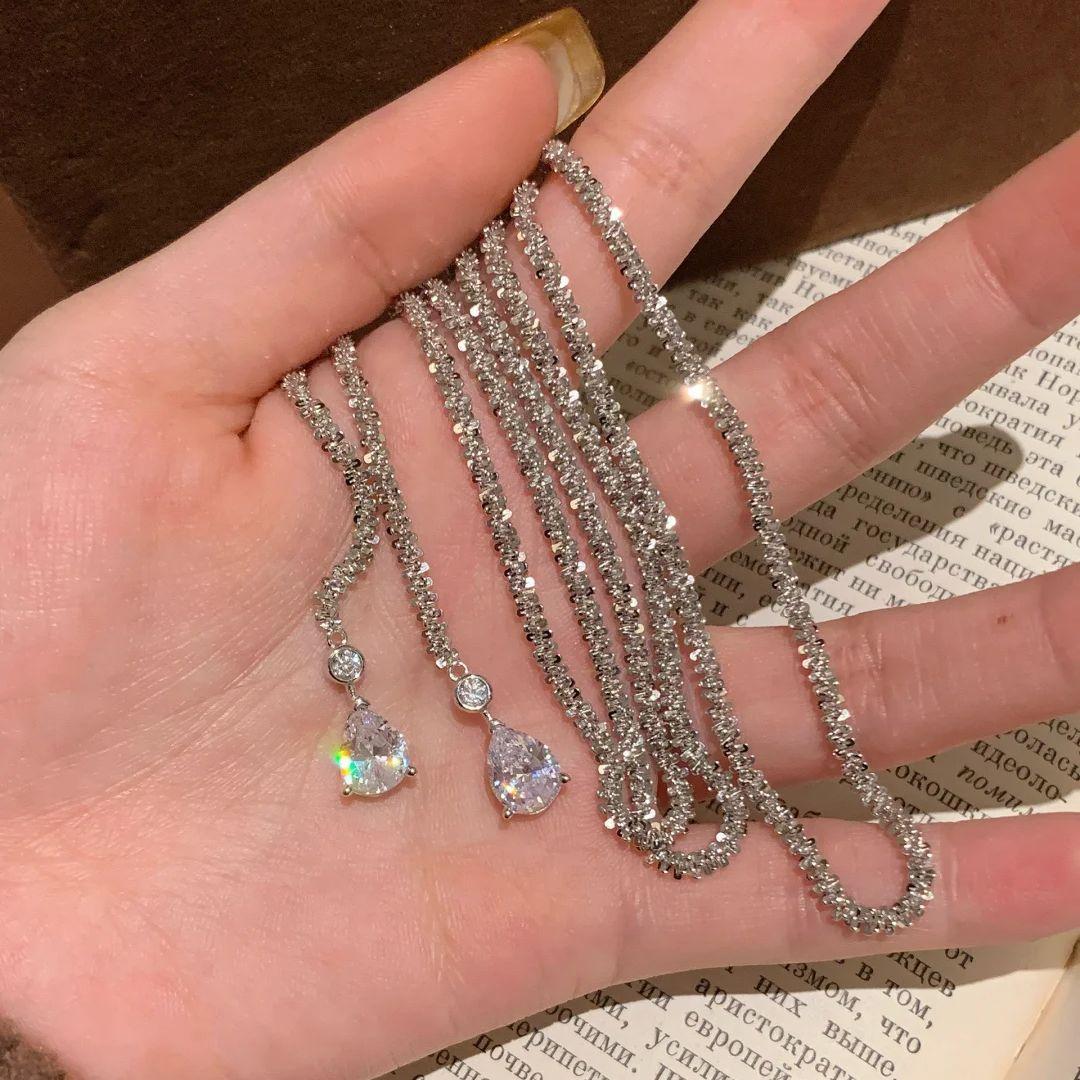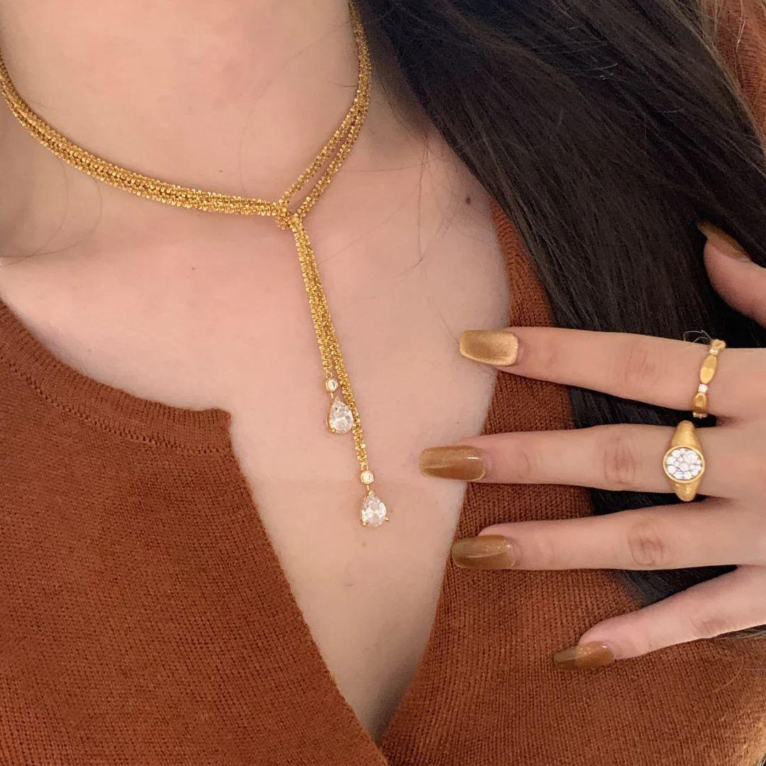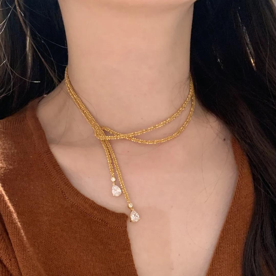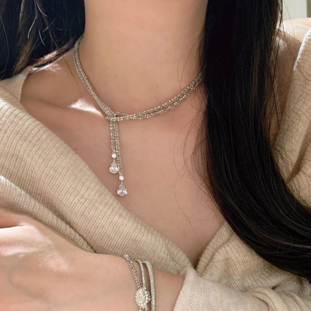 Collar Colgante Estrellas Brillantes de Lujo Ligero Cadena de Lana Superlarga Multiusos Brillante Diseño Nicho Cadena Clavícula Doble Capa para Mujer