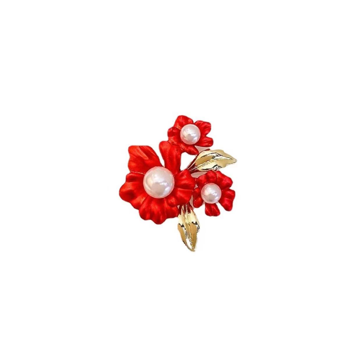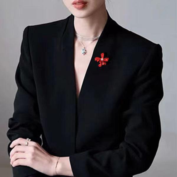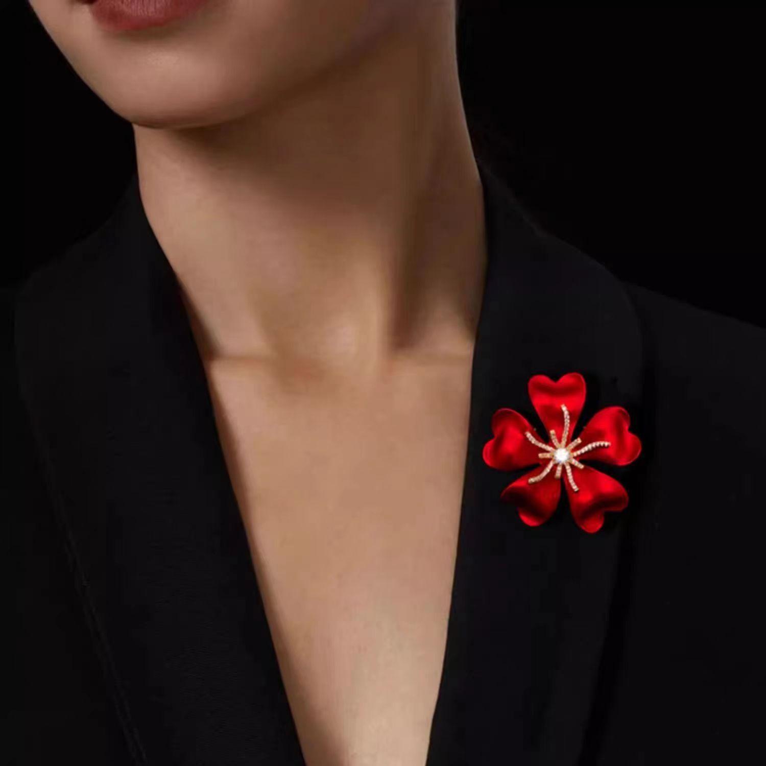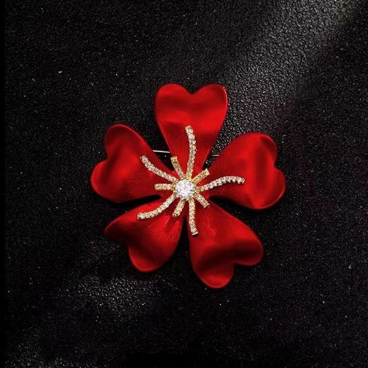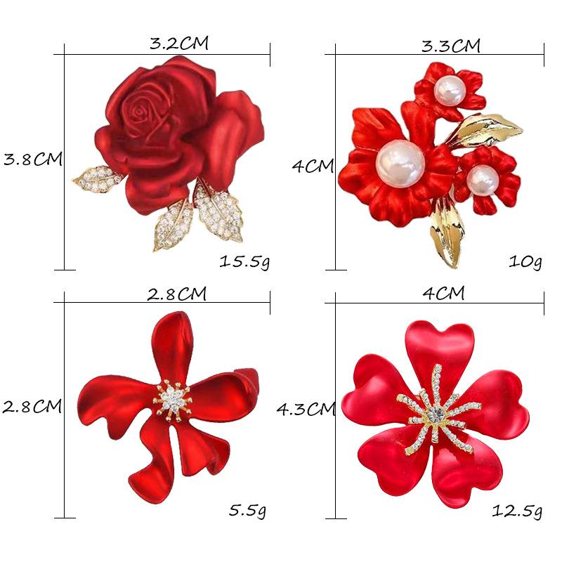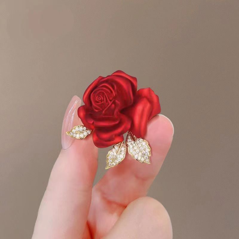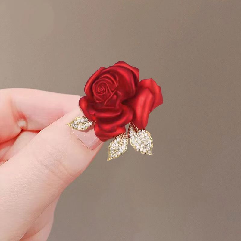 Broche de flor de rosa roja transfronteriza, accesorio de aleación de moda para mujer, antiexposición de alta calidad, para cuello de traje, alfiler exquisito