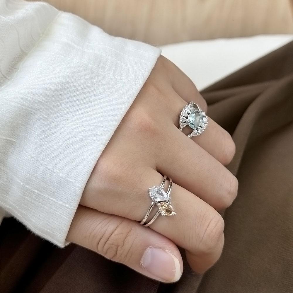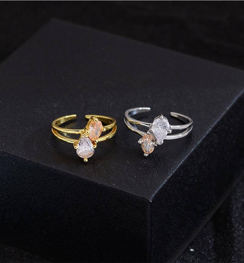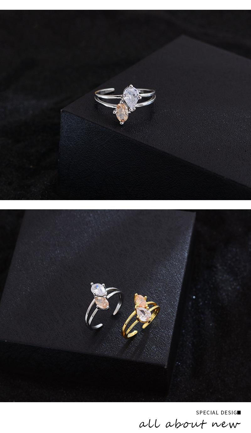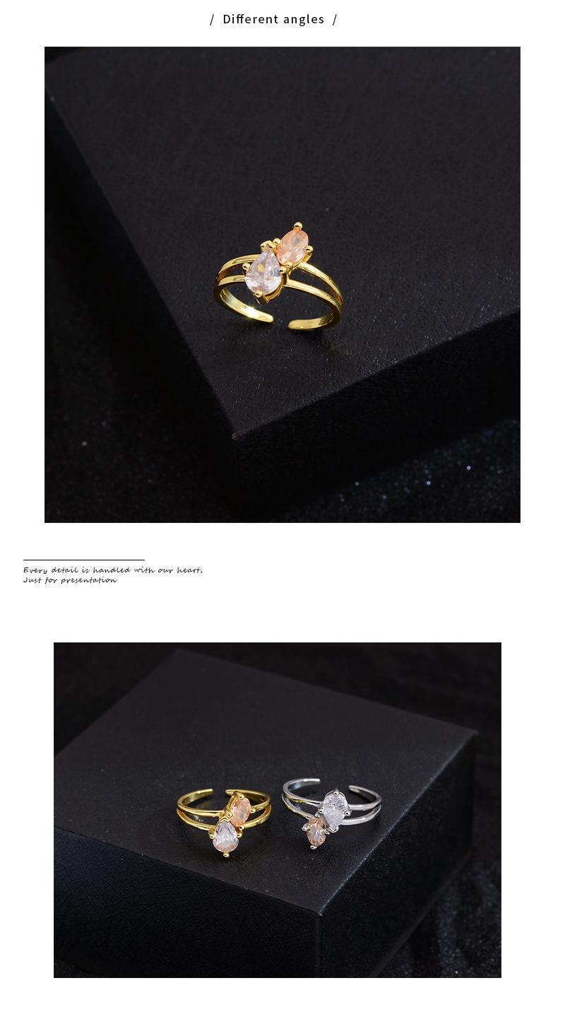 Anillo de circonita de gota de agua bicolor de alta calidad, exquisito diseño de nicho de lujo ligero, anillo de dedo abierto con taladro entrelazado de viento frío