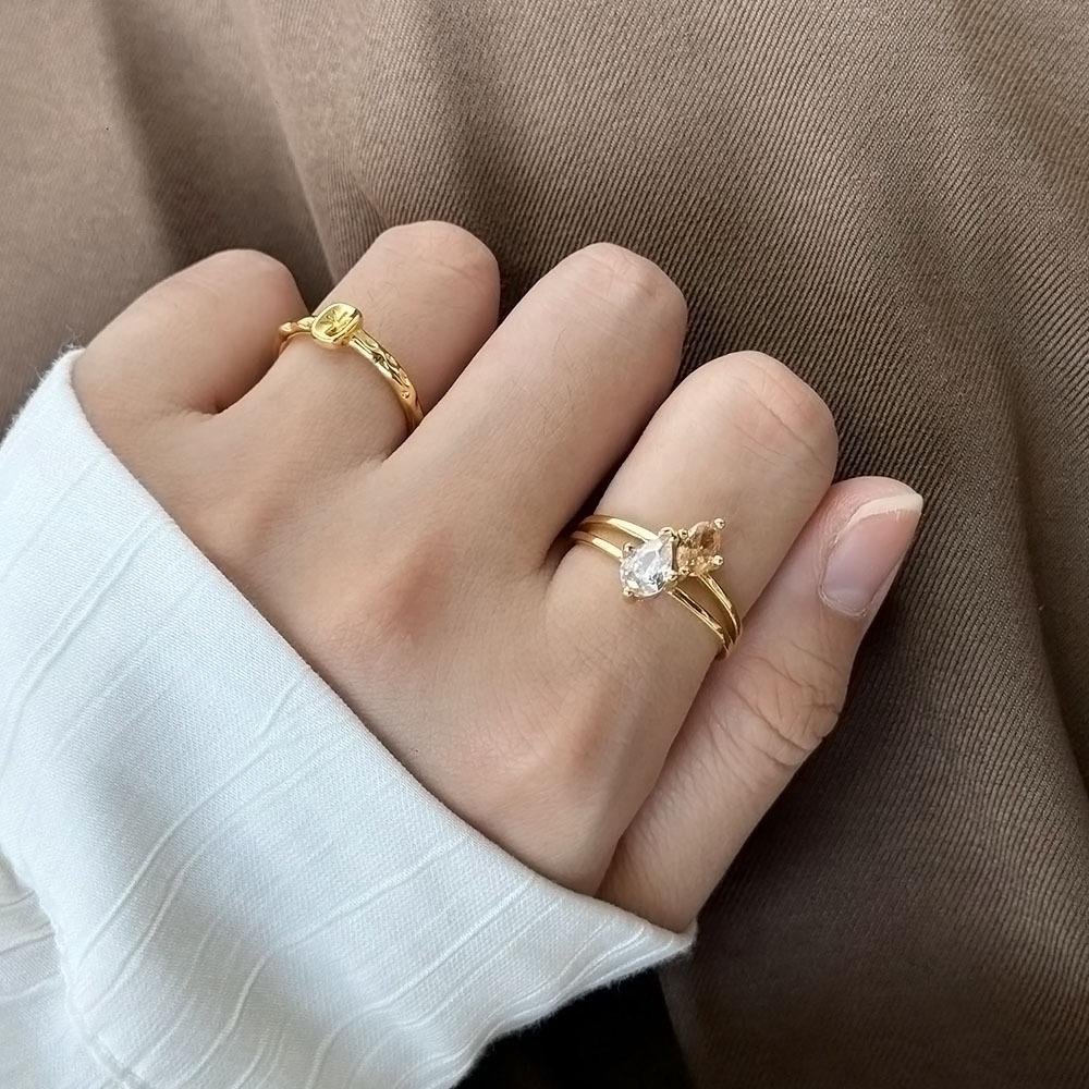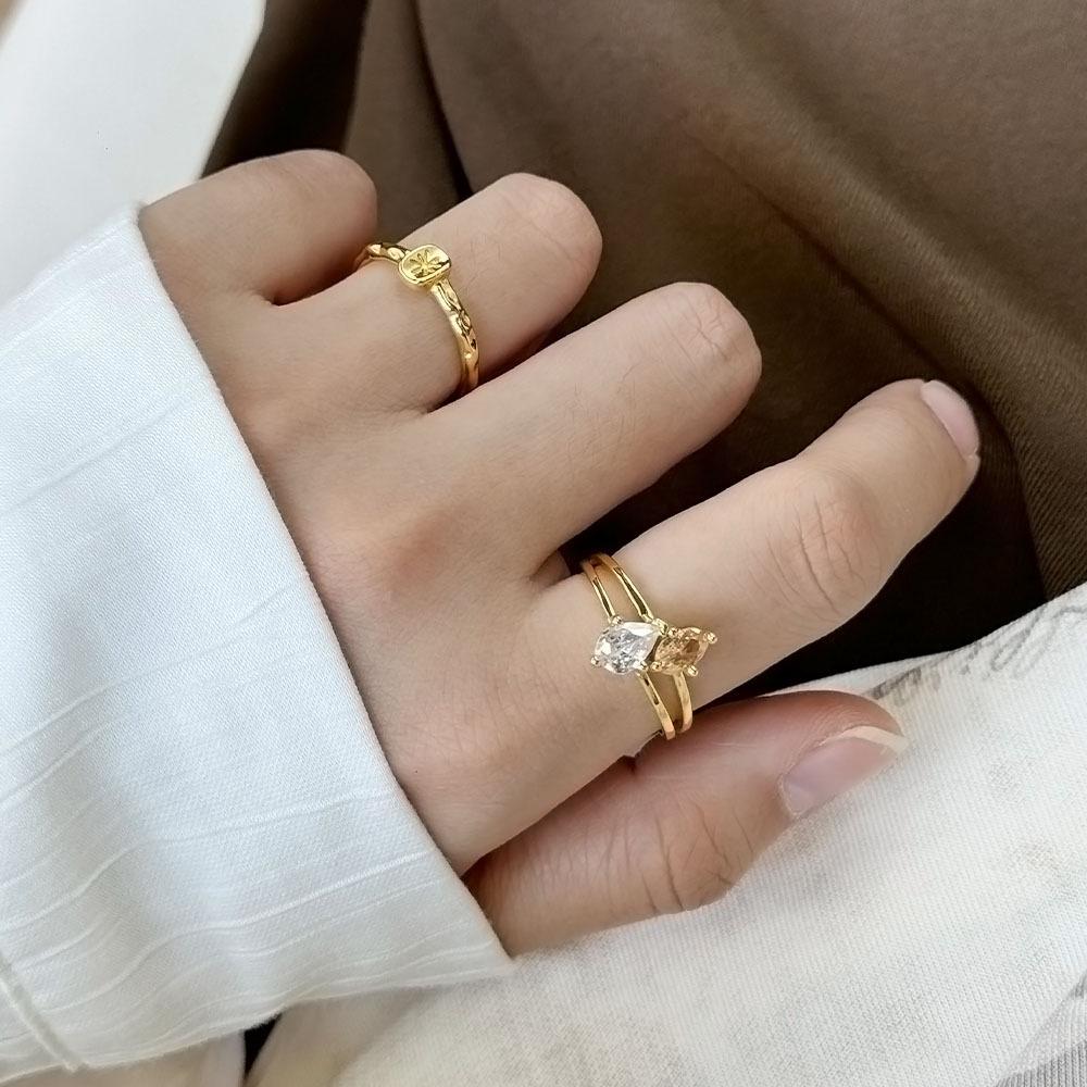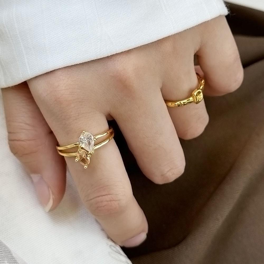 Anillo de circonita de gota de agua bicolor de alta calidad, exquisito diseño de nicho de lujo ligero, anillo de dedo abierto con taladro entrelazado de viento frío