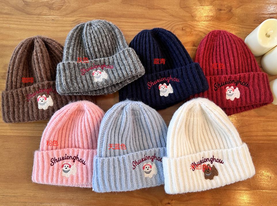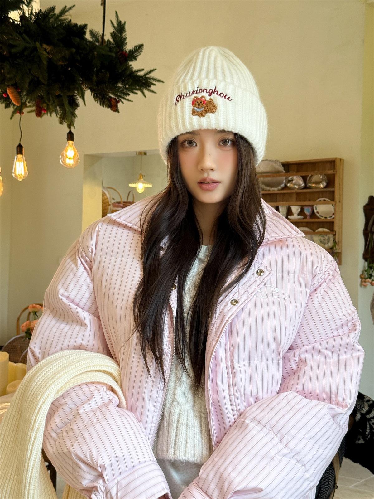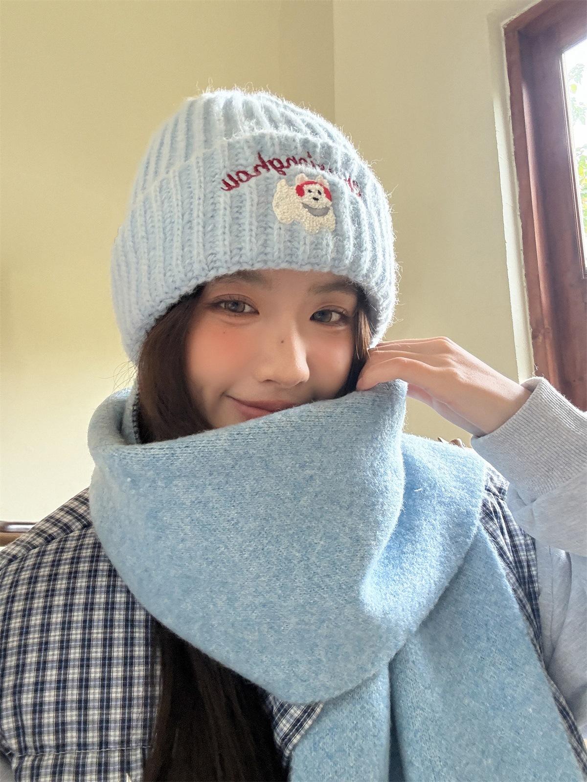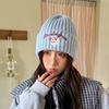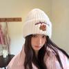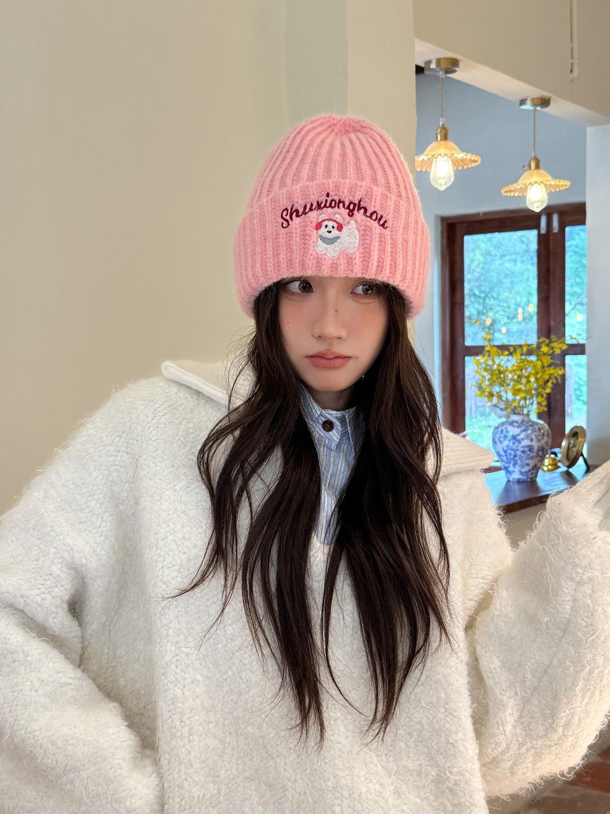 Sombrero de Lana Bordado de Cachorro Japonés Dulce y Lindo para Niños Otoño e Invierno Cara Pequeña Gorro de Punto Cálido con Protección para las Orejas