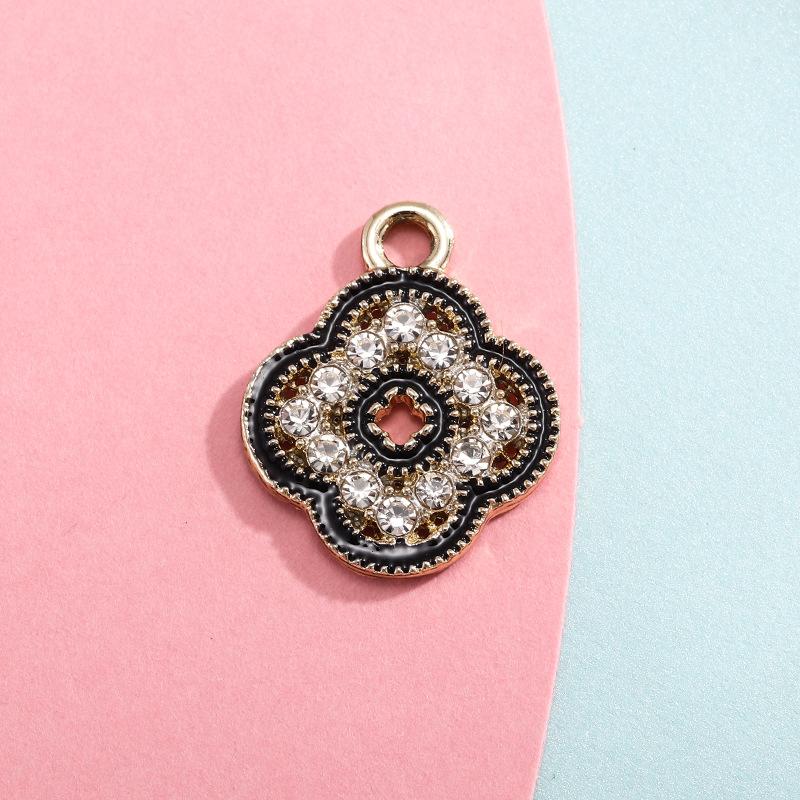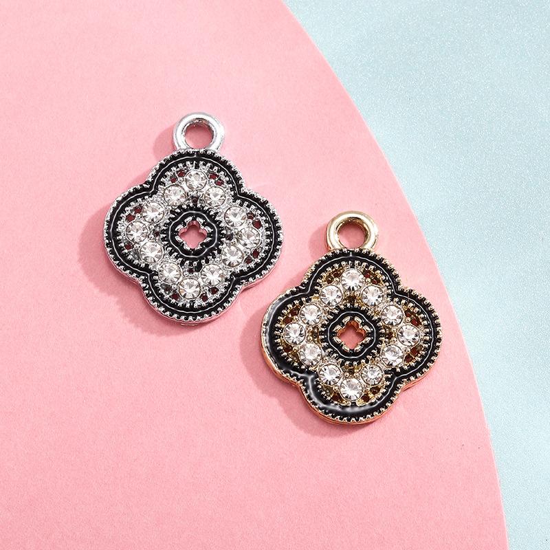 Colgante Trébol de Cuatro Hojas Accesorios Recortado Goteo de Aceite Diamante Colgante Pequeño Aleación Accesorios de Joyería DIY Collar Pulsera Ropa