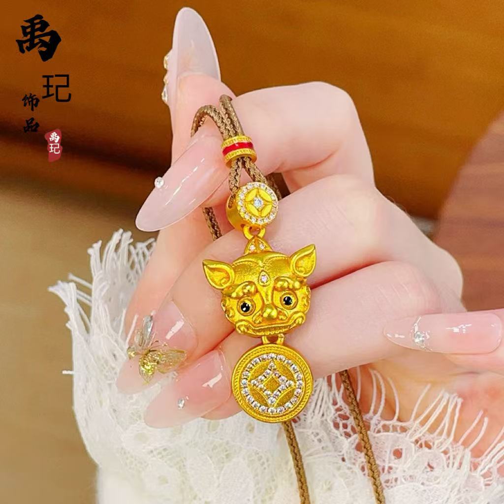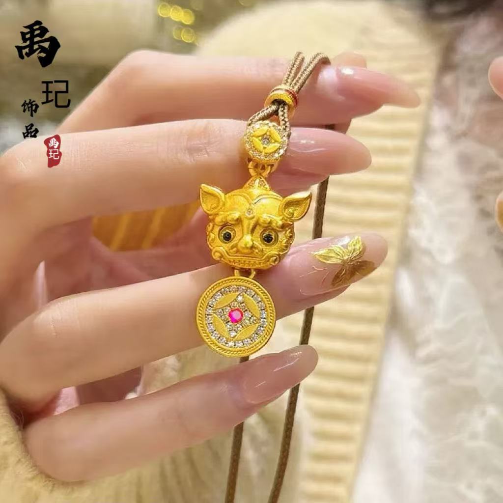 Coin rose diamond pixiu eyes will not movable [high-end ruyi rope]