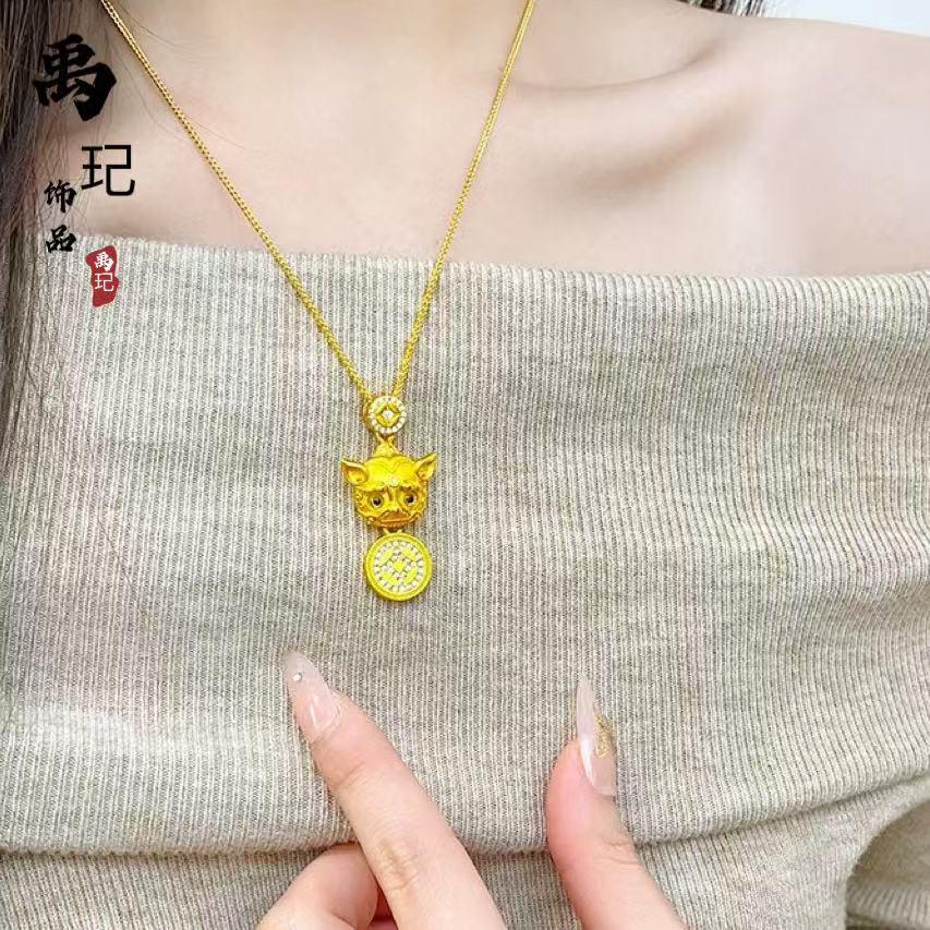 Collar femenino con colgante de la suerte con incrustaciones de diamantes y oro antiguo del mismo estilo de Wei Xue, cadena de clavícula de moda con grabado de cincel tridimensional que combina con todo.