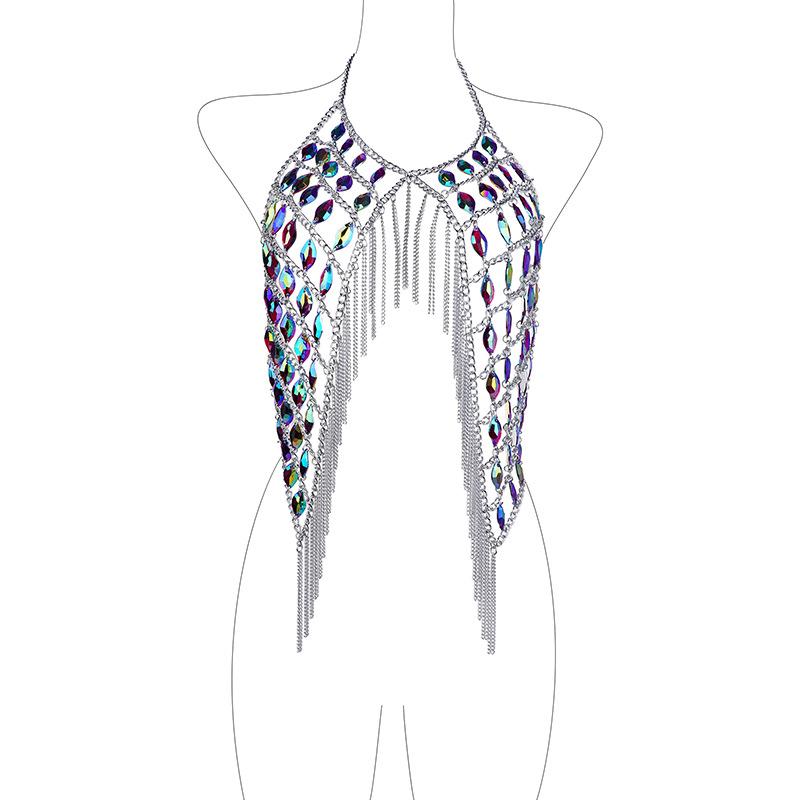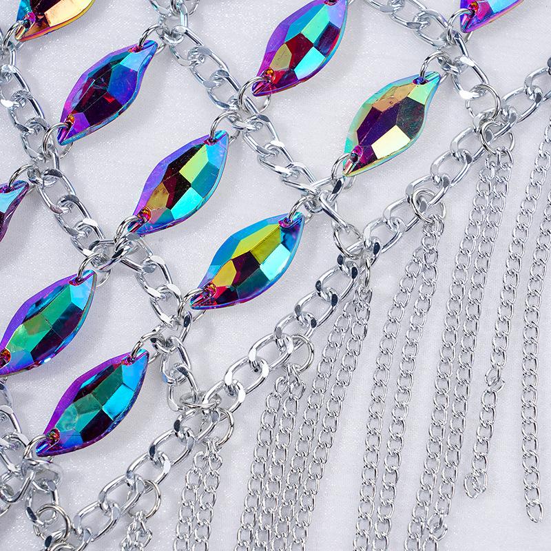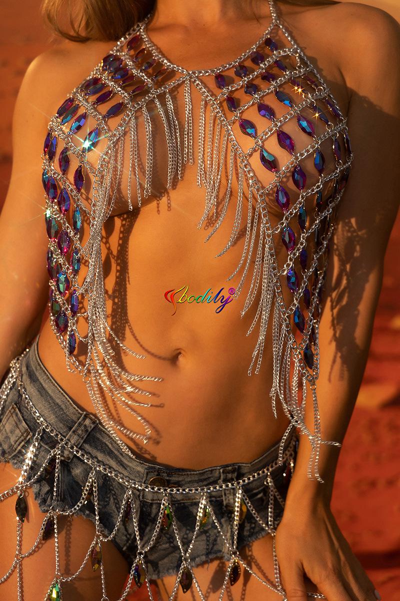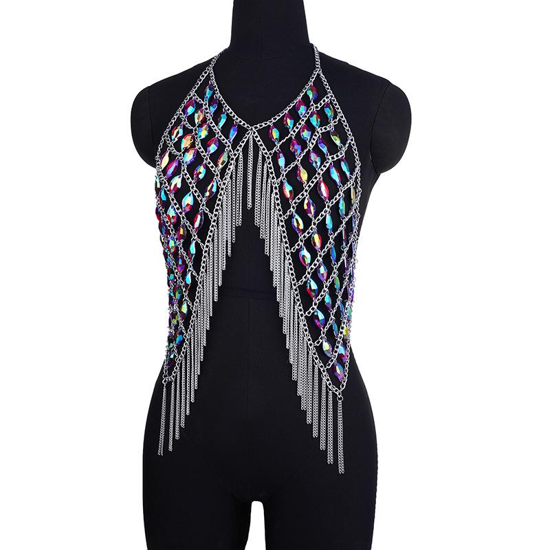 Cadena de bikini sexy de moda transfronteriza europea y americana con borlas de acrílico y diamantes para el hombro, cadena para el cuerpo, joyería