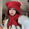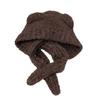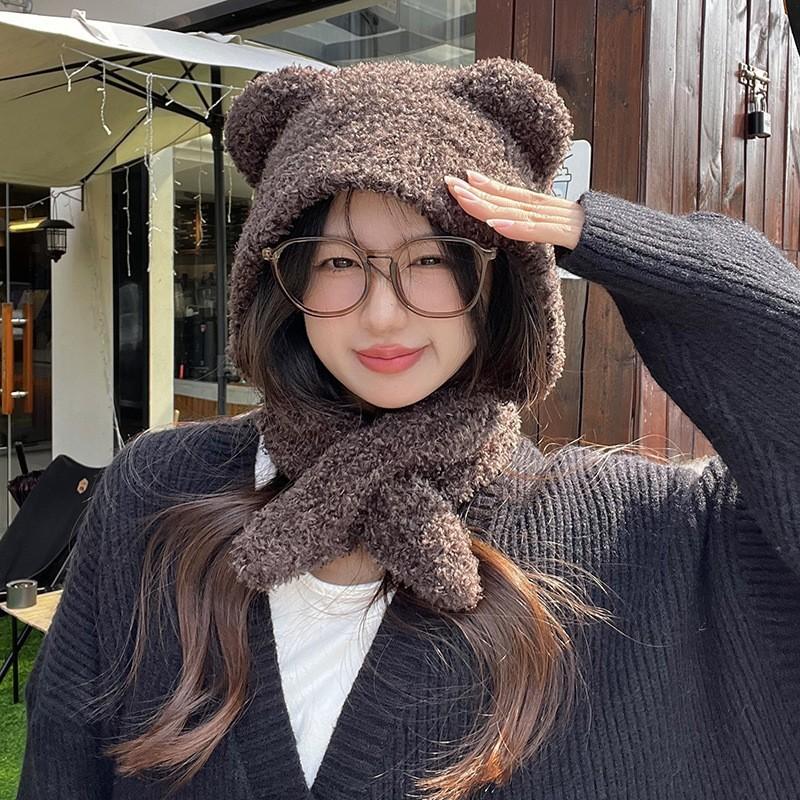 Conjunto de dos piezas de gorro y bufanda estilo coreano, gorro de punto resistente al frío con oso de peluche, gorro cálido de invierno para mujer con protección para las orejas.