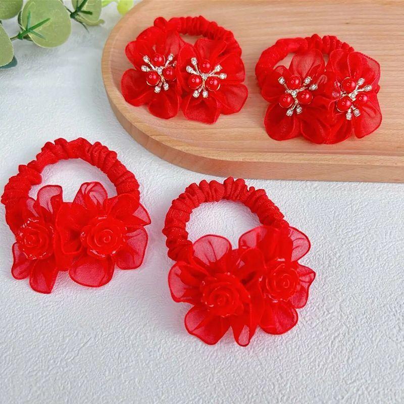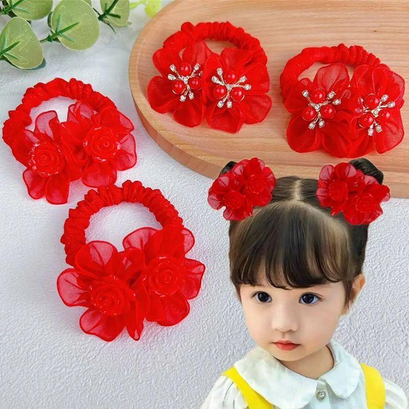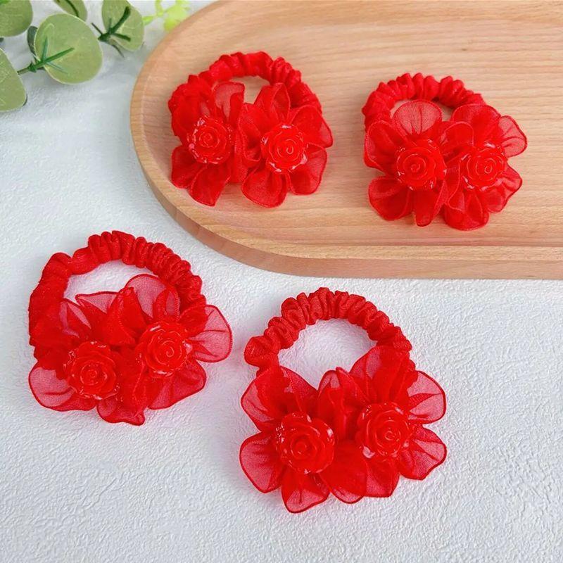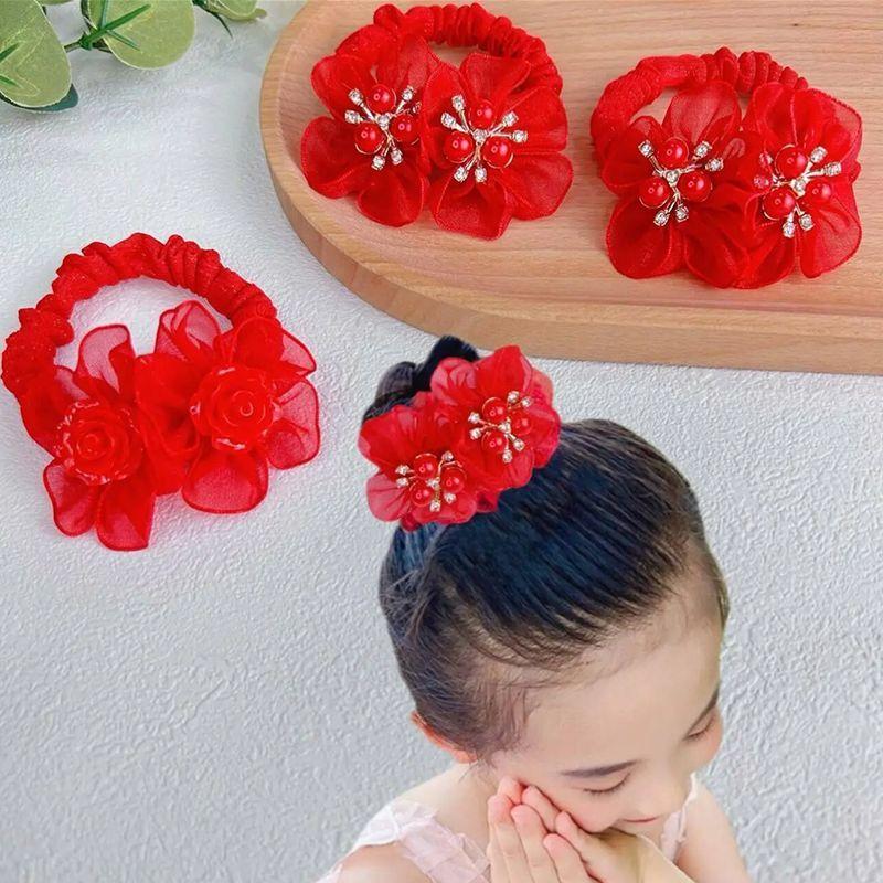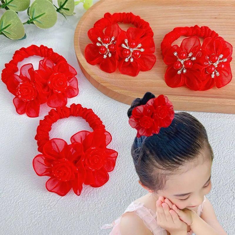 Bebé Flor Roja Grande Anillo para el Cabello de Intestino Delgado Rojo Festivo Rosa Cuerda para la Cabeza Accesorios para el Cabello de Cuentas para Actuación de Niña
