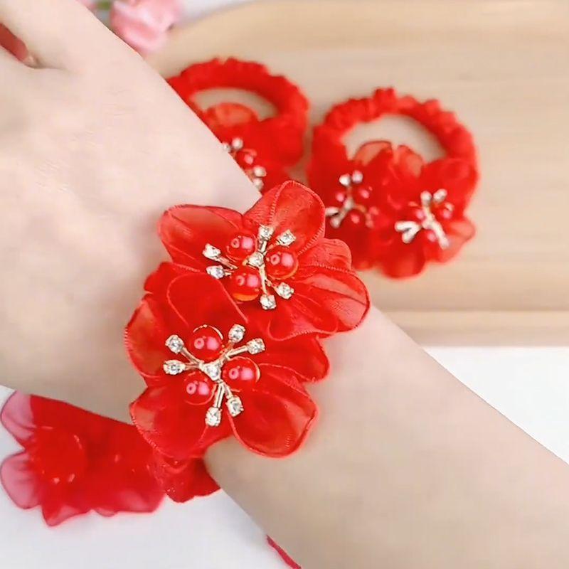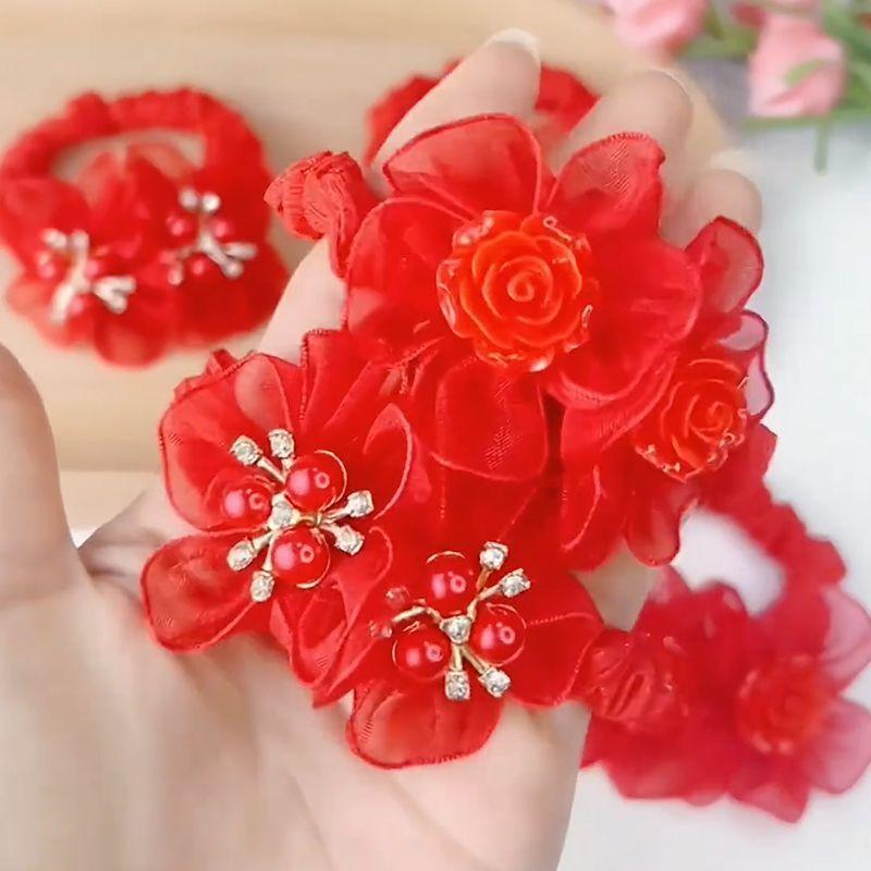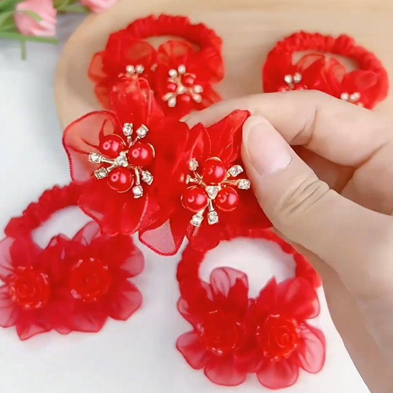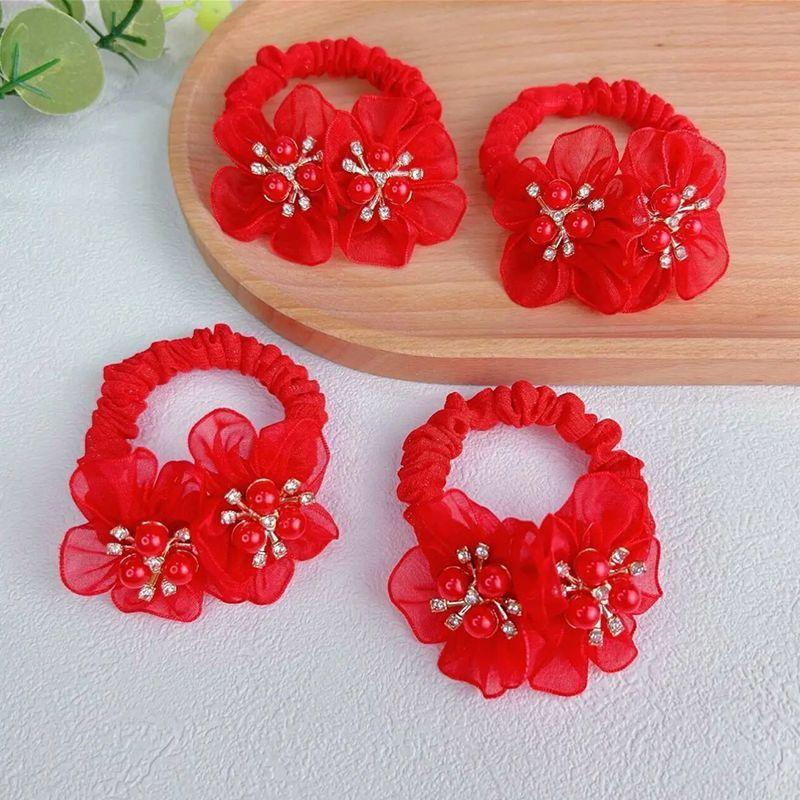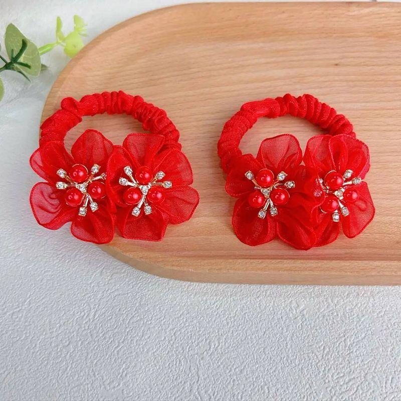 Bebé Flor Roja Grande Anillo para el Cabello de Intestino Delgado Rojo Festivo Rosa Cuerda para la Cabeza Accesorios para el Cabello de Cuentas para Actuación de Niña