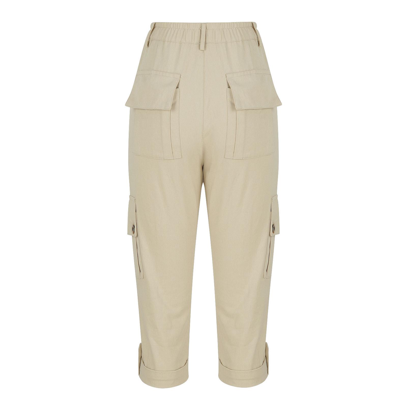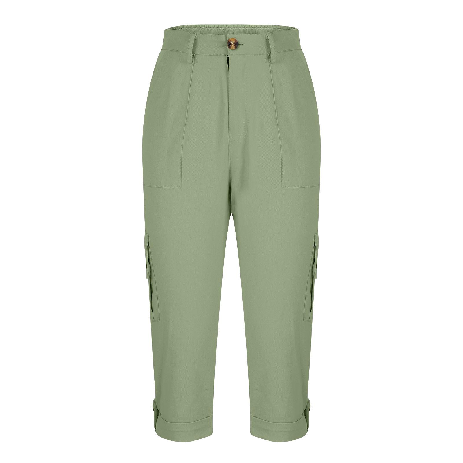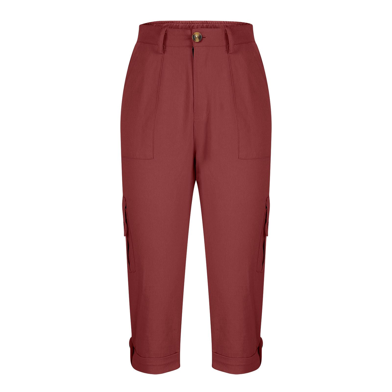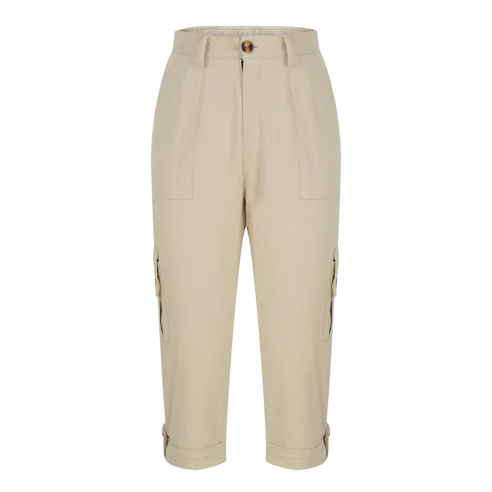 Pantalones casuales recortados multibolsillos de color liso para mujer (2024)