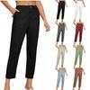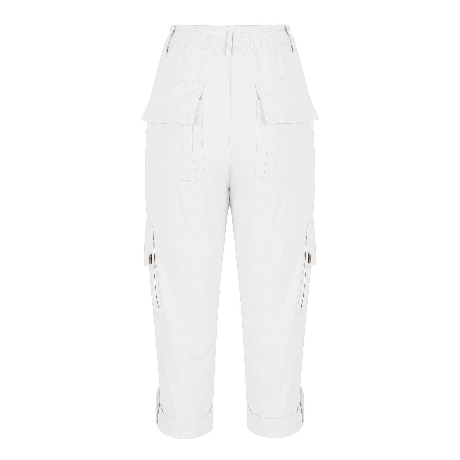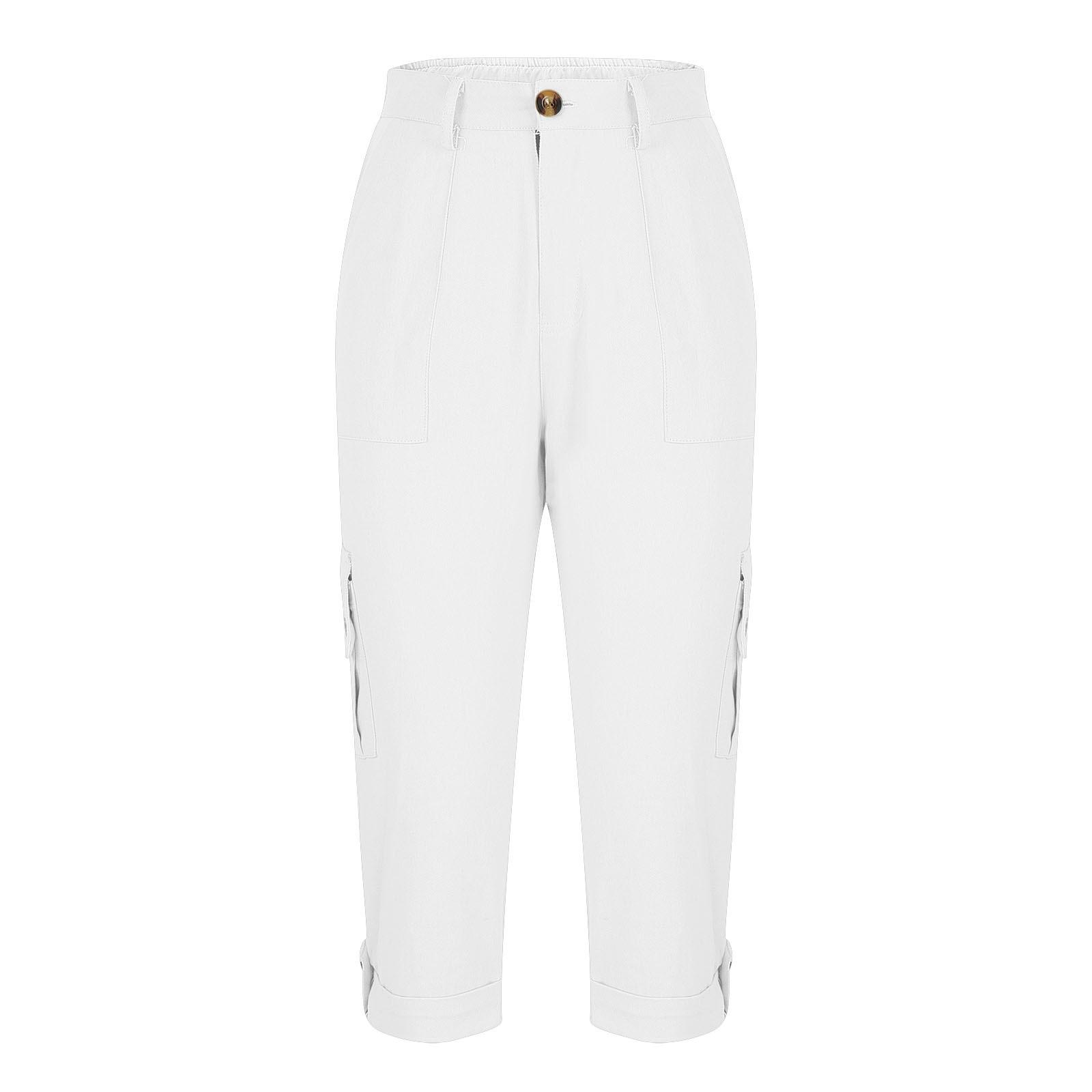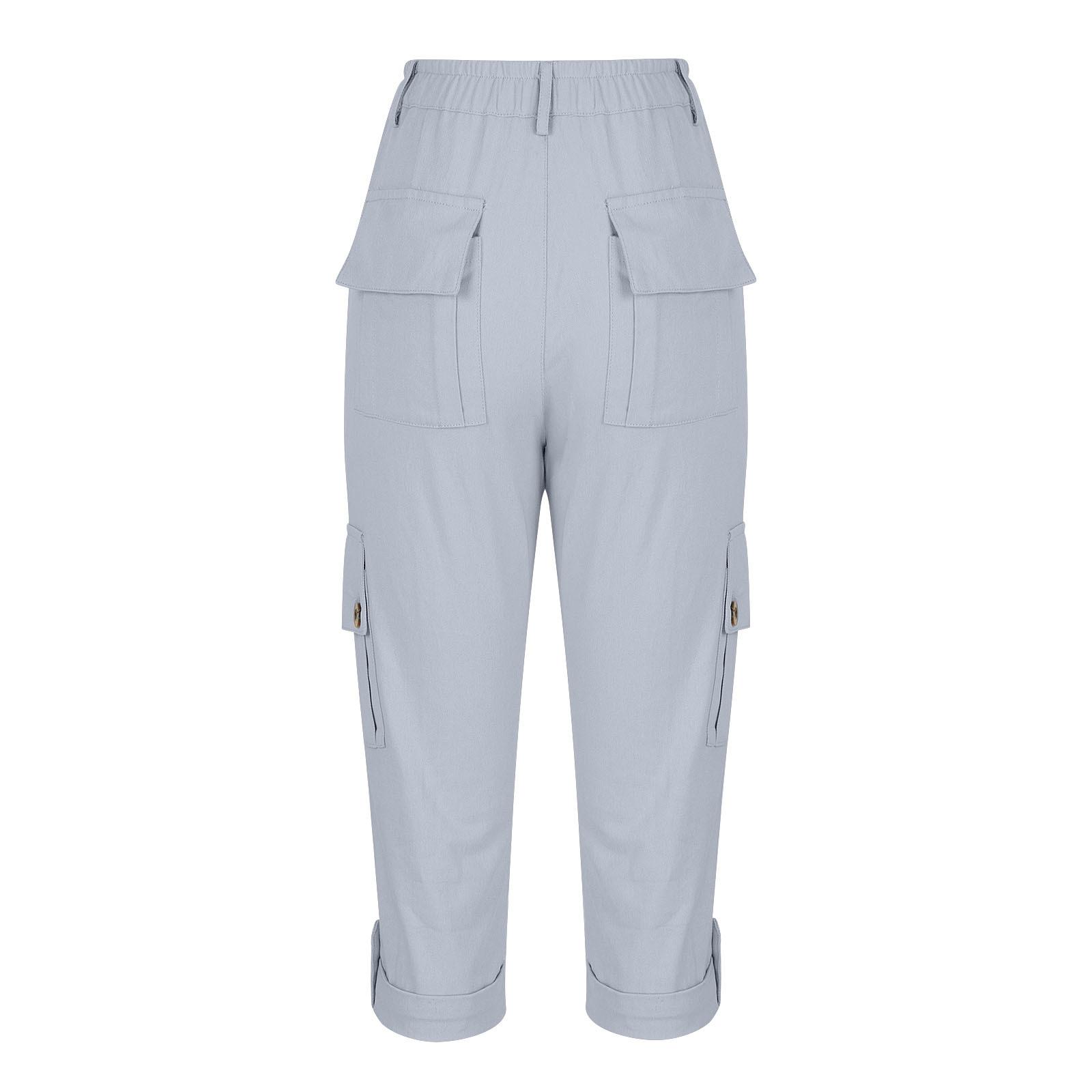 Pantalones casuales recortados multibolsillos de color liso para mujer (2024)