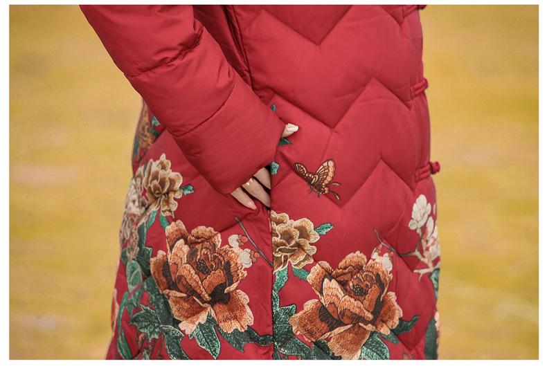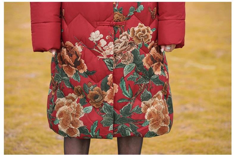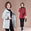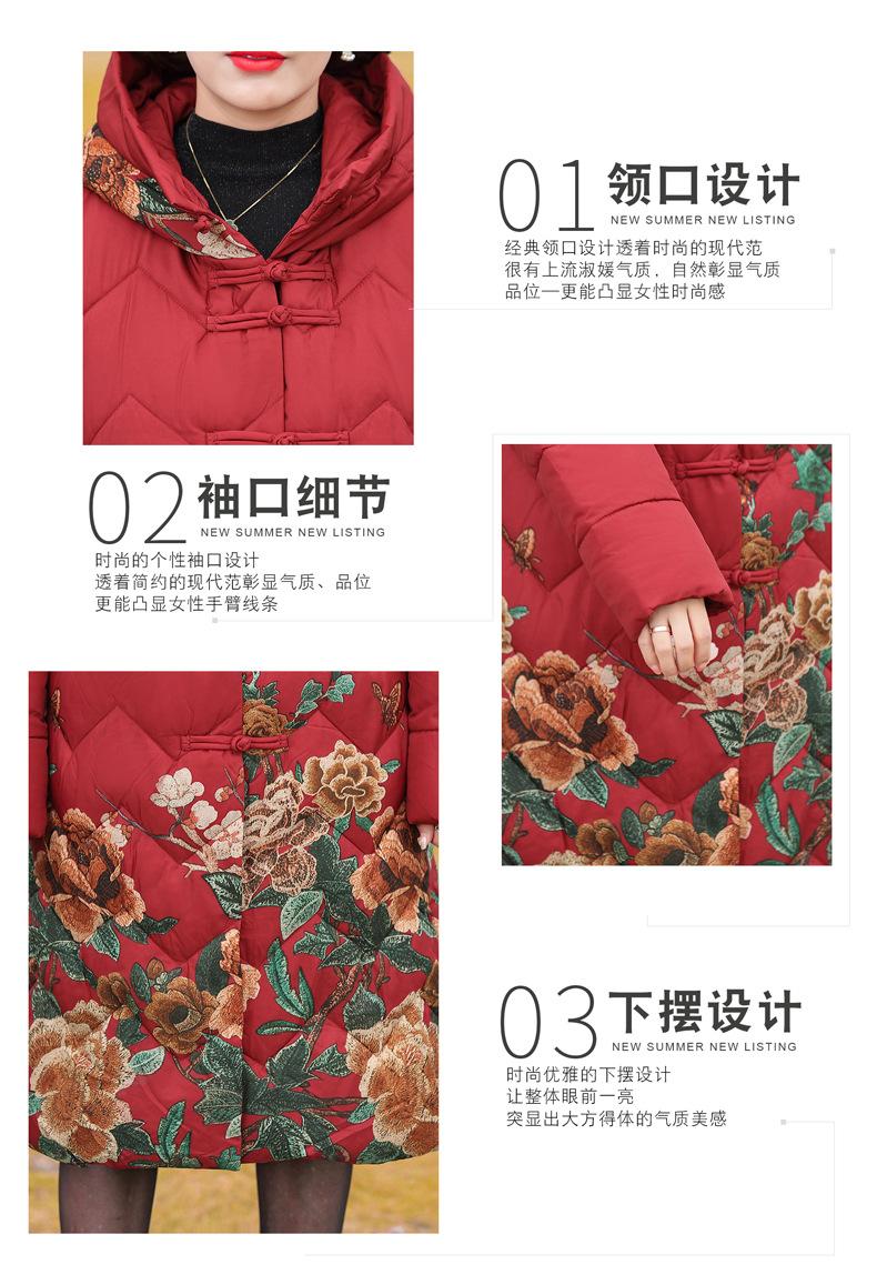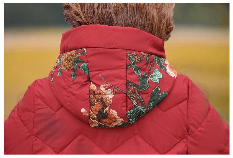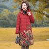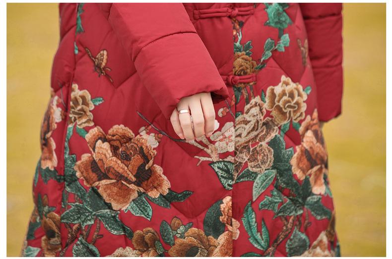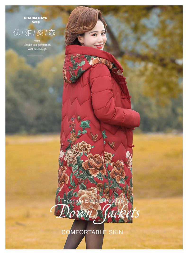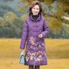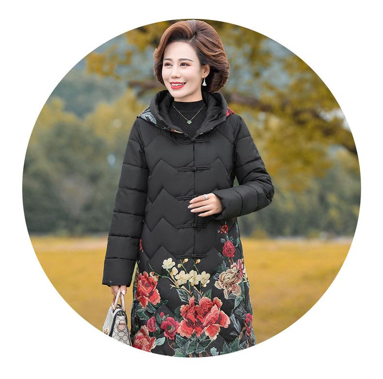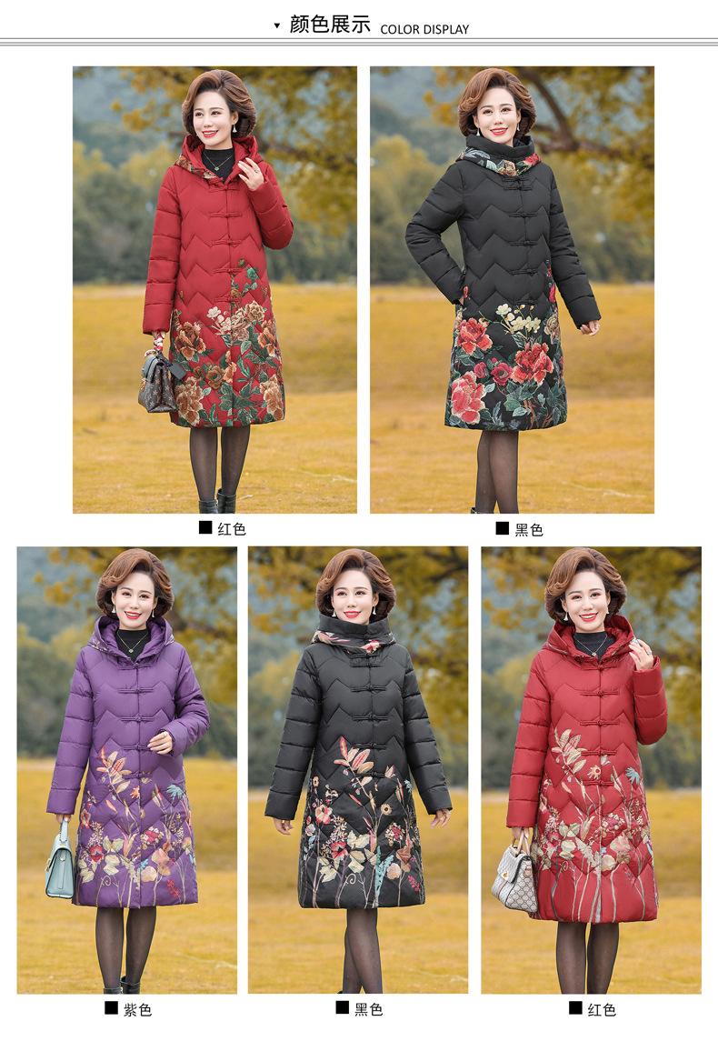 Abrigo de invierno para mamá acolchado de algodón con plumón, largo medio sobre la rodilla, grueso, para mujeres de mediana edad y mayores, abrigo de otoño e invierno, estilo étnico con hebilla