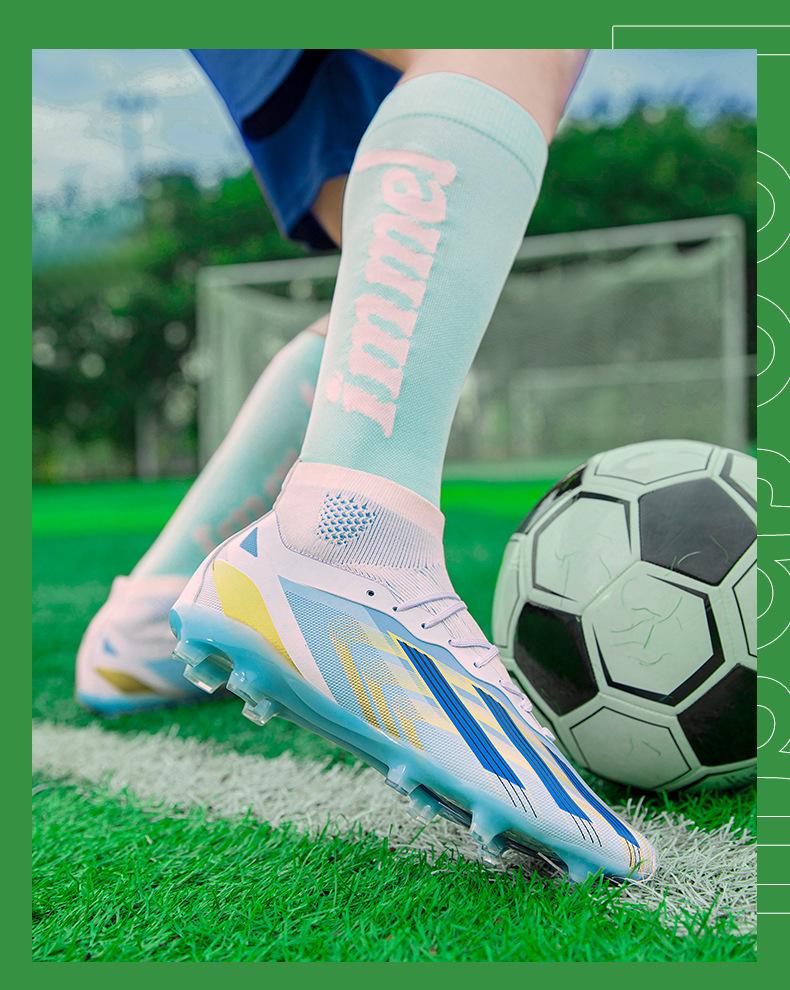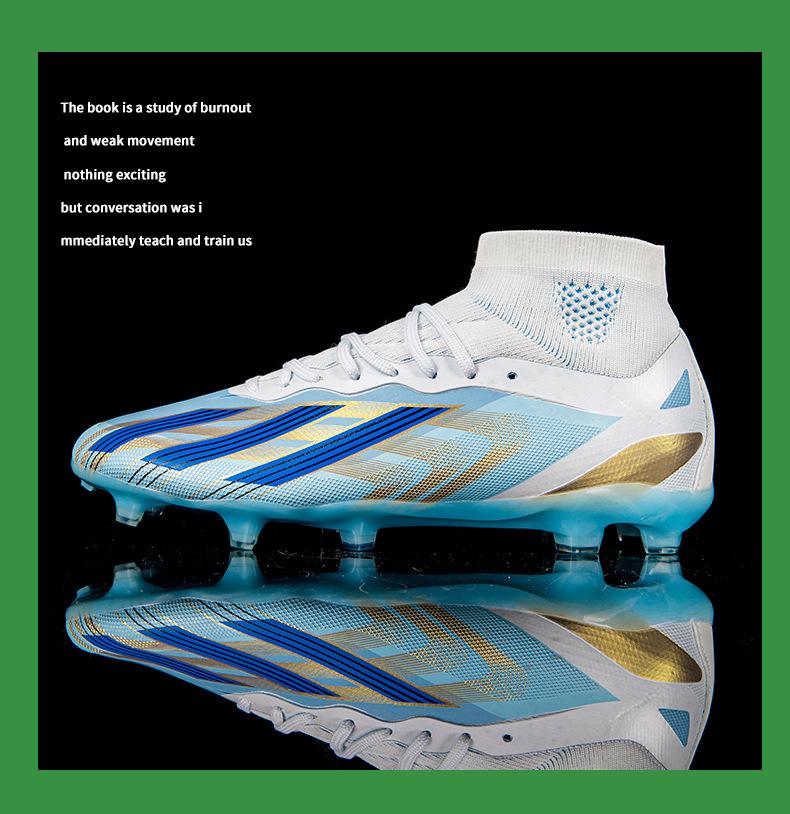 Zapatos de fútbol de talla grande transfronterizos para hombres y mujeres, de caña alta, para estudiantes, de entrenamiento de competición, con césped artificial y clavos triturados.