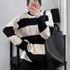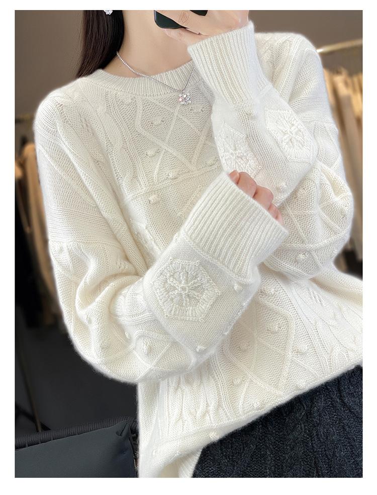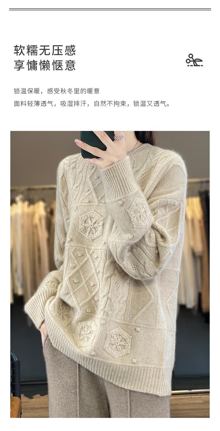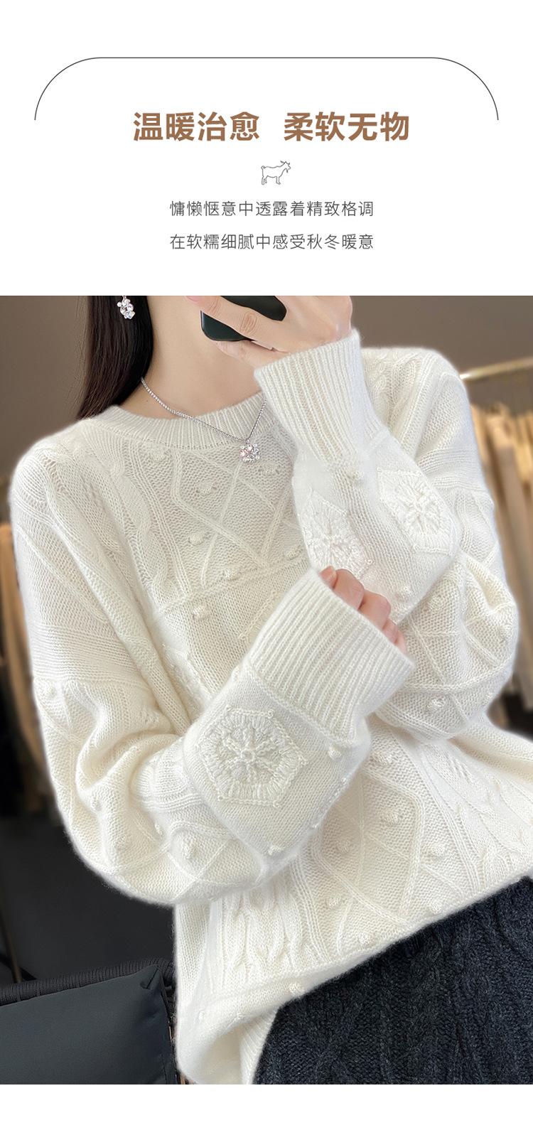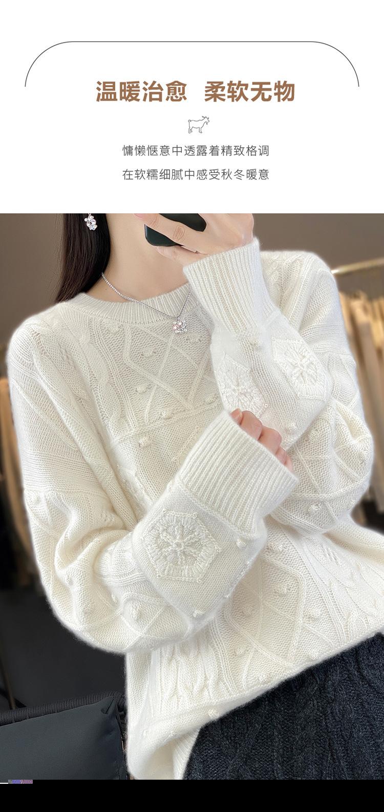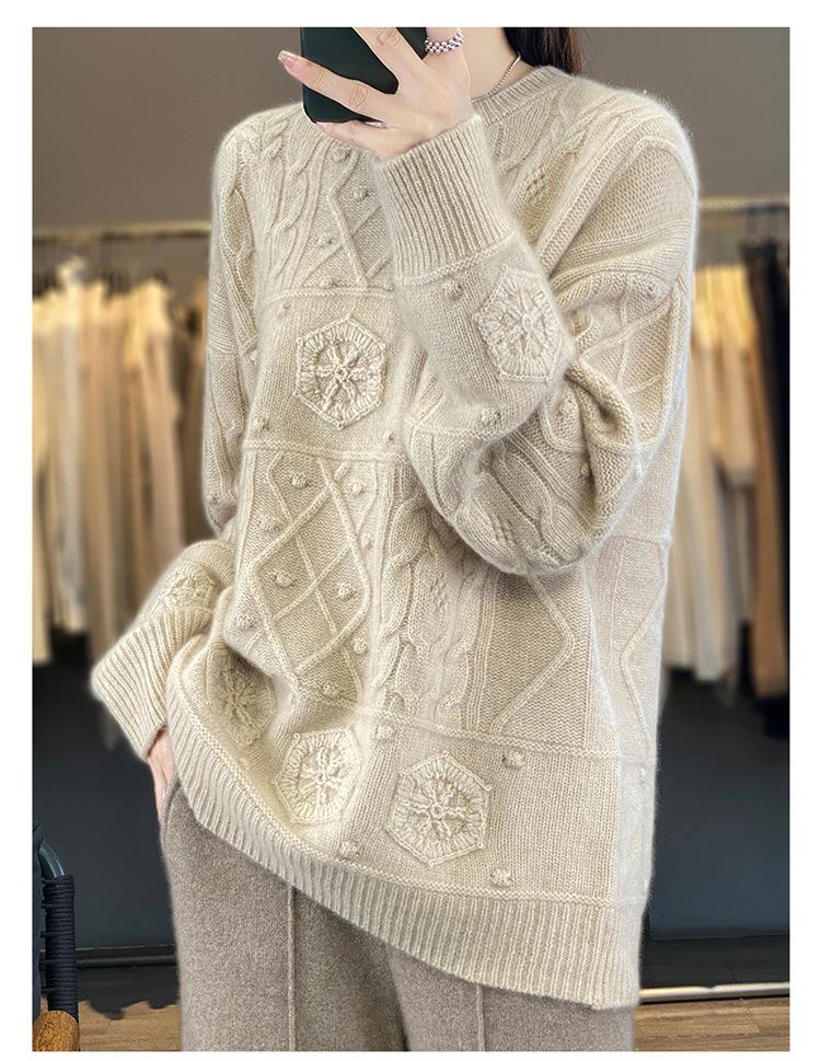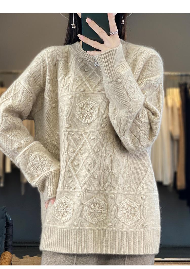 Suéter de punto holgado e informal de color sólido con cuello redondo de lana completa y trenzado de diamante para mujer de otoño e invierno de 2023
