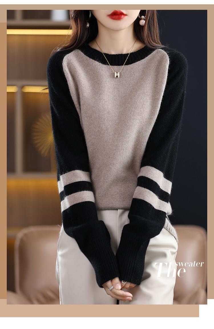 Suéter grueso de cuello redondo a juego de colores simples de nuevo estilo coreano otoño e invierno 2022, suéter informal suelto de punto de lana completa