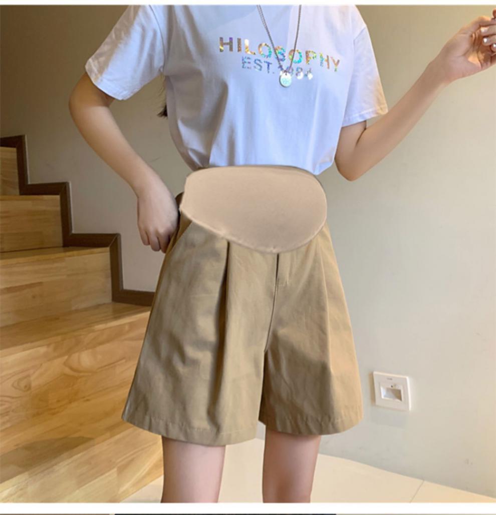 Pantalones cortos de traje para embarazadas, de verano 2025, finos, elásticos, con soporte abdominal, informales, holgados, de pierna ancha y 5 puntos.