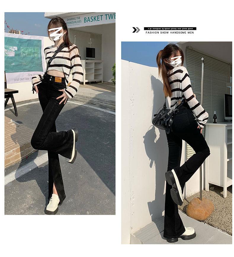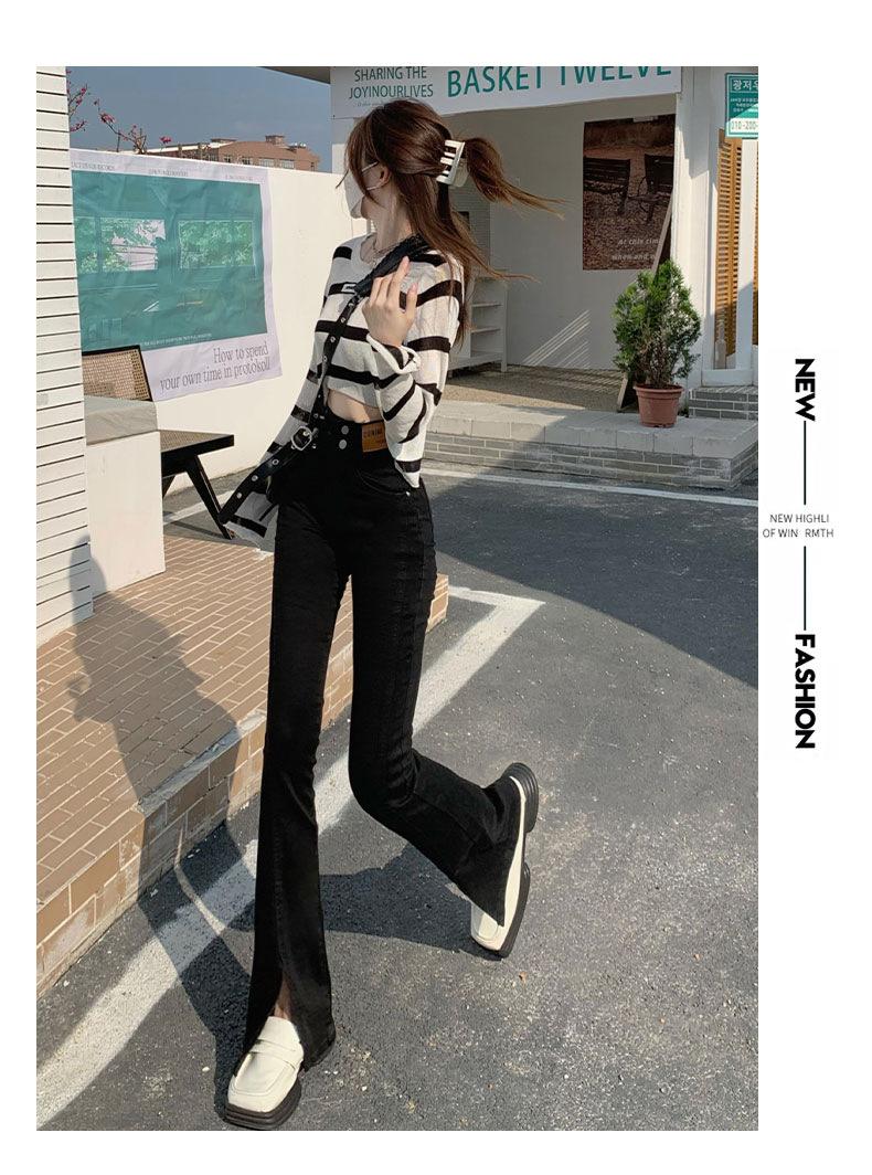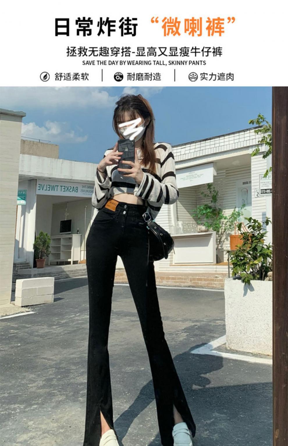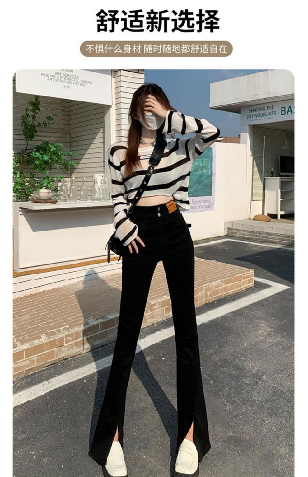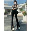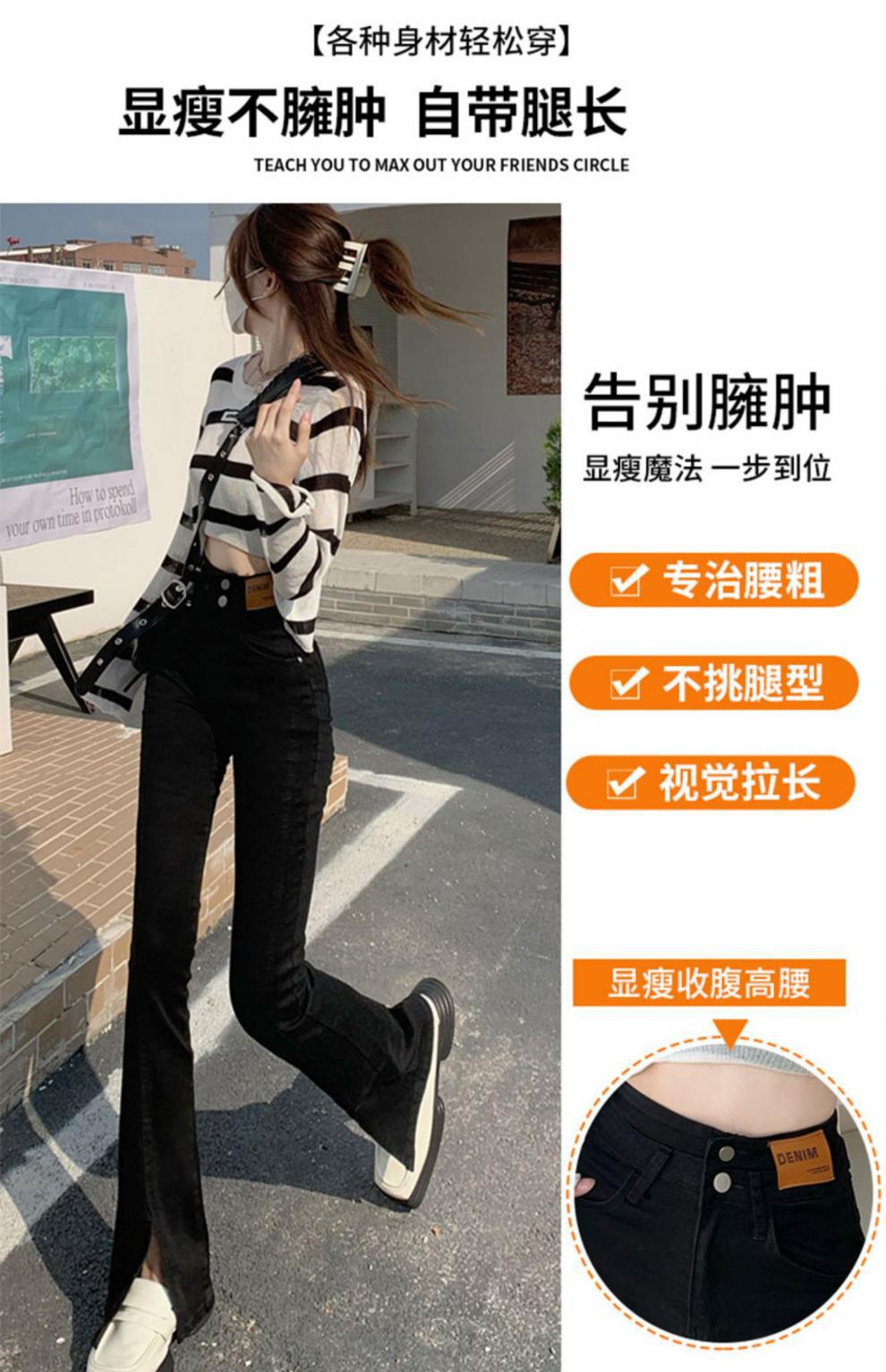 Vaqueros holgados, elásticos, con microaberturas y cintura alta, primavera y otoño 2023, nuevos pantalones acampanados ajustados y ajustados.