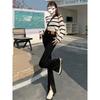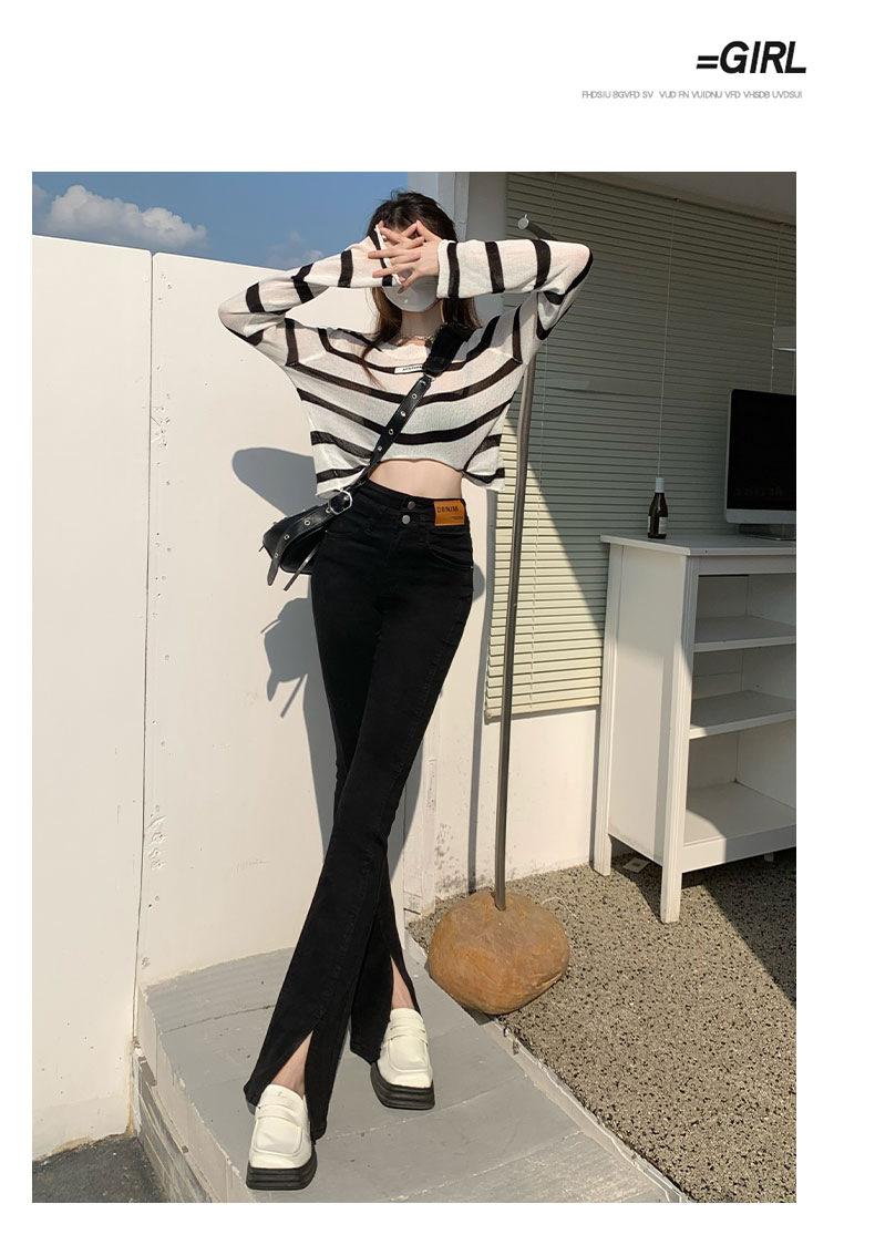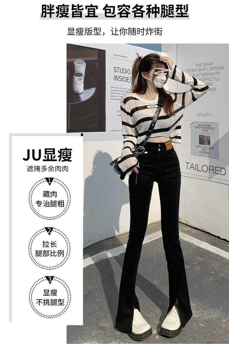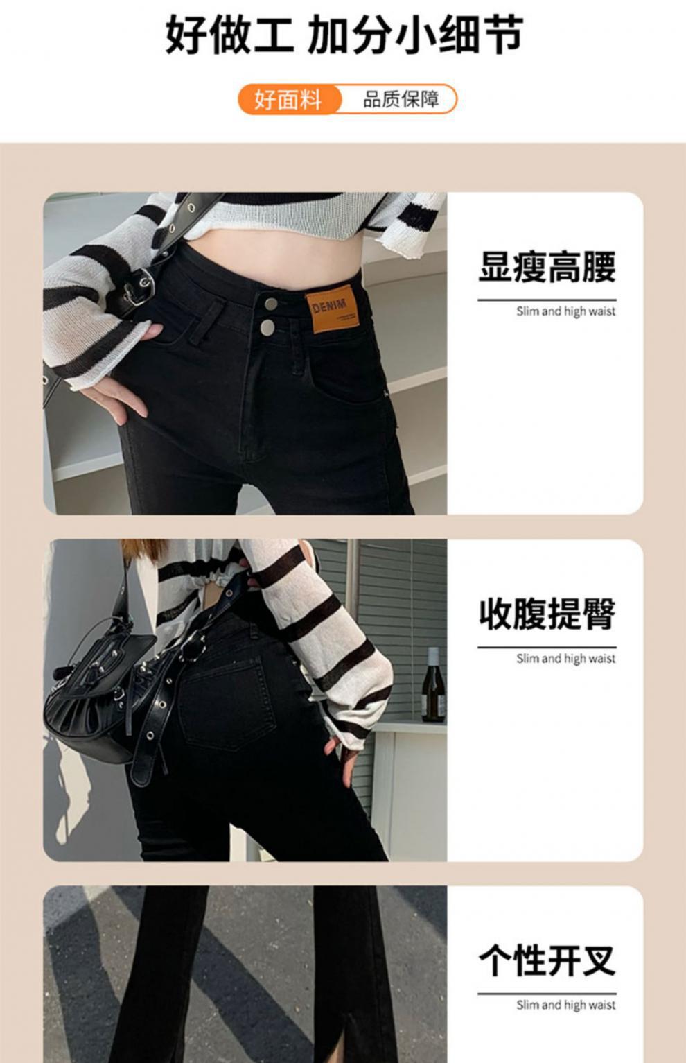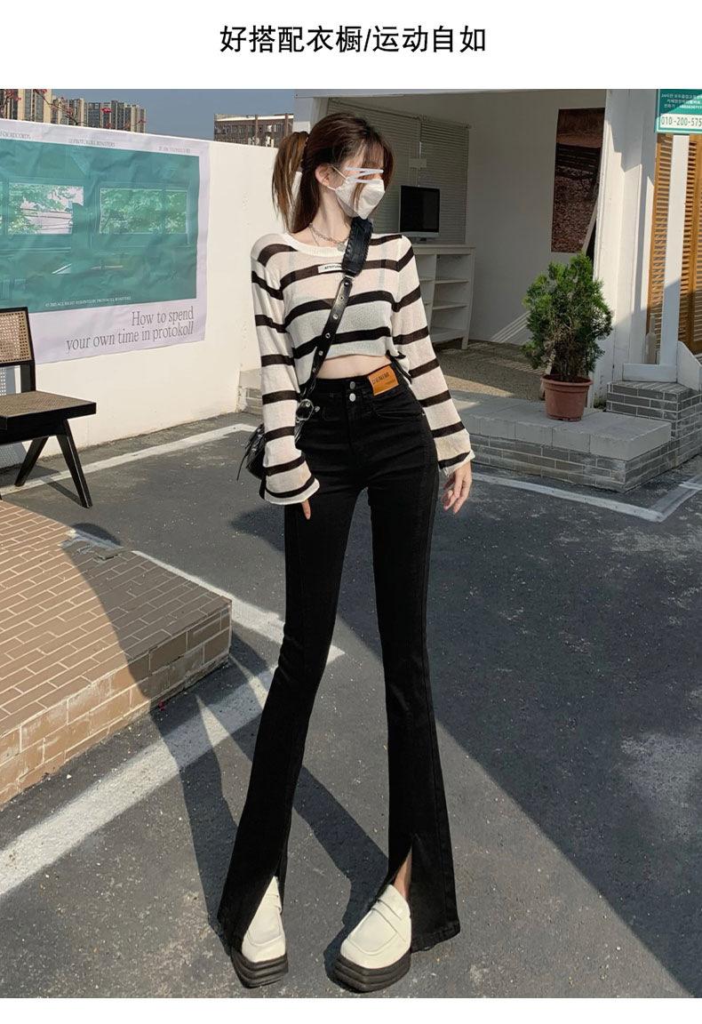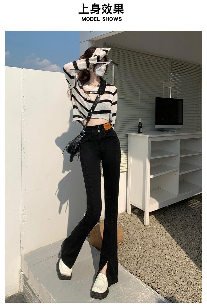 Vaqueros holgados, elásticos, con microaberturas y cintura alta, primavera y otoño 2023, nuevos pantalones acampanados ajustados y ajustados.