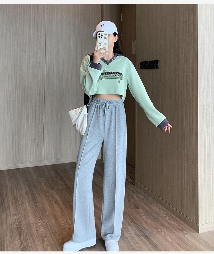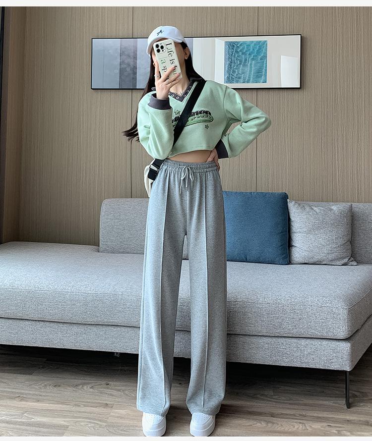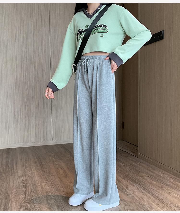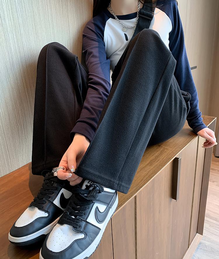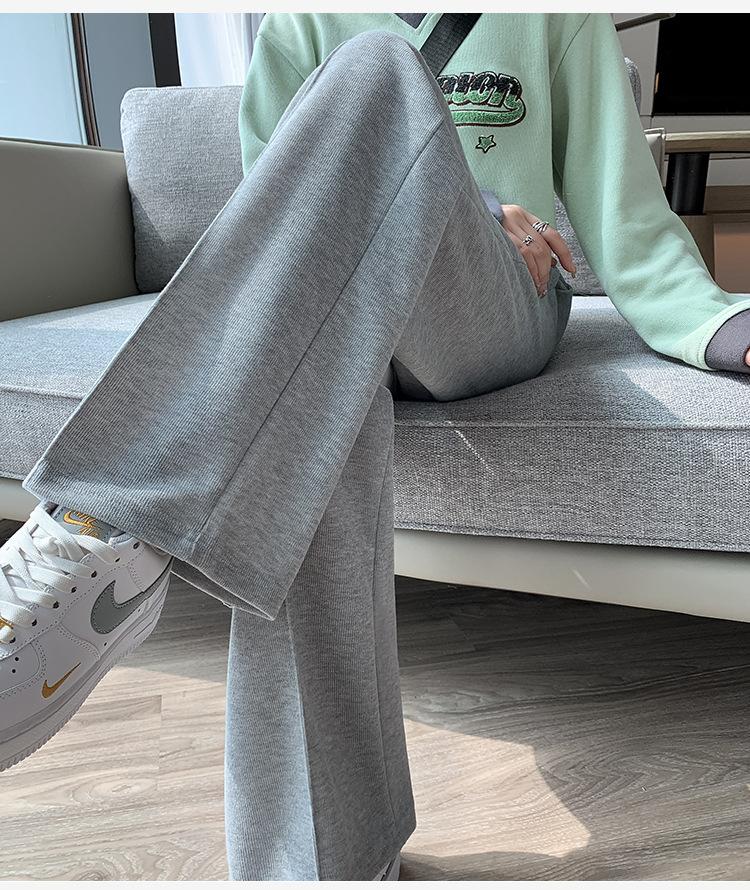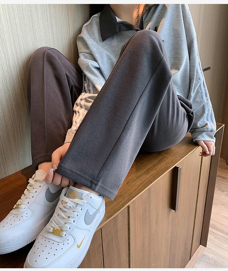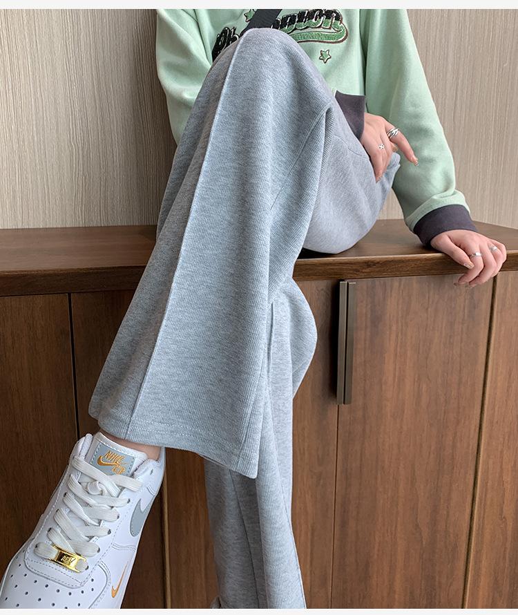 Pantalones deportivos grises para mujer primavera y otoño pantalones de chándal otoño e invierno forrados de felpa 2023 nuevos pantalones casuales de mujer pantalones rectos de pierna ancha para mujer