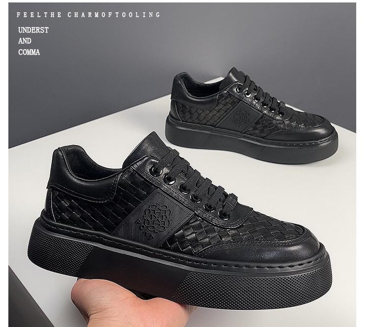 Zapatos Deportivos Casuales Populares de Cuero Genuino Tenis Negros Zapatos de Moda para Hombre Capa Superior de Cuero Vacuno Estación Europea Lujo Ligero Zapatos de Hombre de Alta Gama