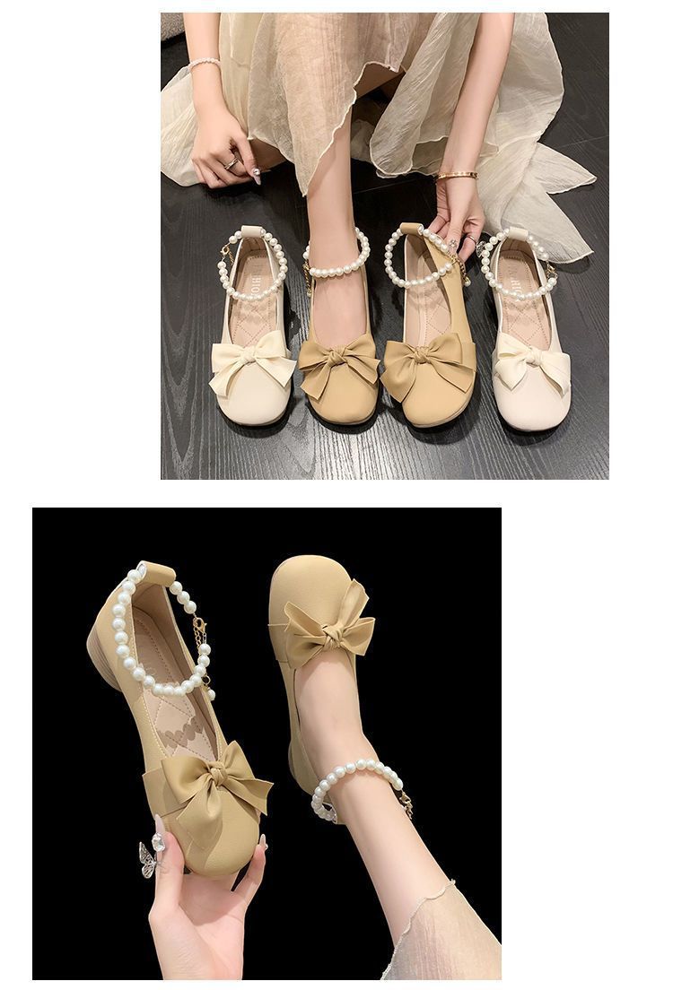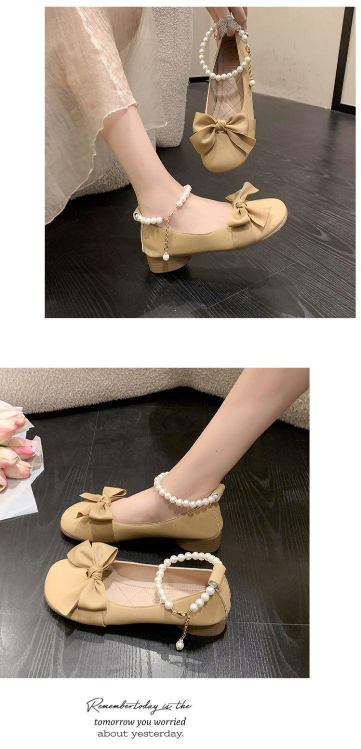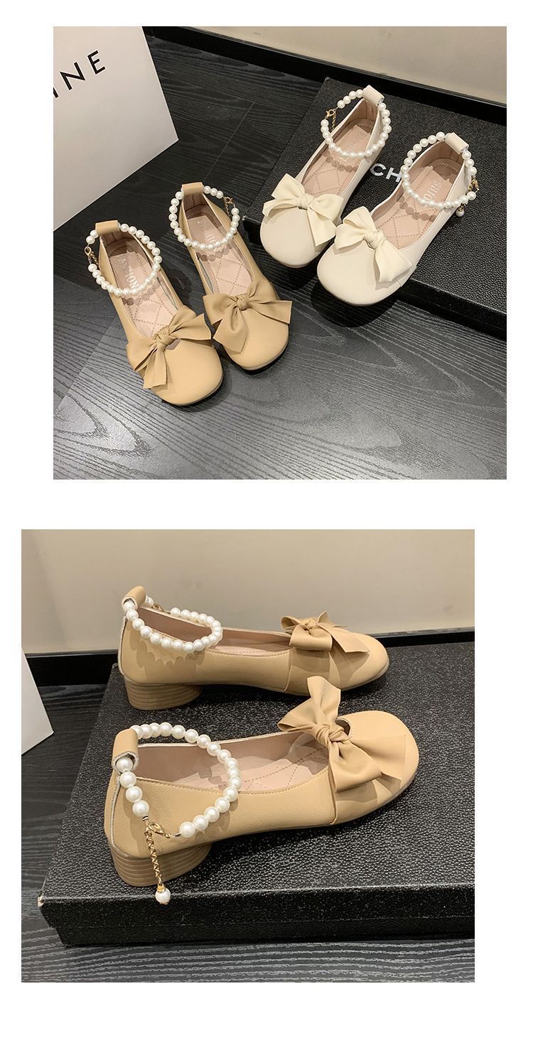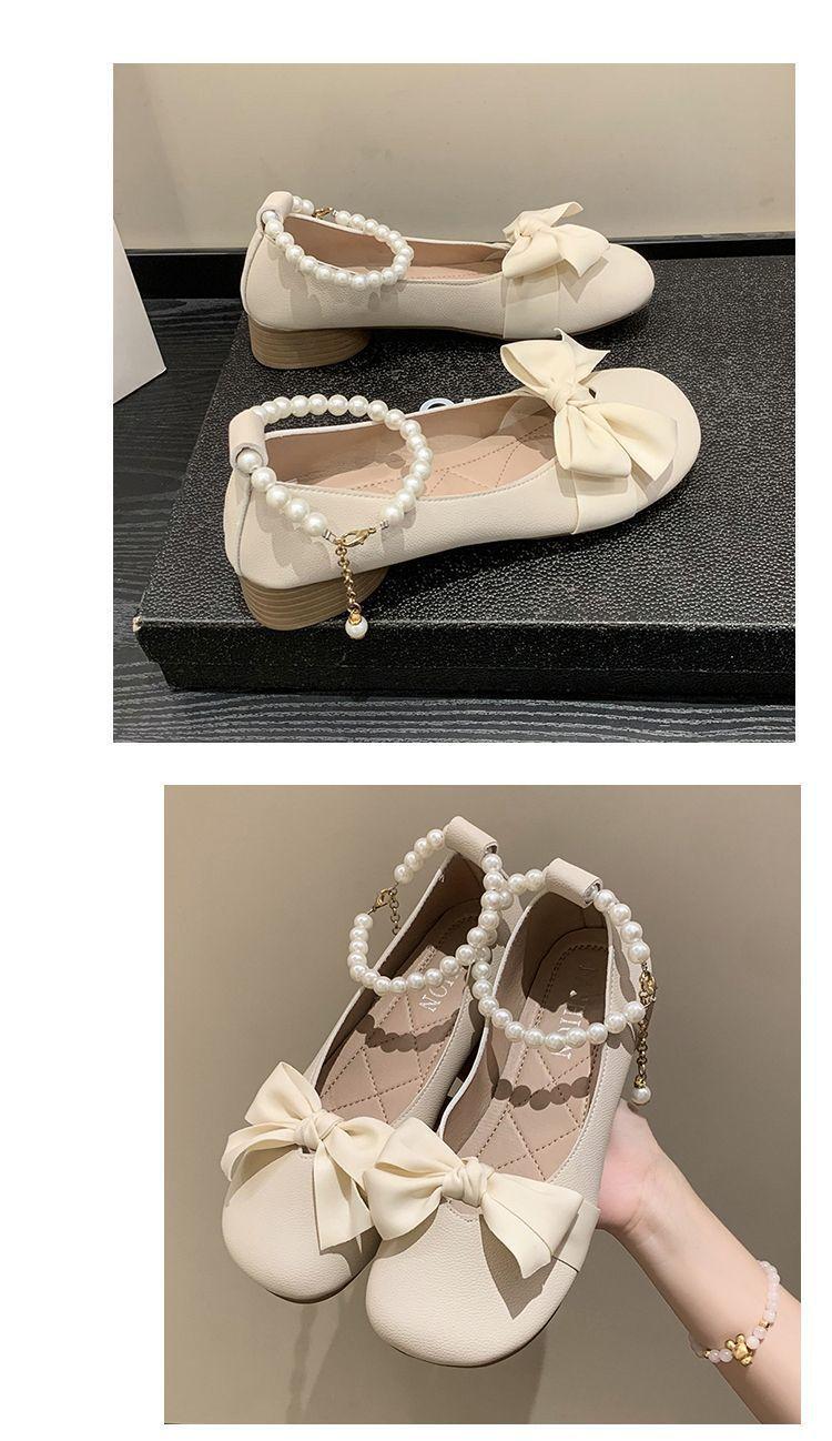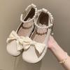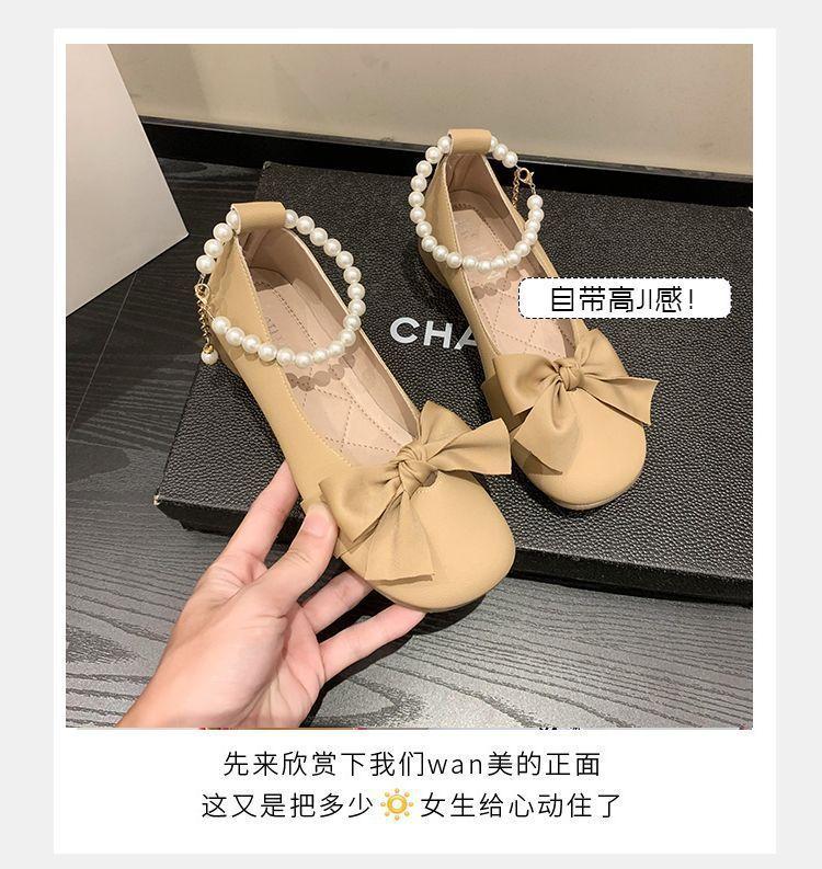 Zapatos Mary Jane de cuero estilo británico pequeños retro verano 2024 nuevos lazo con falda perla zapatos japoneses