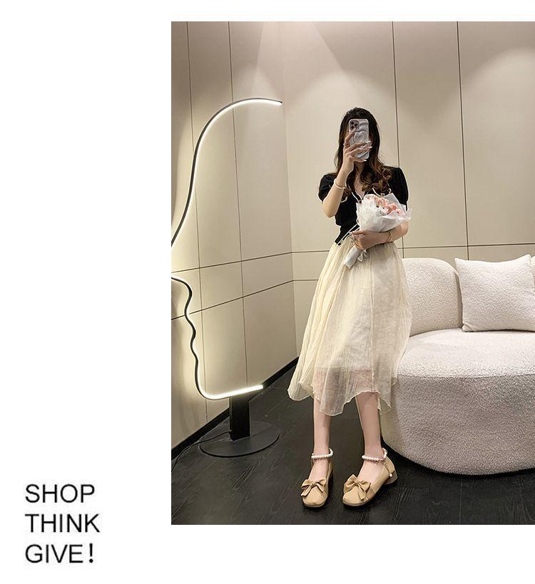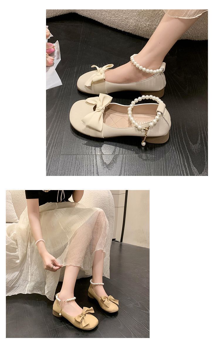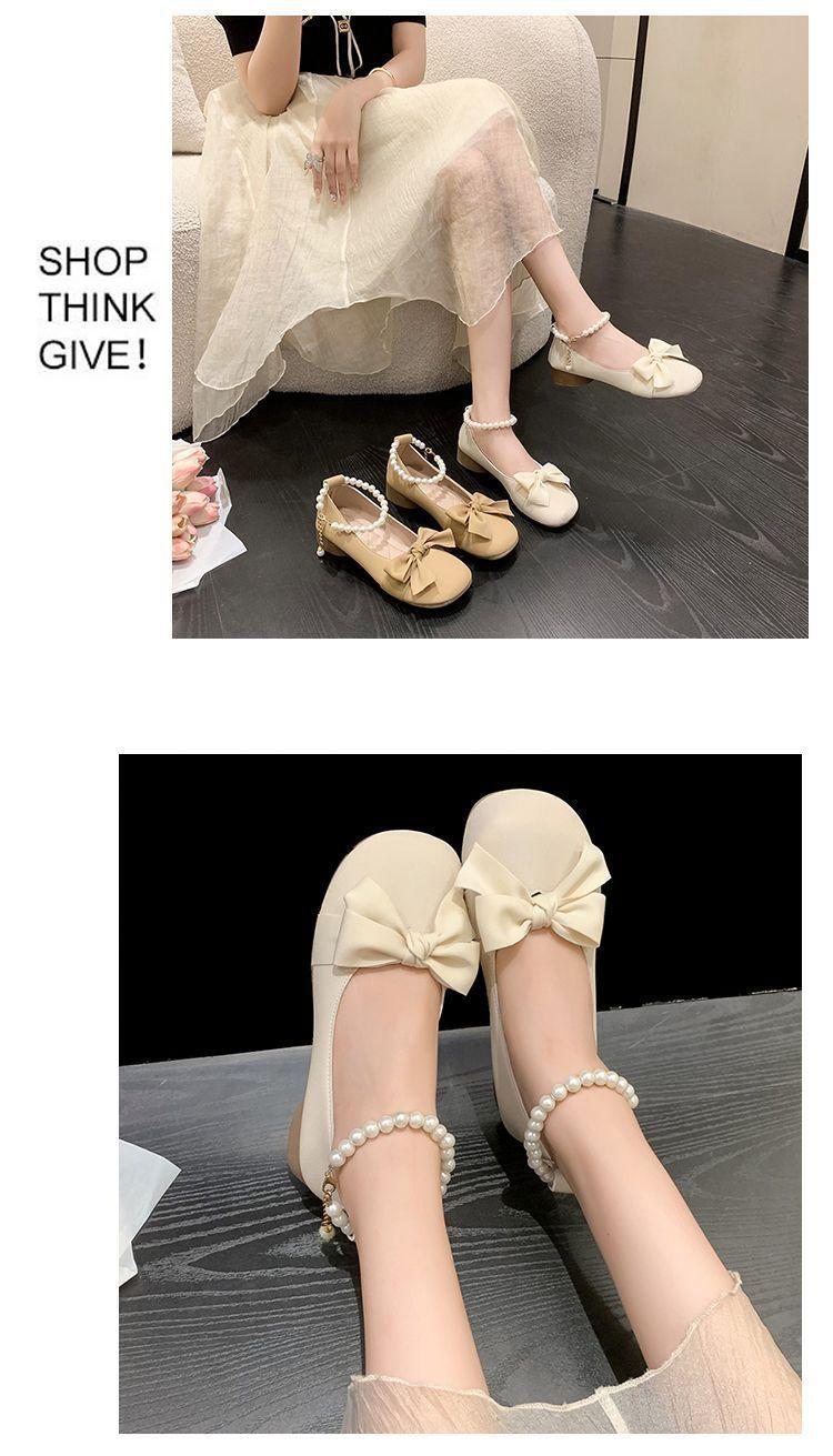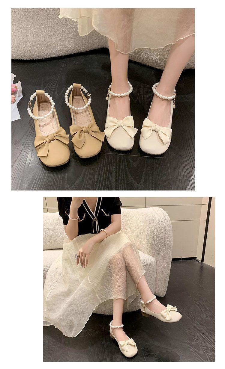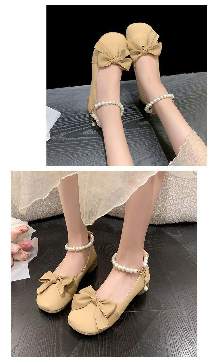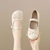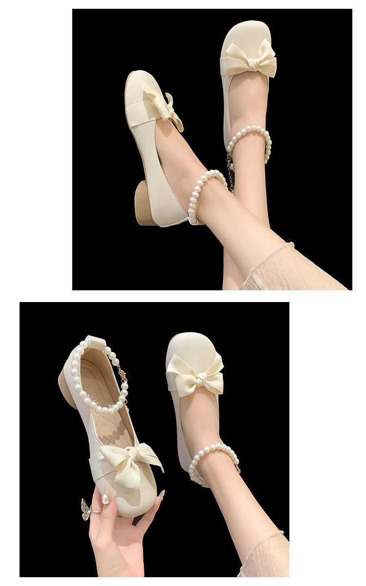 Zapatos Mary Jane de cuero estilo británico pequeños retro verano 2024 nuevos lazo con falda perla zapatos japoneses