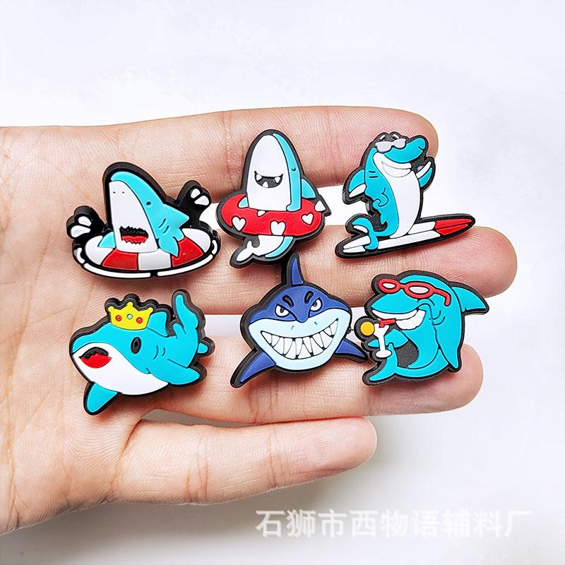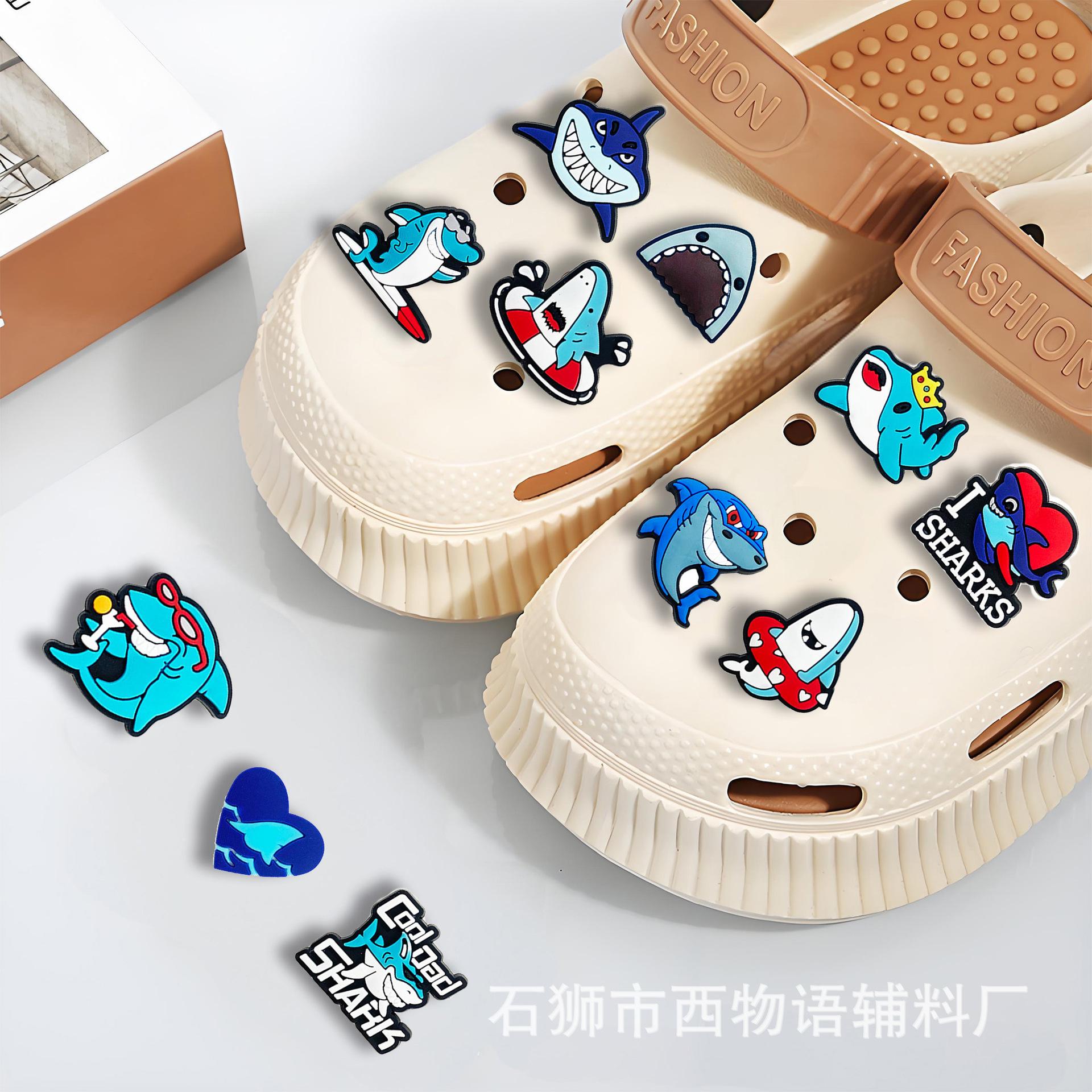 Nuevos zapatos de tiburón zapatos con agujeros decorativos de flores accesorios para zapatos de alto sentido pvc goma suave hebilla para zapatos de dibujos animados diy accesorios para zapatos transfronterizos