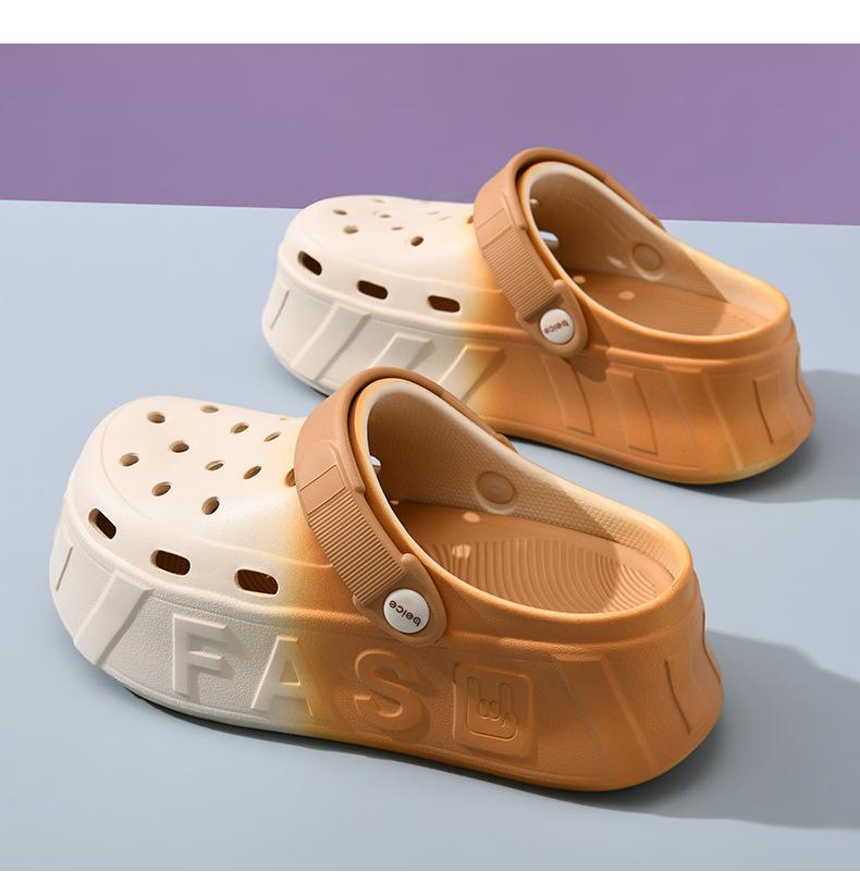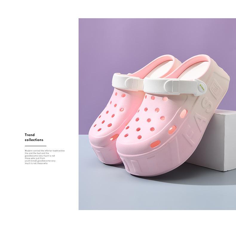 Zapatos de plataforma con agujeros para mujer, de verano, resistentes al desgaste, transpirables, Baotou, de EVA de alta calidad, antideslizantes, zapatillas de playa desodorantes