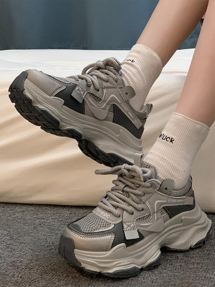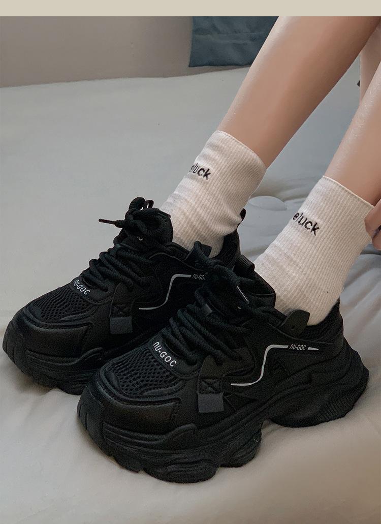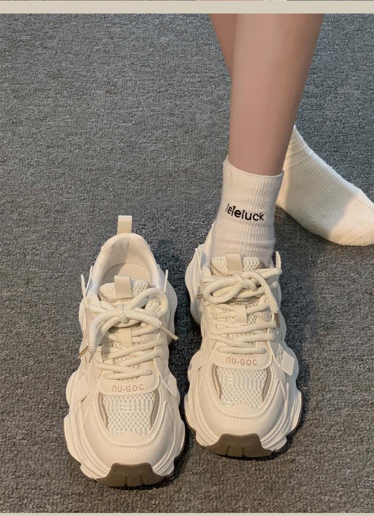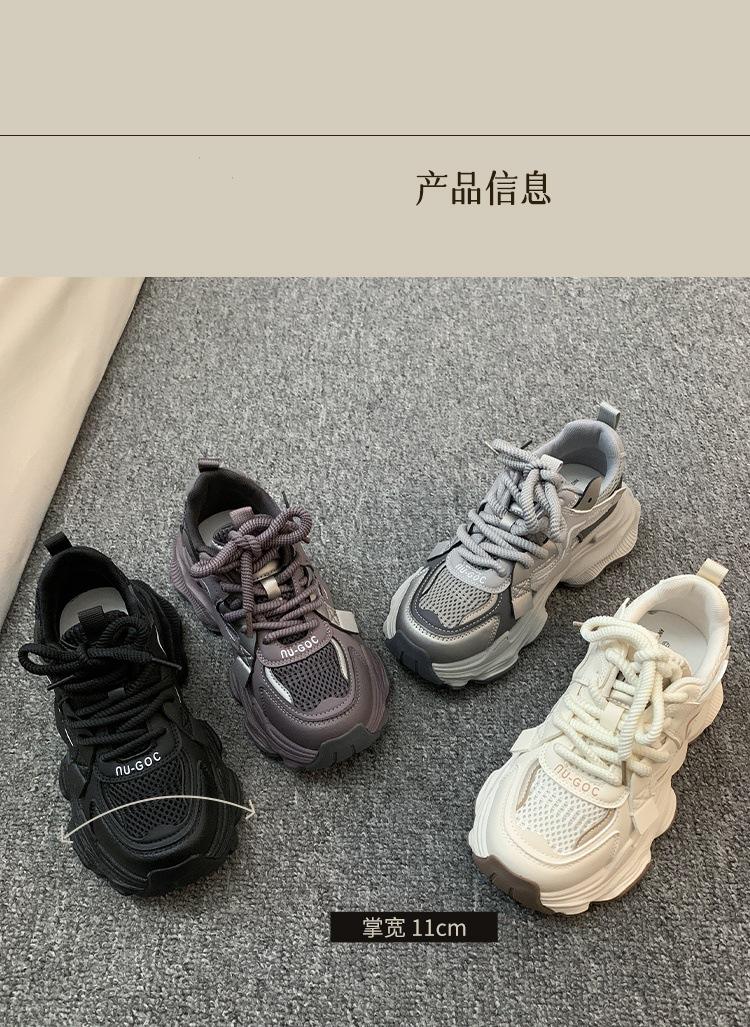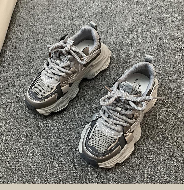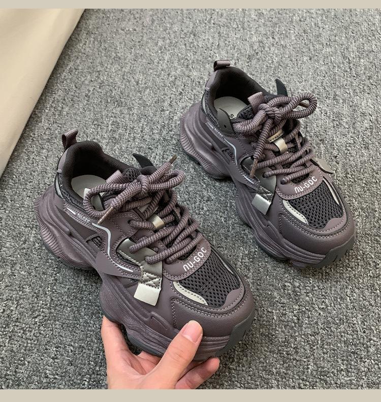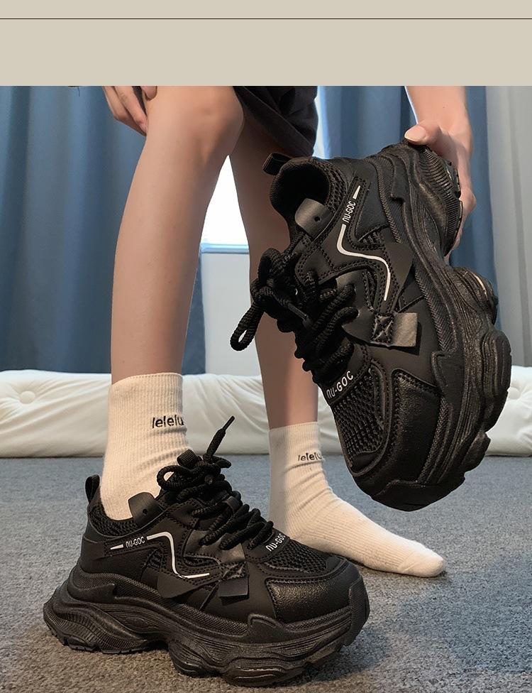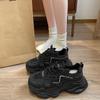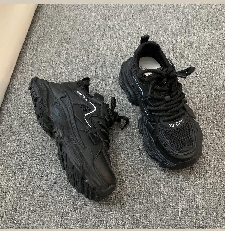Tenis Dad de Suela Gruesa Negros para Mujer 2025 Primavera y Otoño Nuevo Popular Estudiante Versátil Casual Que Muestra el Pie Zapatillas Pequeñas