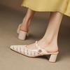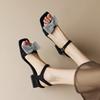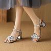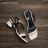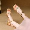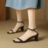 Sandalias de mujer de 3 cm de una línea, nuevas, de tacón medio, color sólido, suela TPR antideslizante, resistentes al desgaste, sandalias tejidas a mano