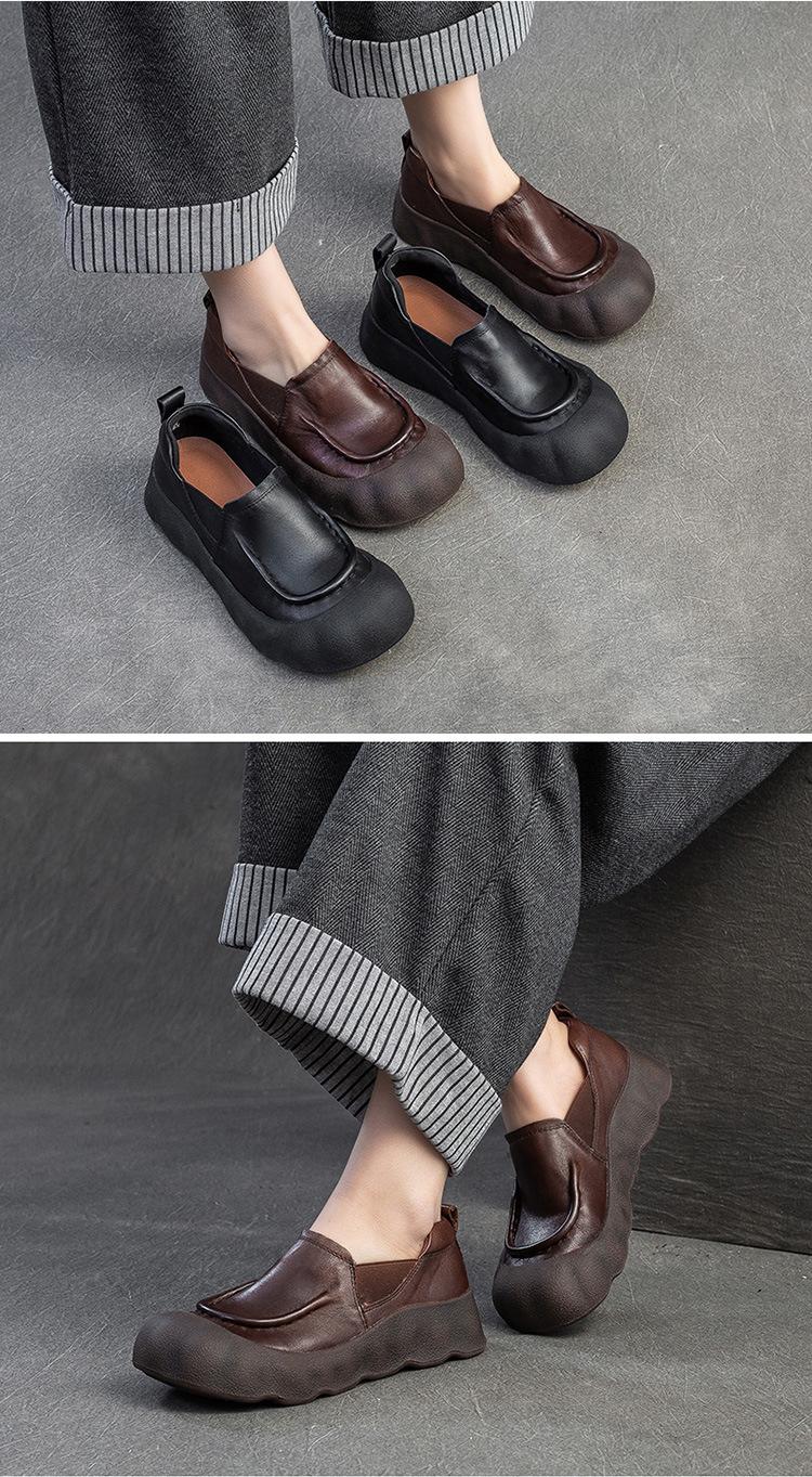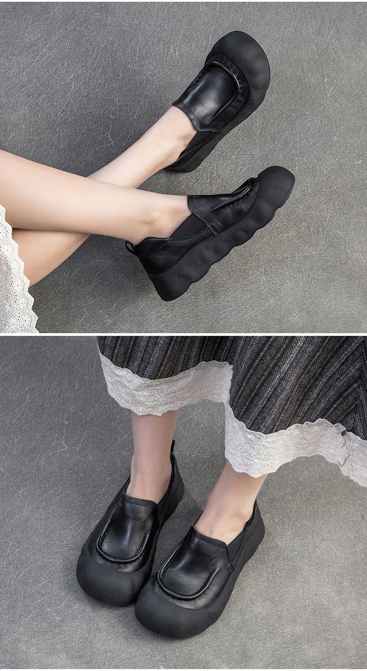 Zapatos de Plataforma Gruesa Shanghai Jie Meng 2025 Primavera y Verano Nuevos Zapatos de Cabeza Grande Feos Lindos de Una Sola Capa Casuales y Versátiles Zapatos Holgazanes Zapatos Retro de Mujer