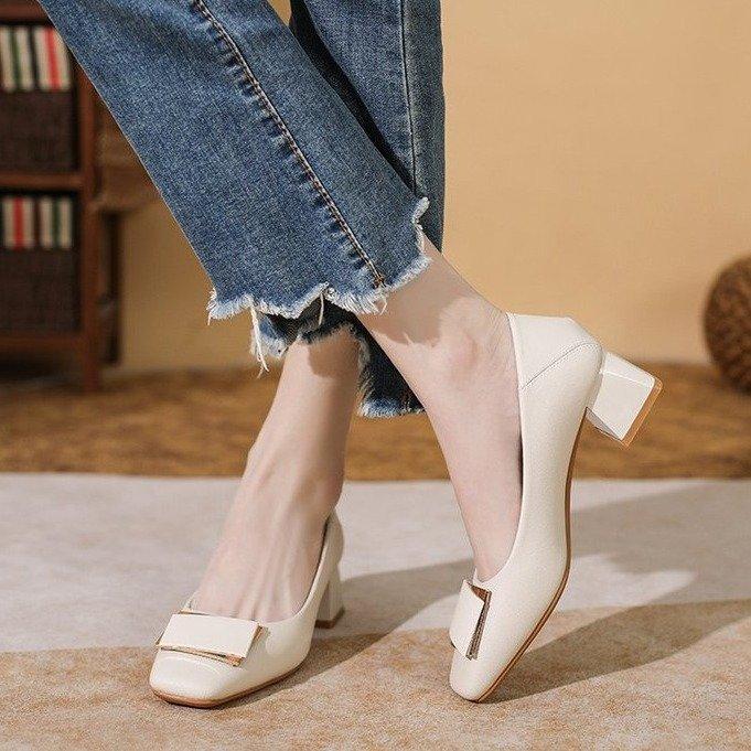 Zapatos de Trabajo para Mujer Negros 2025 Nuevos Cuero Suave Tacón Grueso Zapatos de Tacón Alto para Trabajo Profesional Entrevista Pies No Cansados Zapatos Individuales para Mujer