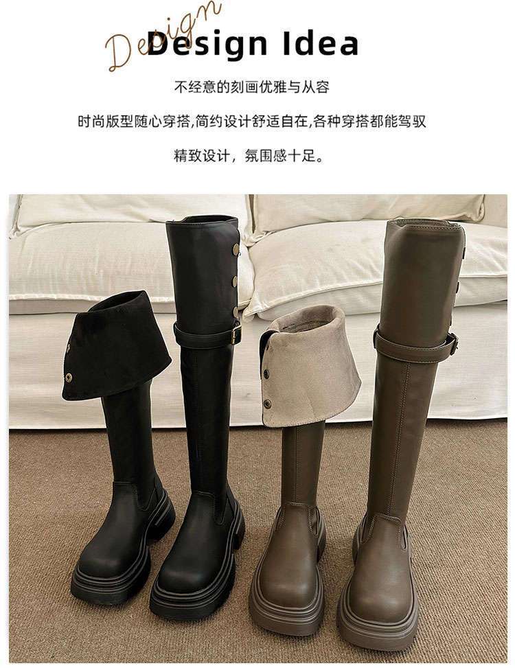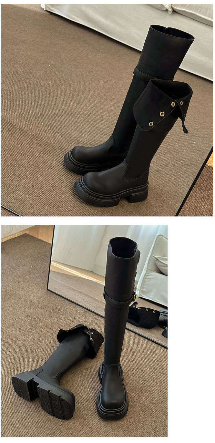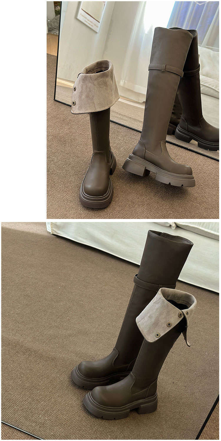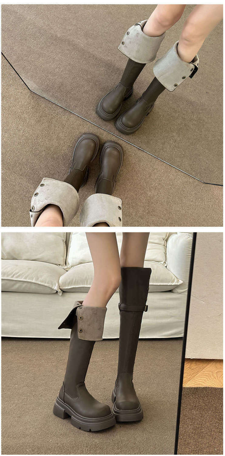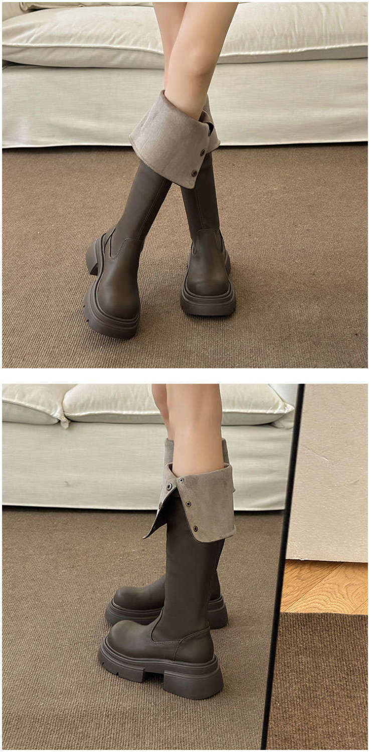 Botas largas hasta la rodilla con suela gruesa de dos piezas para mujer, otoño e invierno 2024, nuevas botas de moda con tacón grueso y forro polar que combinan con todo.