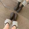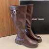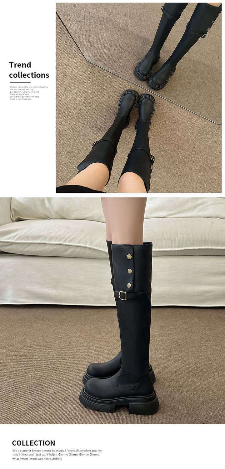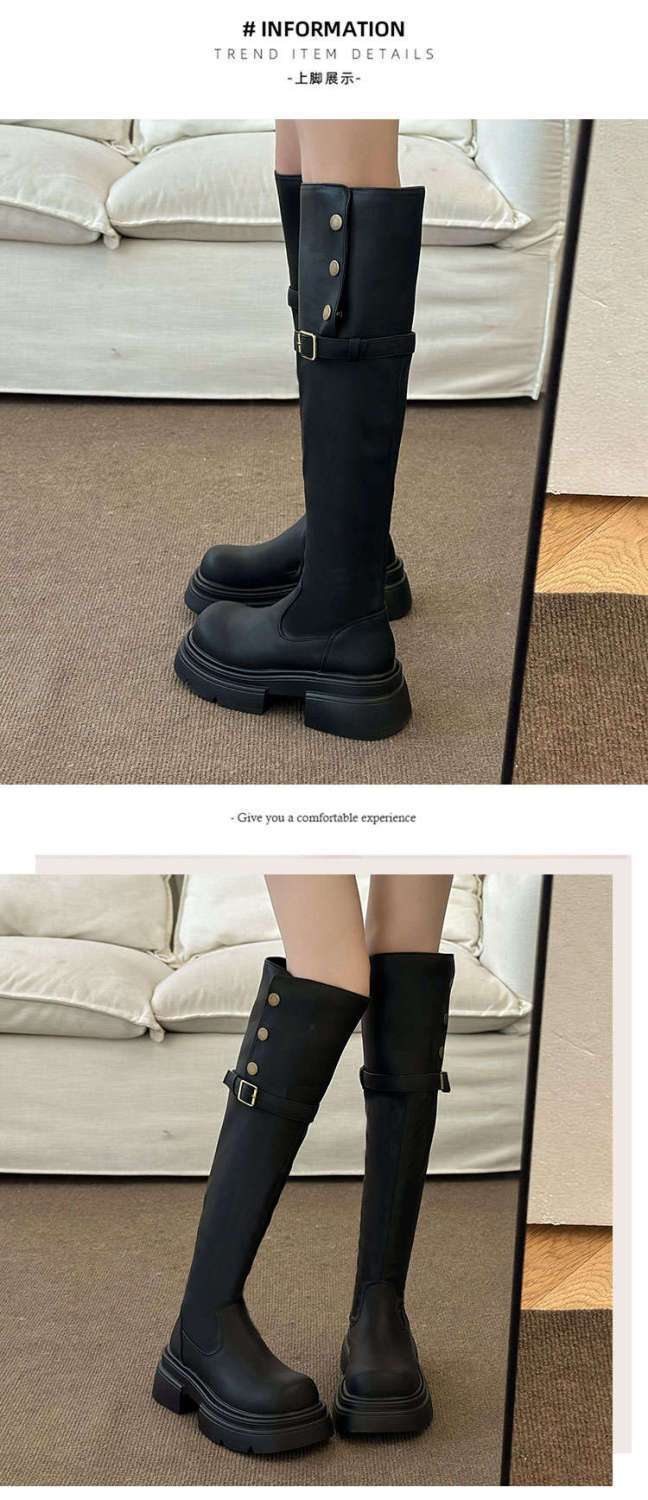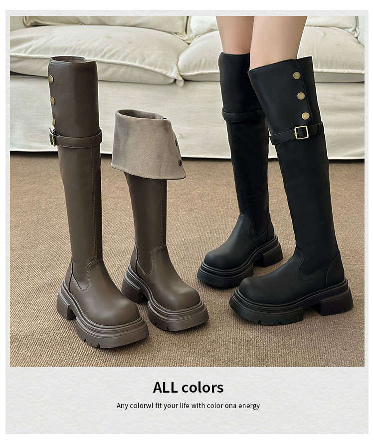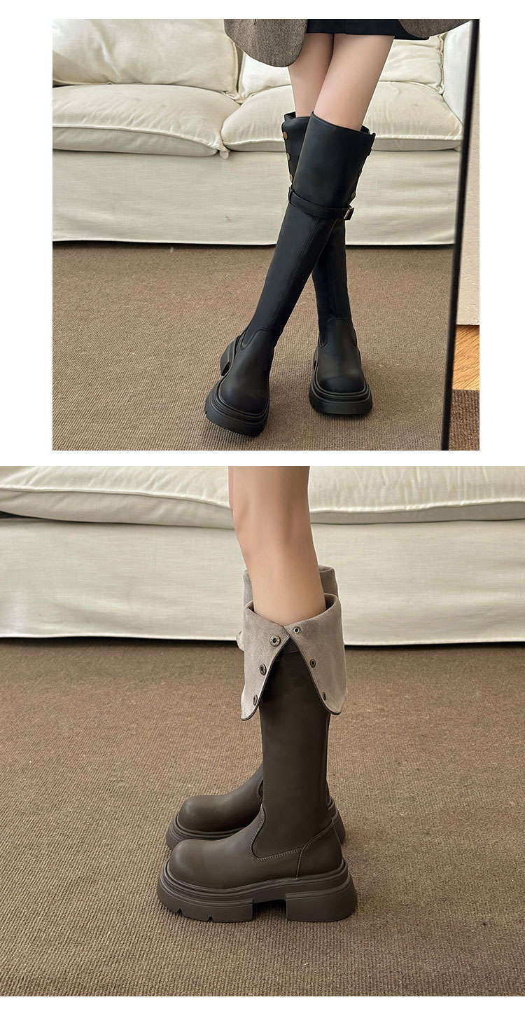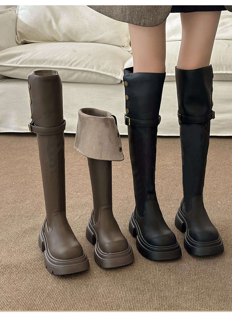 Botas largas hasta la rodilla con suela gruesa de dos piezas para mujer, otoño e invierno 2024, nuevas botas de moda con tacón grueso y forro polar que combinan con todo.
