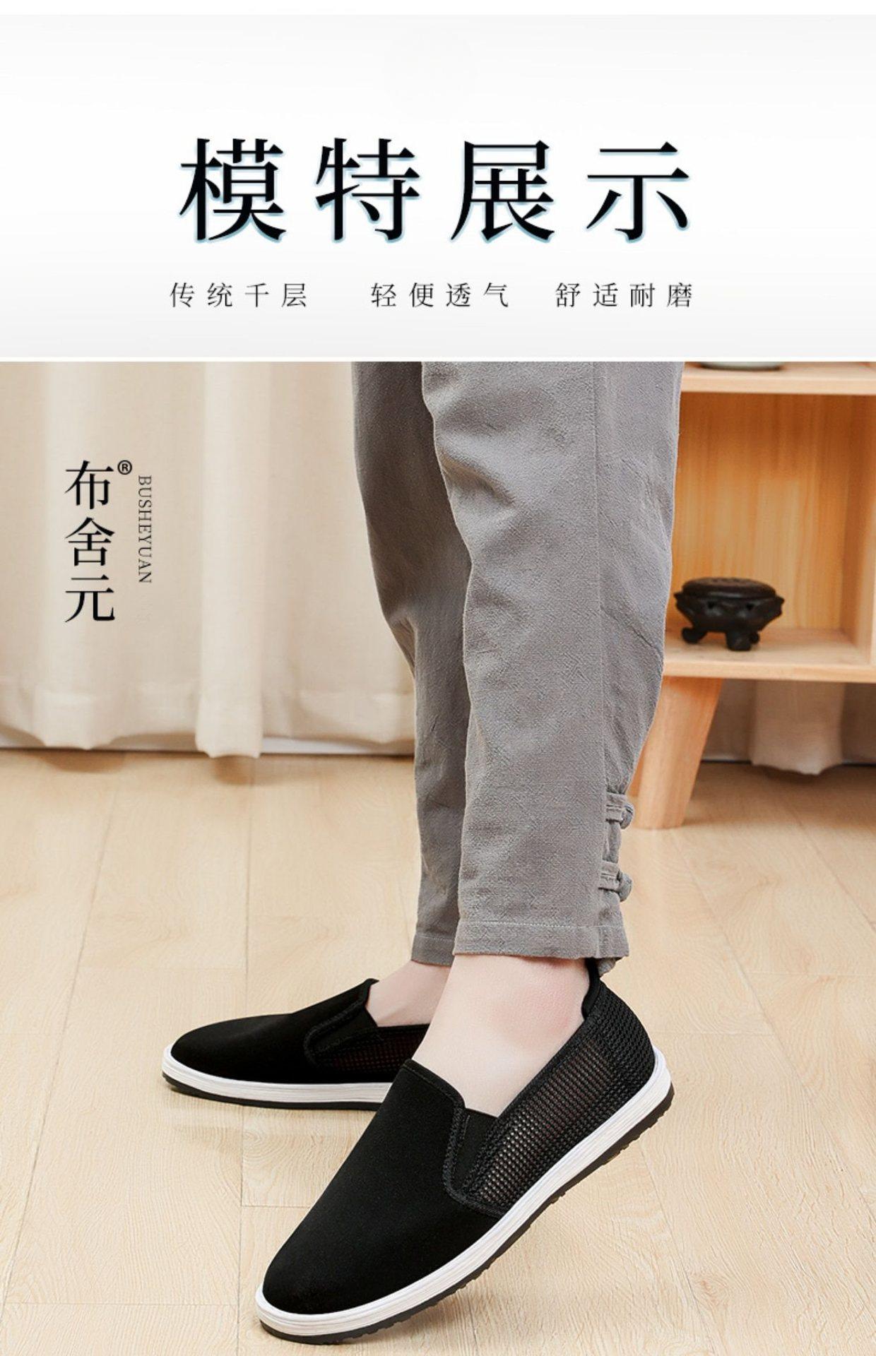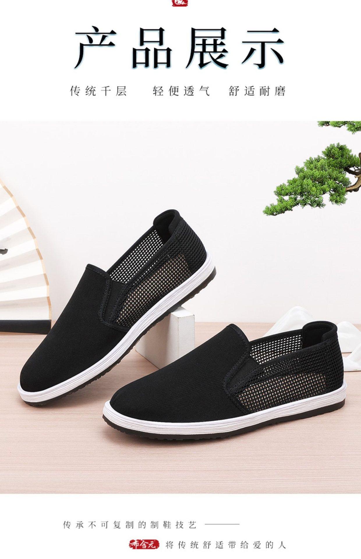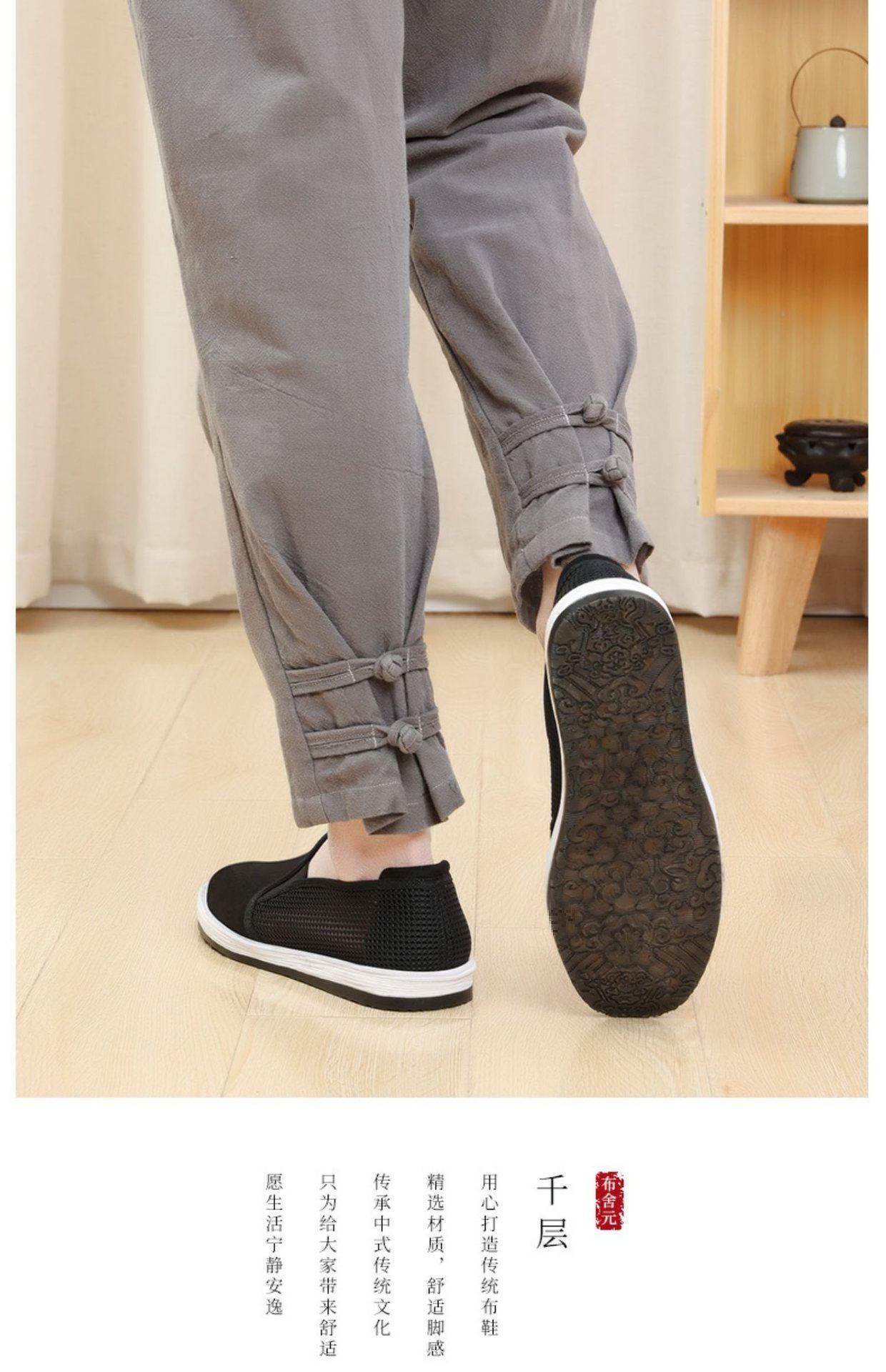 Verano Nuevo Zapatos de Tela de Pekín Antiguo Zapatos de Malla para Hombre Transpirables Lasaña Estilo Chino Retro Guofeng Zapatos de Tela