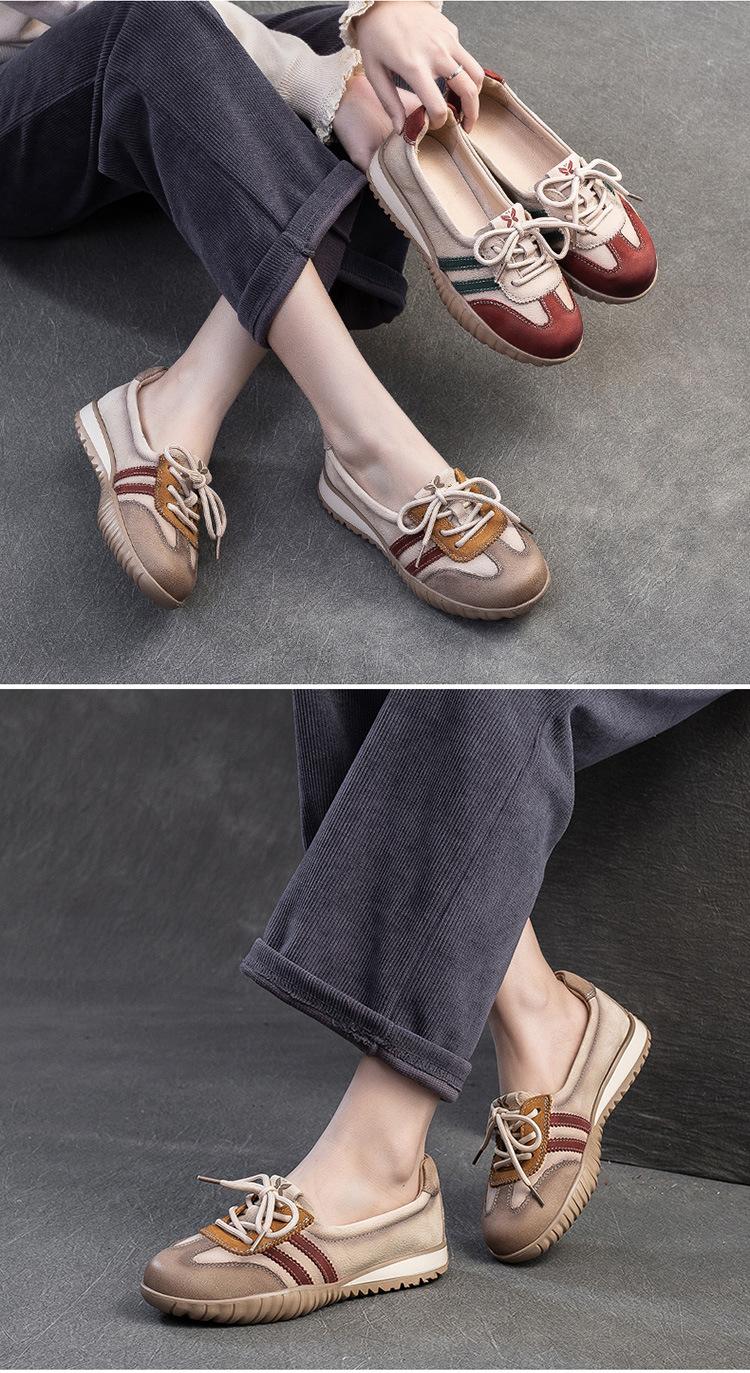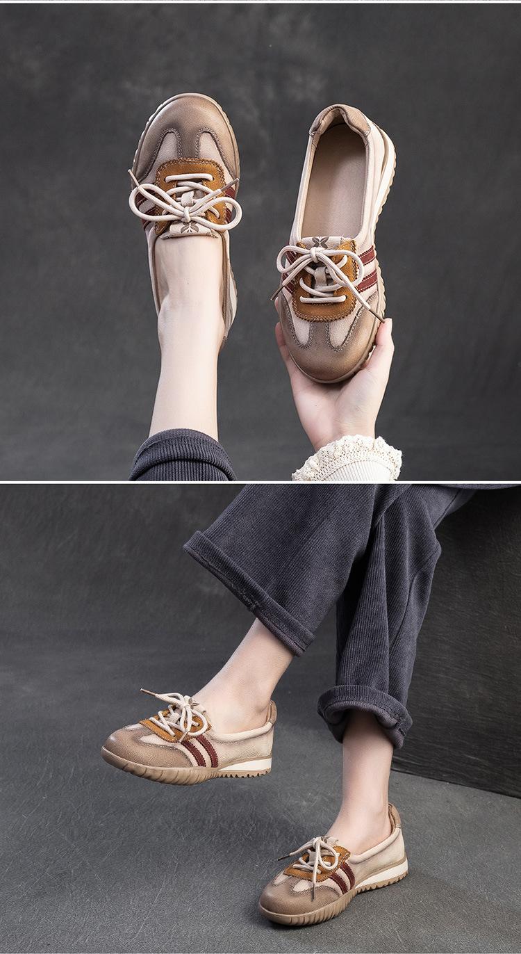 Zapatos de Skate Planos con Cordones Nuevos de Primavera 2025 de Shanghai Jiejie, Combinación de Colores, Cómodos, Retro, de Una Sola Capa, Casuales, de Moda, para Mujer