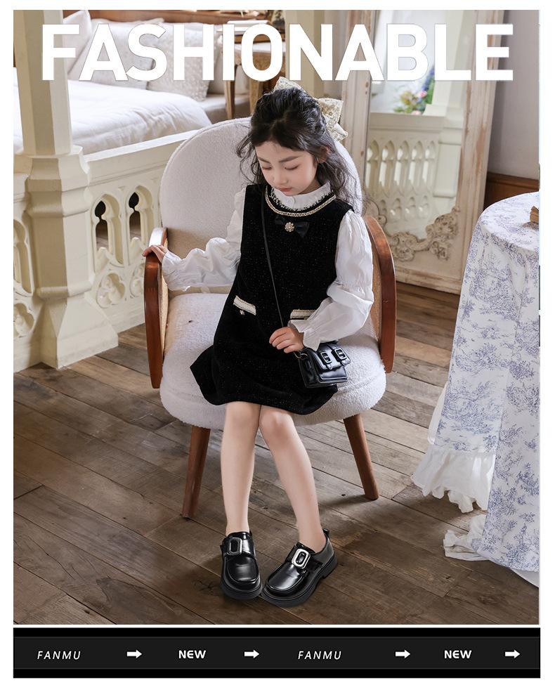 Zapatos de cuero para niñas, primavera 2024, nuevos zapatos de princesa para niños, mocasines negros de estilo británico, zapatos para niñas, zapatos de alto rendimiento.