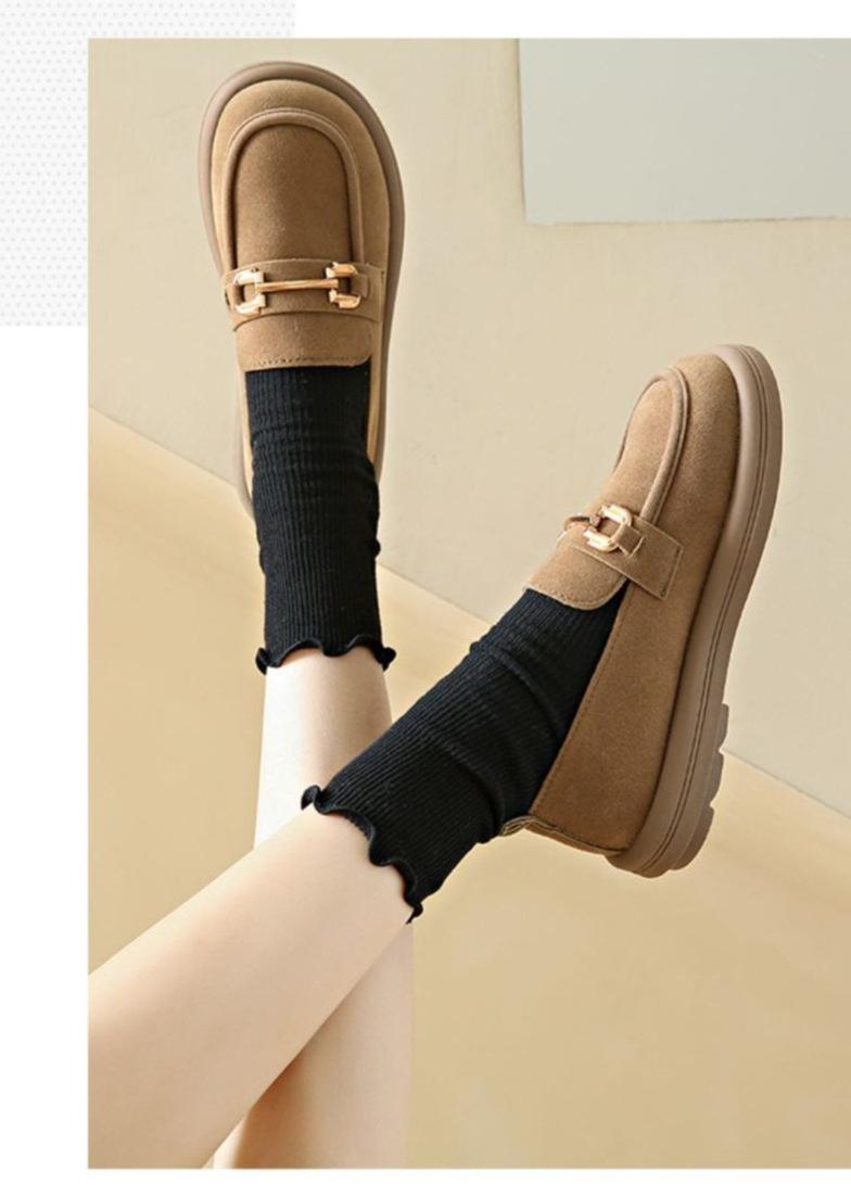Mocasines sin cordones para mujer, primavera y otoño 2025, nuevos zapatos de madre de suela gruesa, suela blanda, punta redonda, estilo retro, color liso.