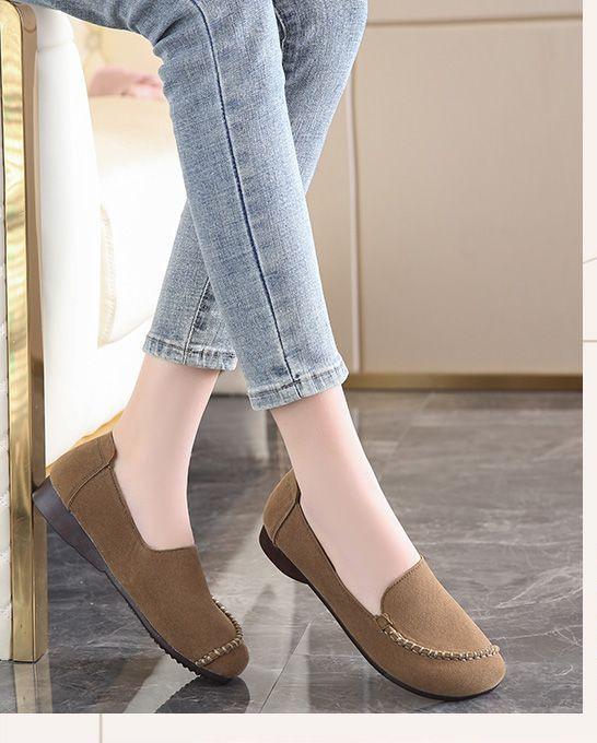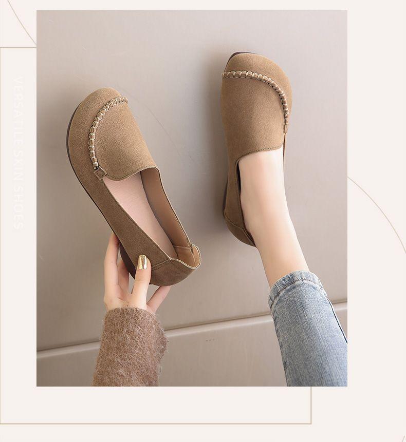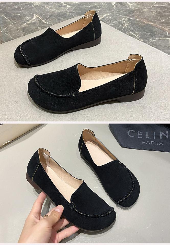 Zapatos sencillos para mujer, sin cordones, para embarazadas, 2025, nuevos, informales, anchos, mocasines de cuero con boca baja.