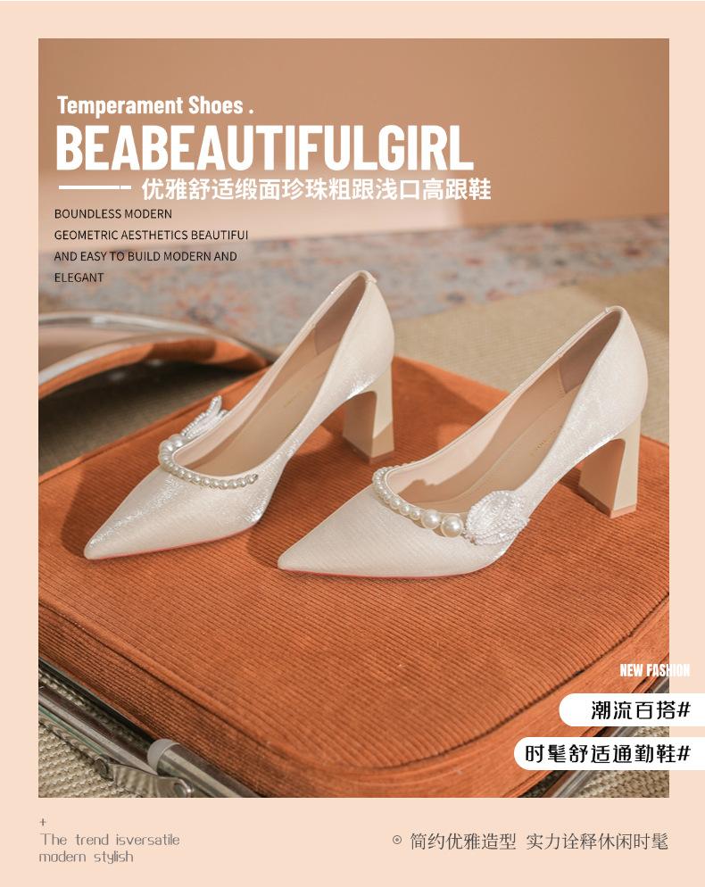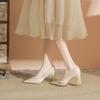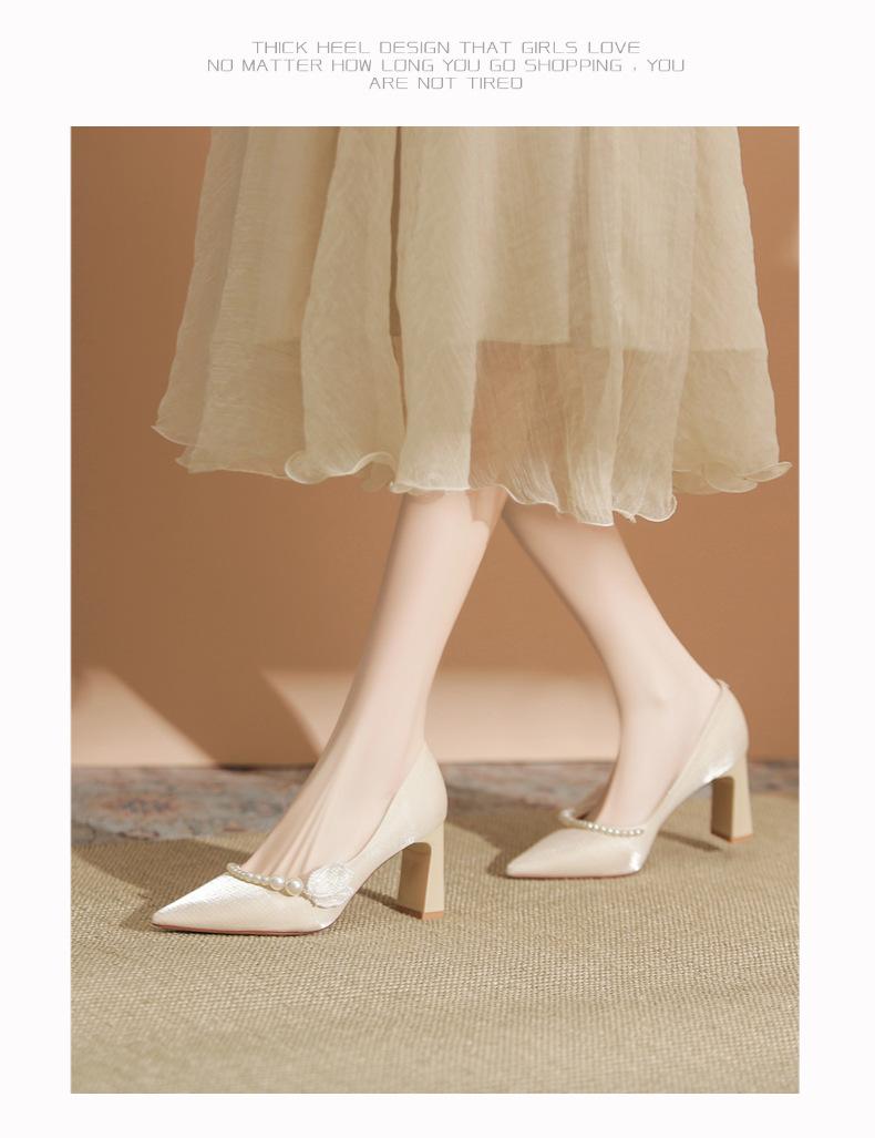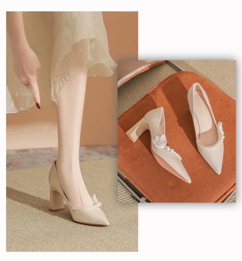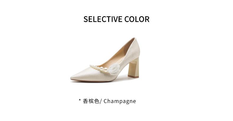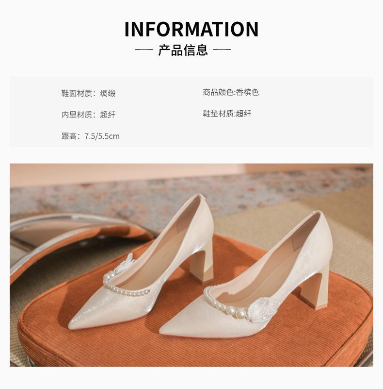 7777-1 Tacones Altos Mujer Tacón Grueso Zapatos de Boda Satén Perla No Cansan los Pies Champagne Zapatos de Punta Zapatos de Dama de Honor