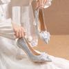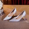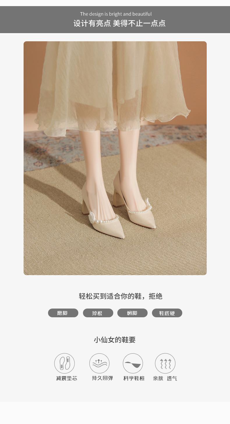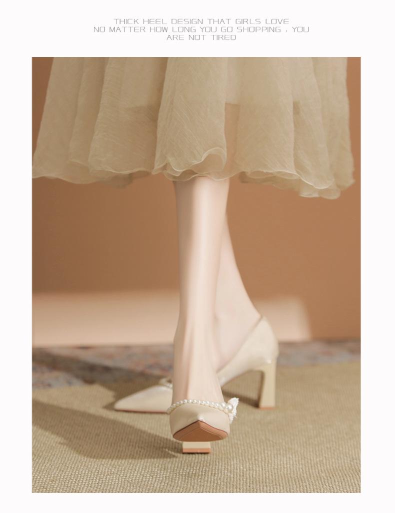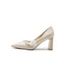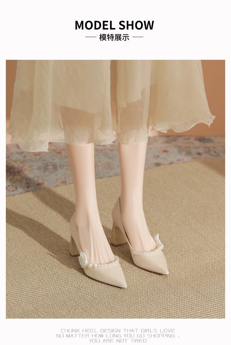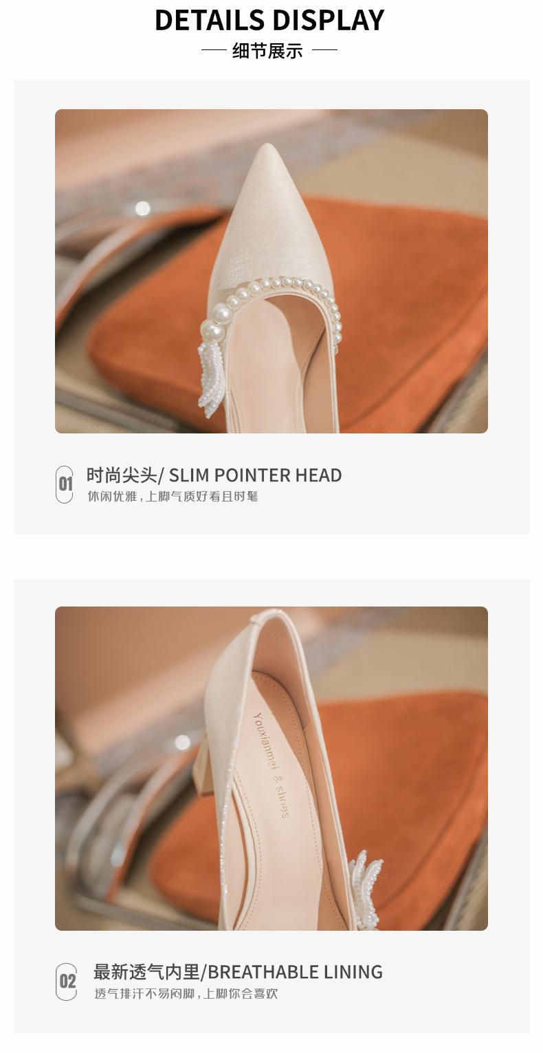 7777-1 Tacones Altos Mujer Tacón Grueso Zapatos de Boda Satén Perla No Cansan los Pies Champagne Zapatos de Punta Zapatos de Dama de Honor