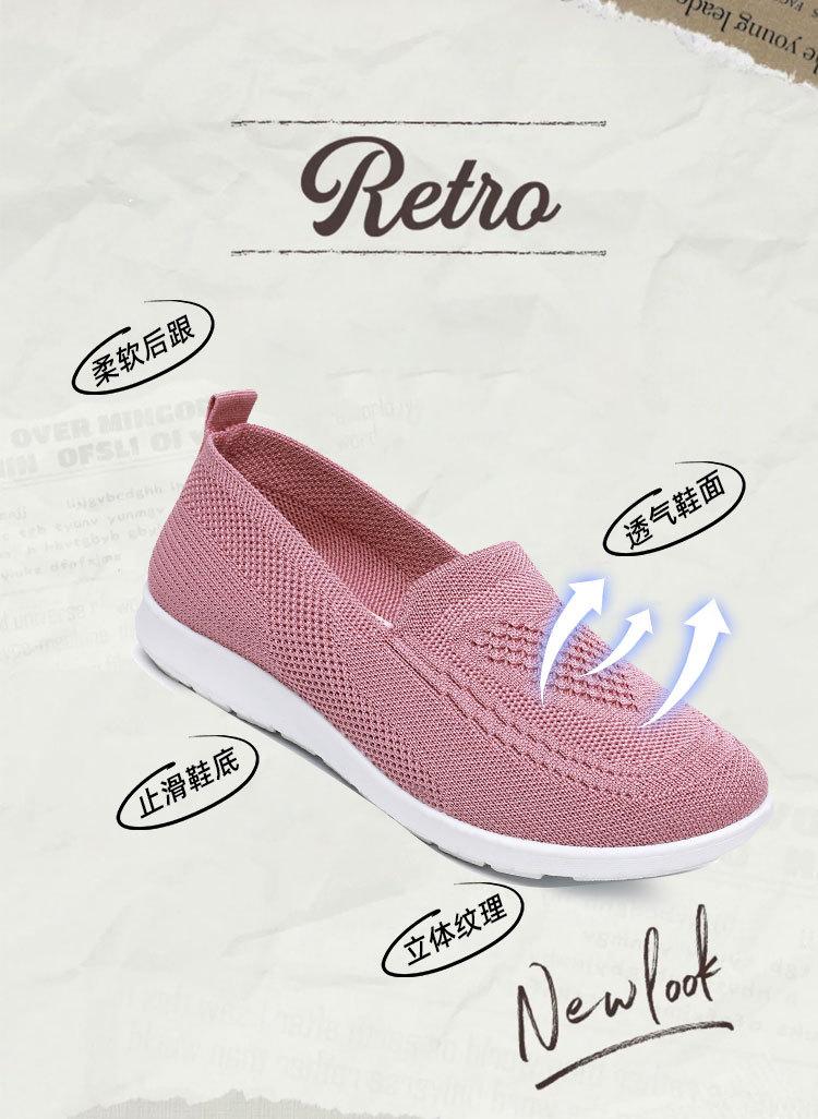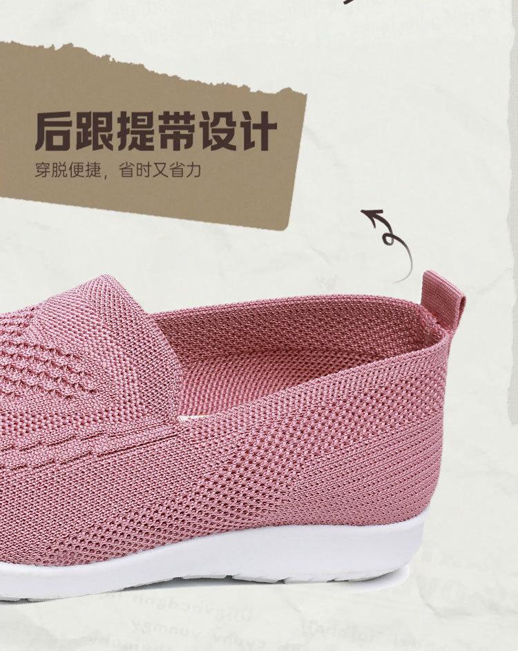 Zapatos Planos Transfronterizos Zapatos de Mujer 2025 Primavera Nuevos Slip-On Fly-Knit Transpirables de Malla Zapatos Viejos de Boca Baja Ligeros Zapatos de Madre