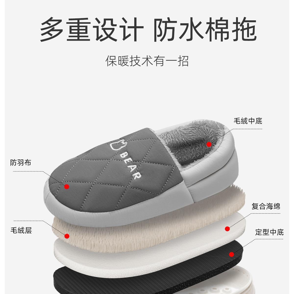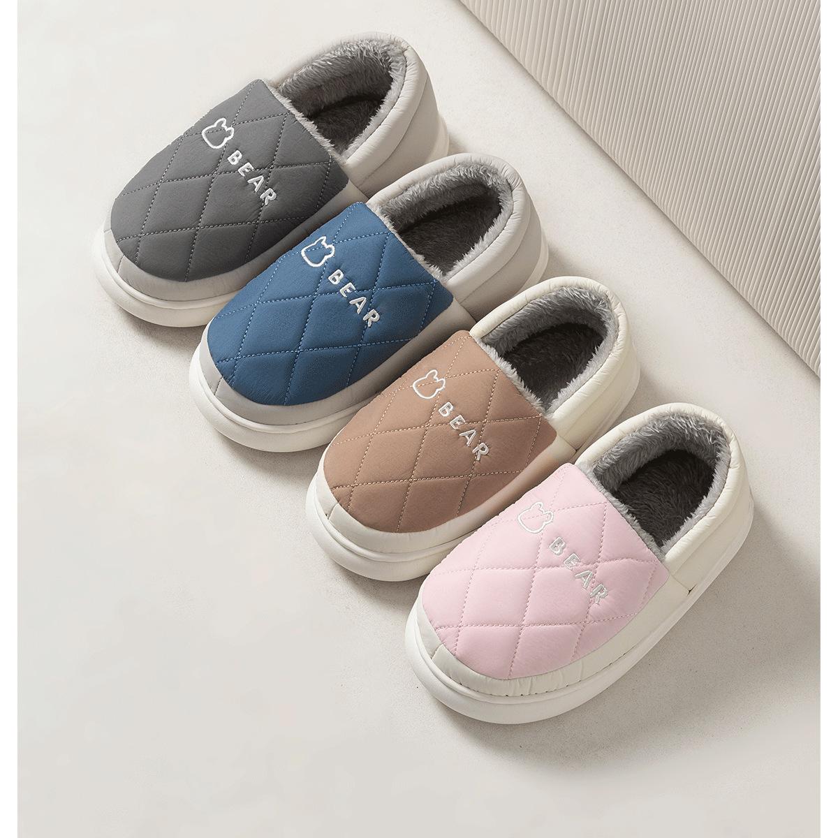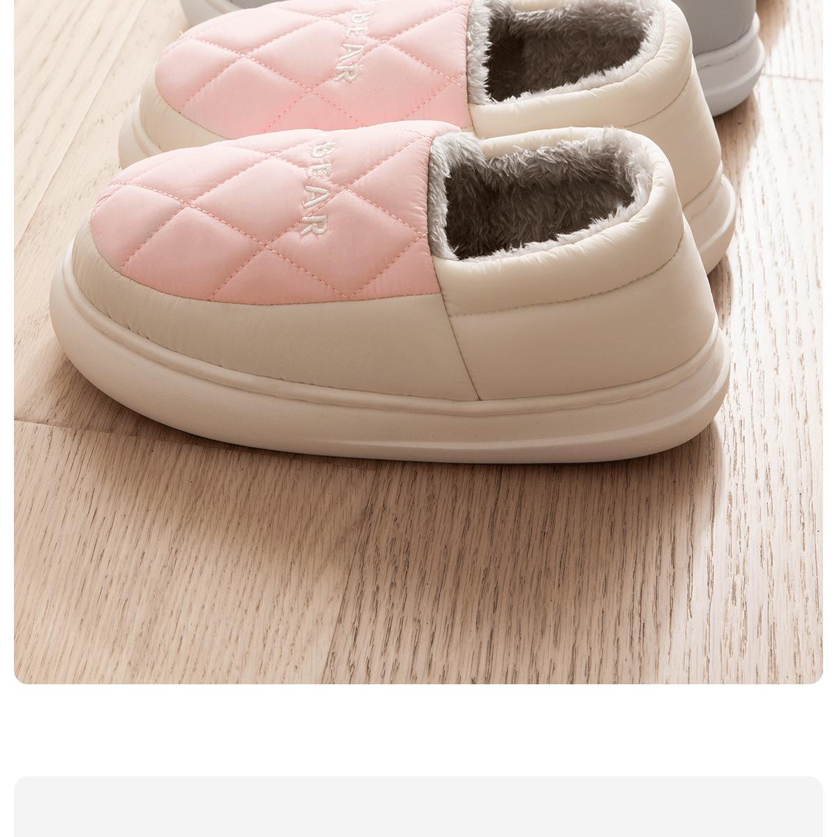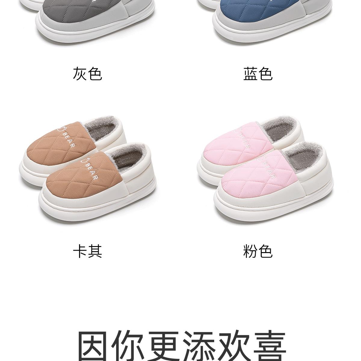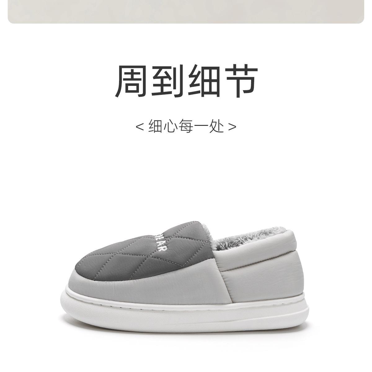 Pantuflas de algodón impermeables para otoño e invierno para mujer, con tacón totalmente cubierto, de felpa, cálidas, impermeables, para parejas, para el hogar y el hogar de los hombres.